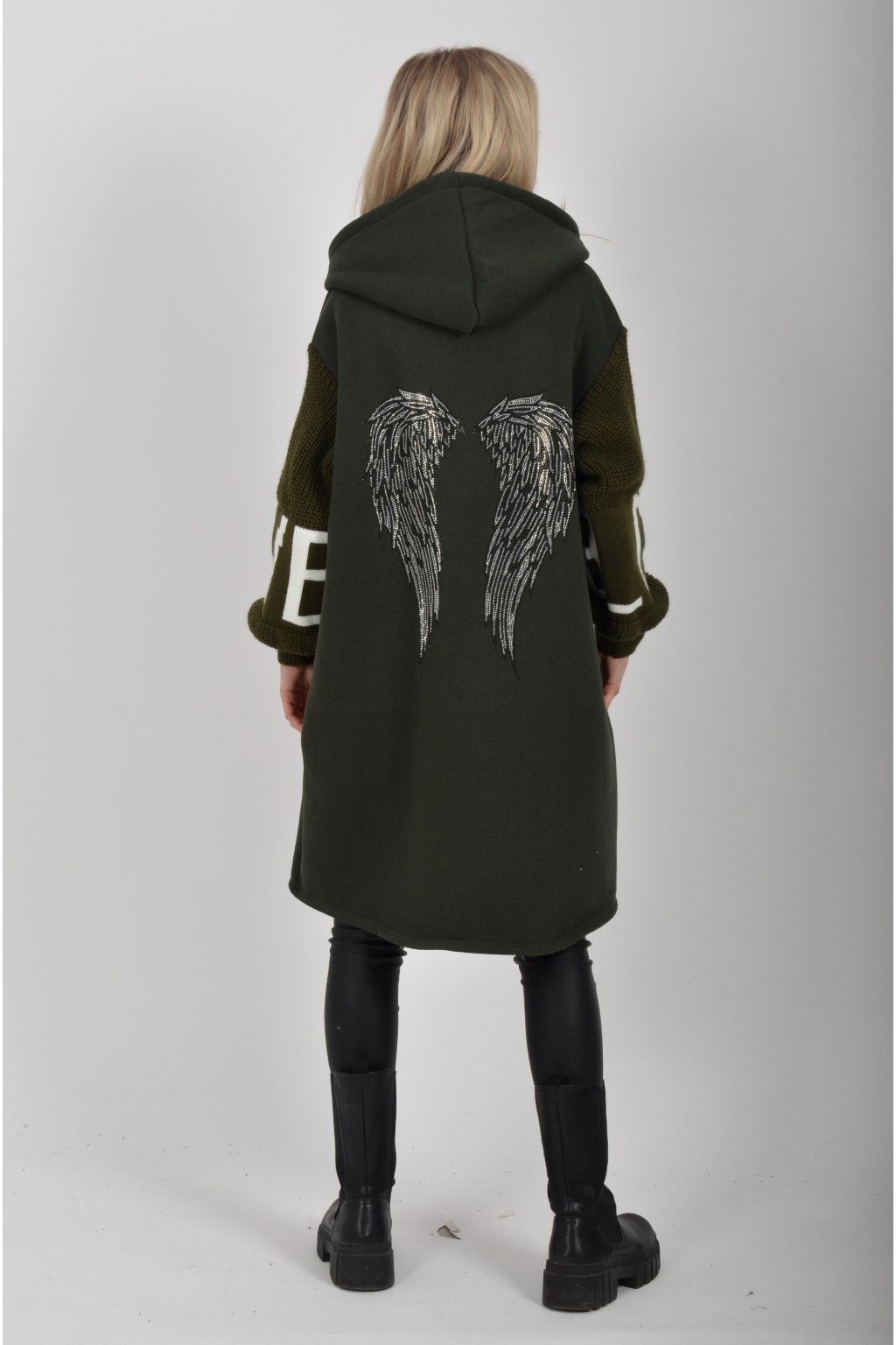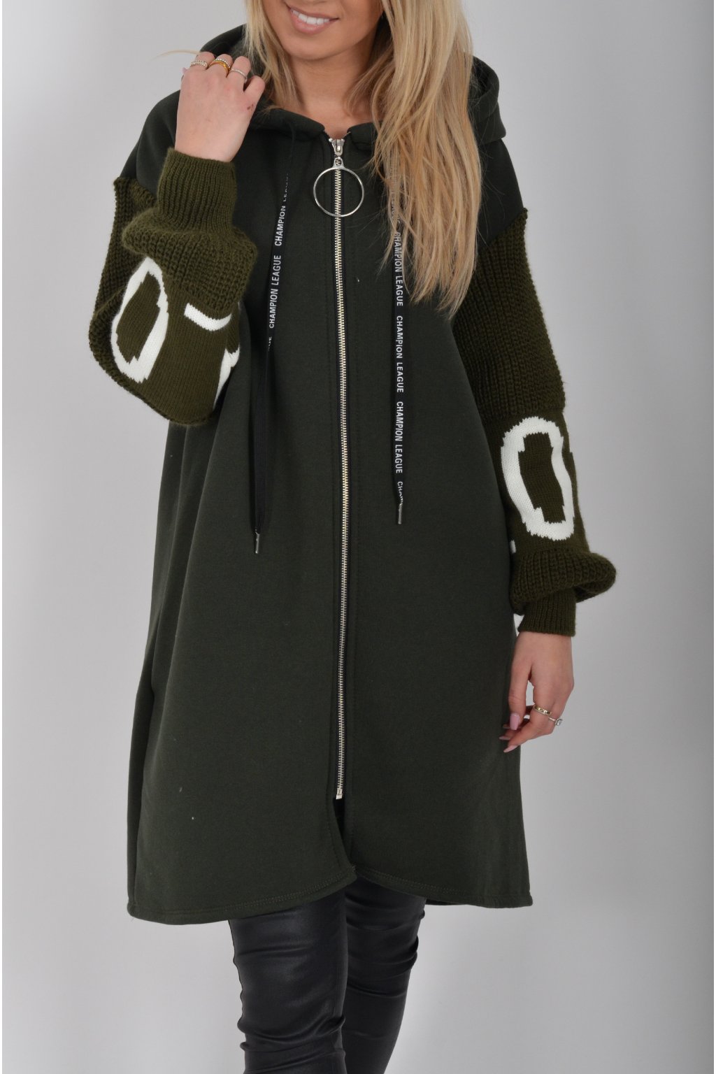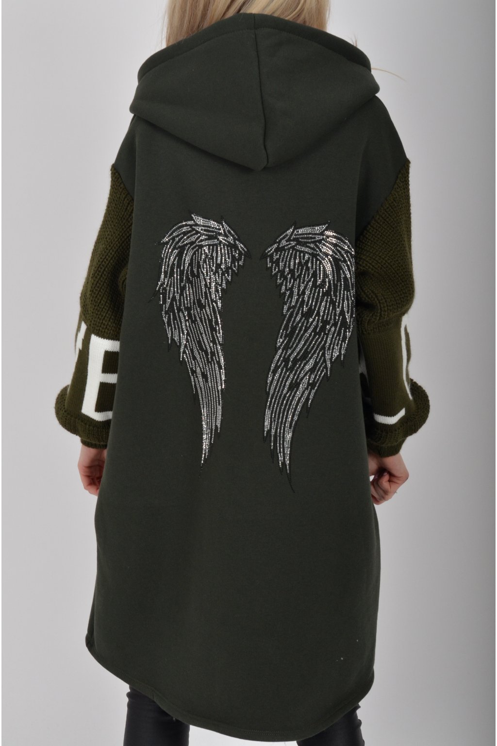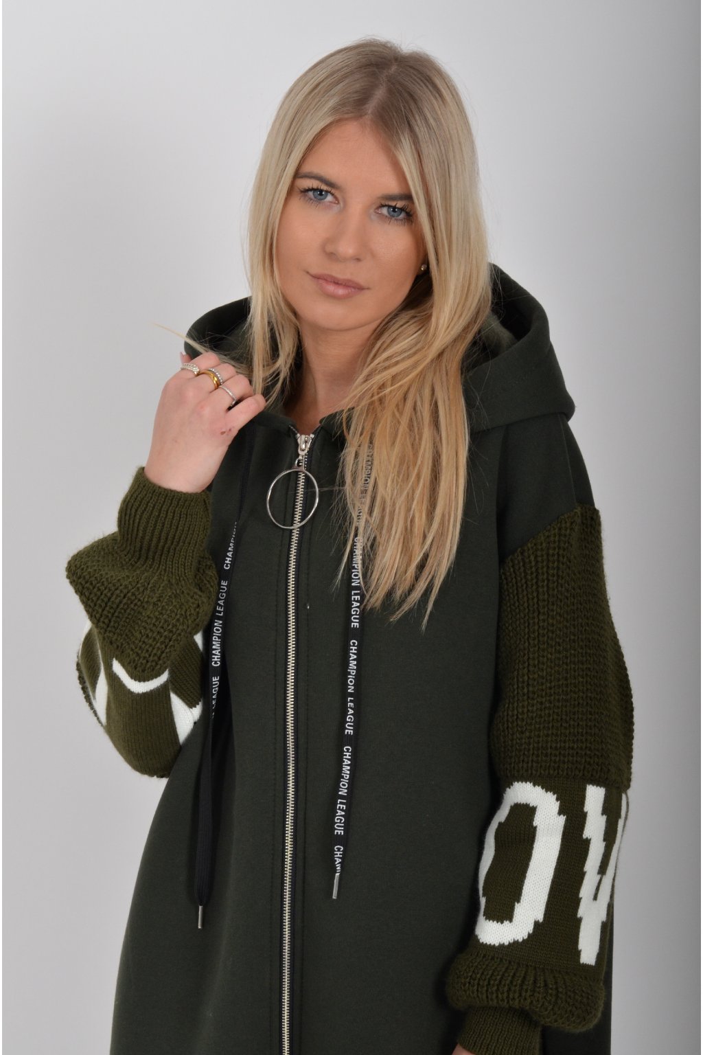 Mikina na zip s kapucí, dlouhým rukávem a kapsami na bocích. Mikina má pletené rukávy a v zadní části stříbrnou aplikaci. Je vyrobena z velice příjemného a kvalitního materiálu.