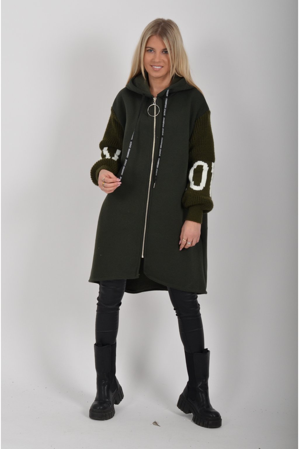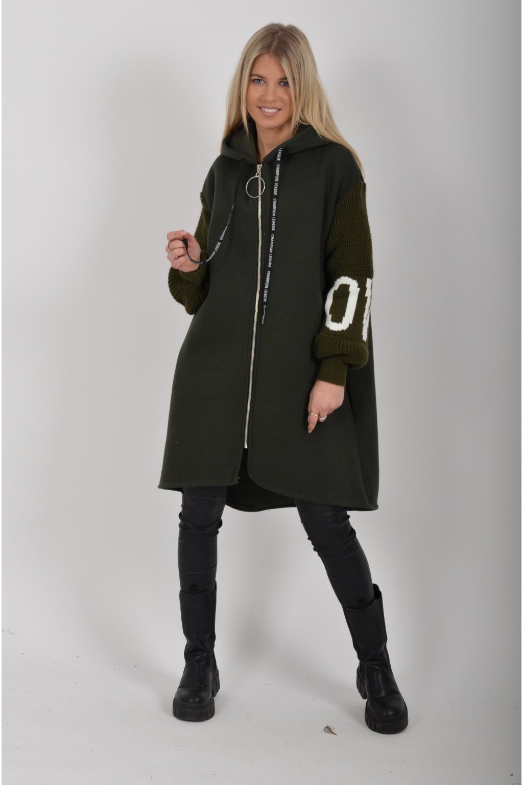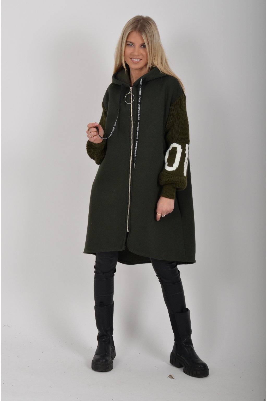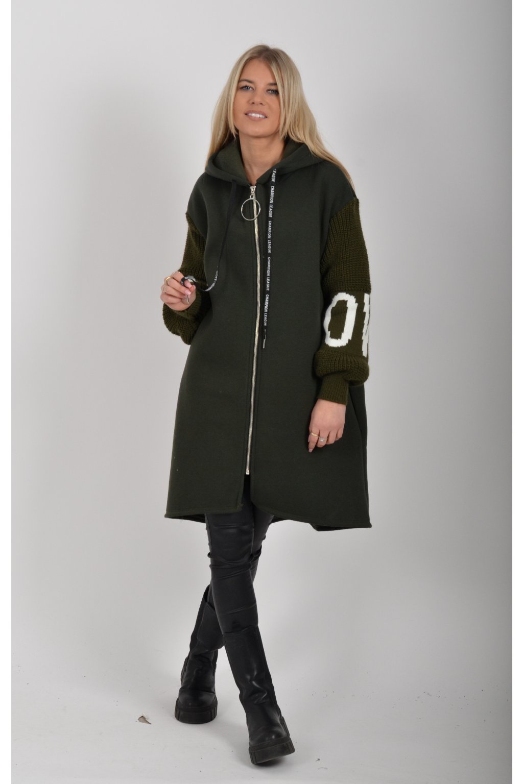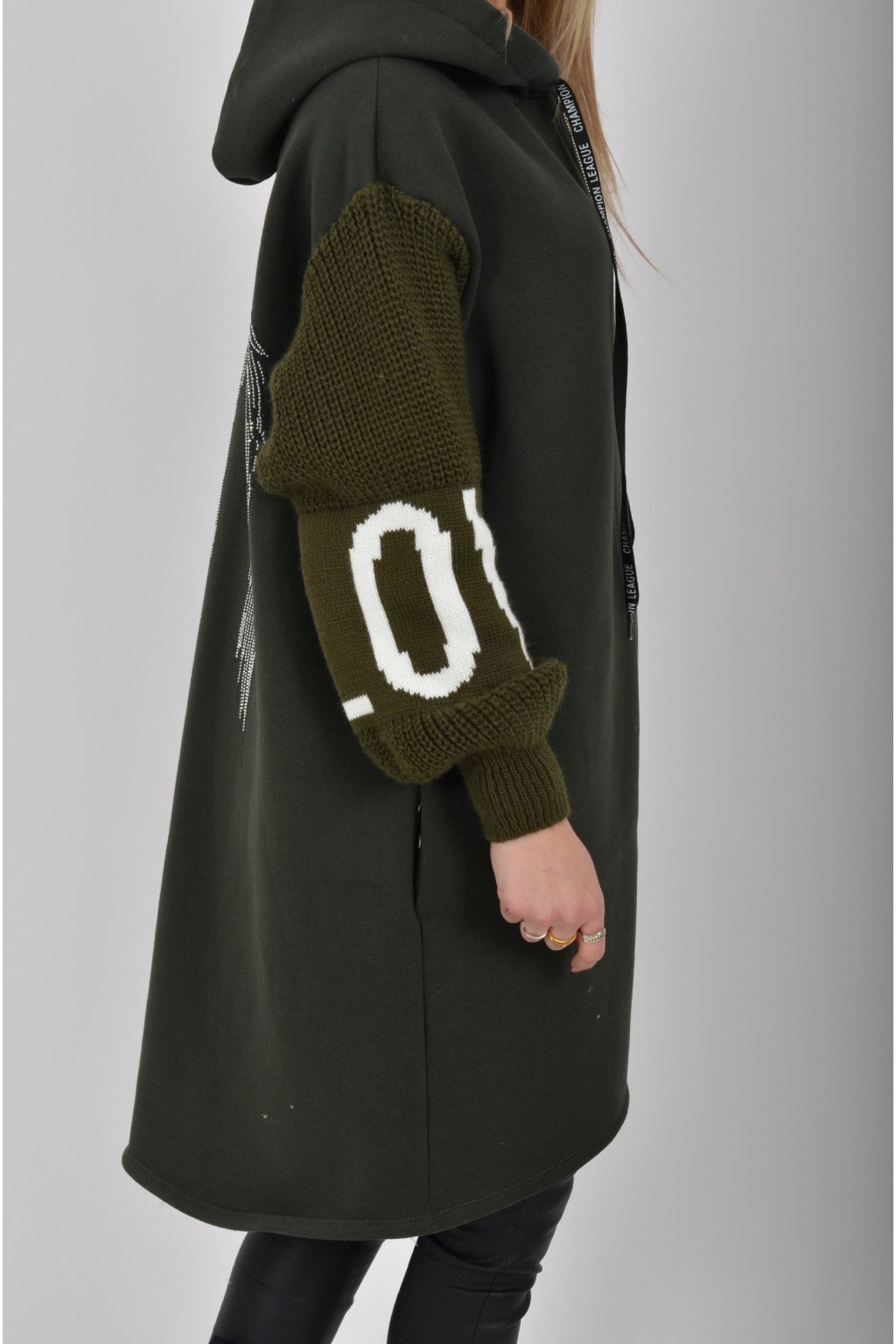 Mikina na zip s kapucí, dlouhým rukávem a kapsami na bocích. Mikina má pletené rukávy a v zadní části stříbrnou aplikaci. Je vyrobena z velice příjemného a kvalitního materiálu.