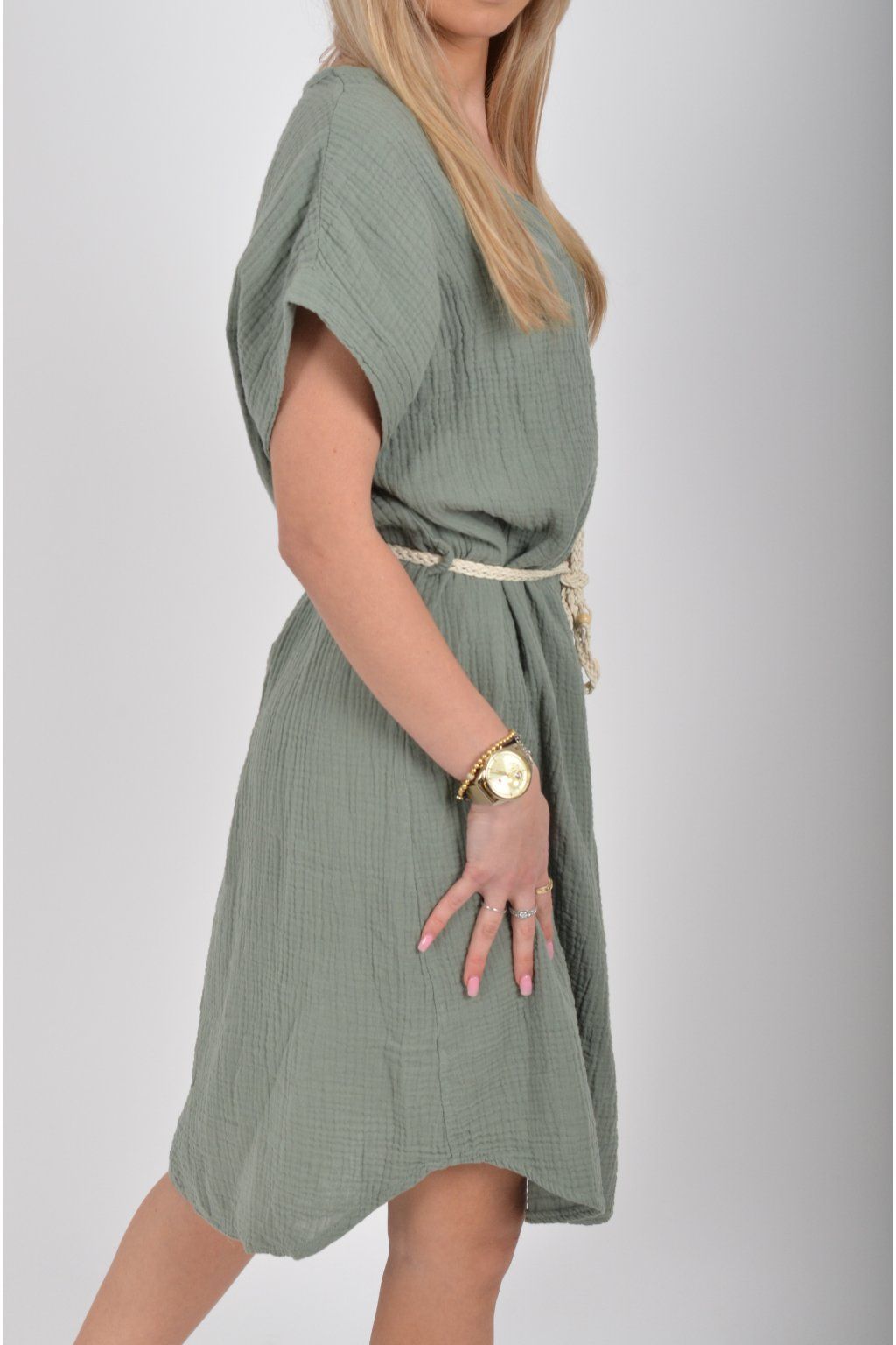 Khaki mušelínové šaty ES6704