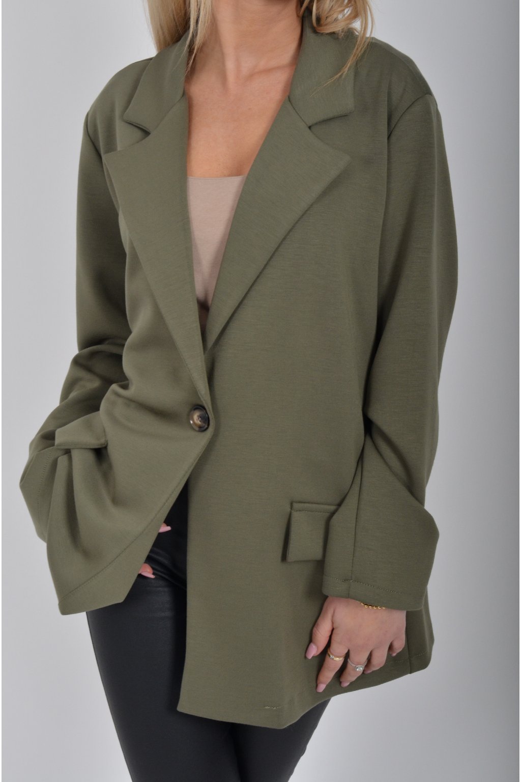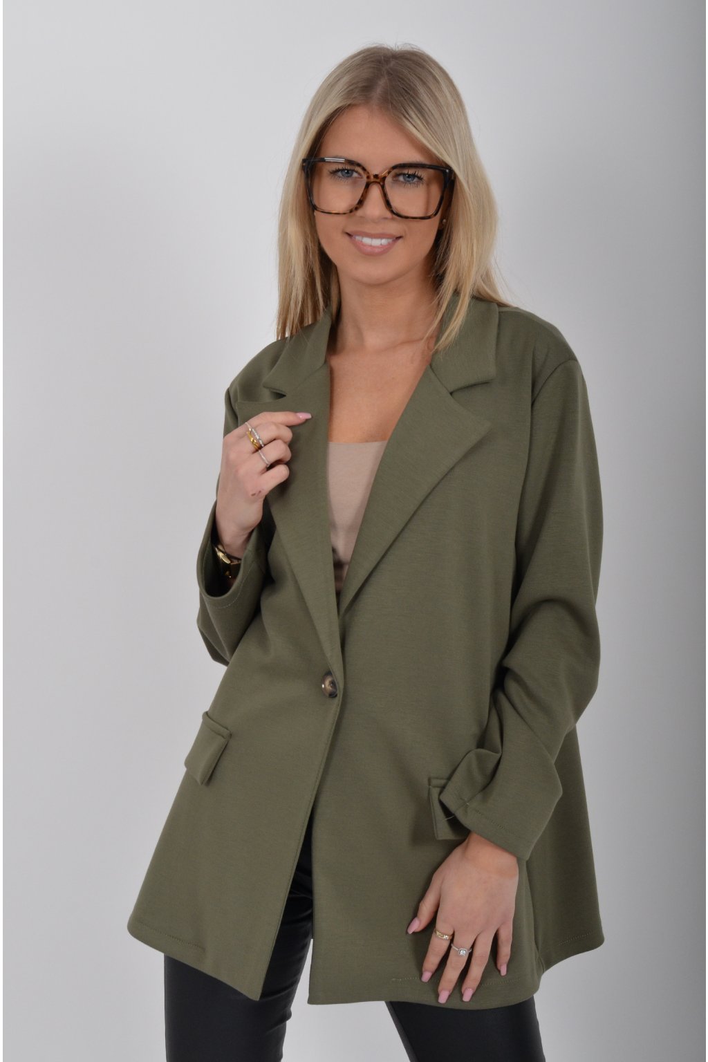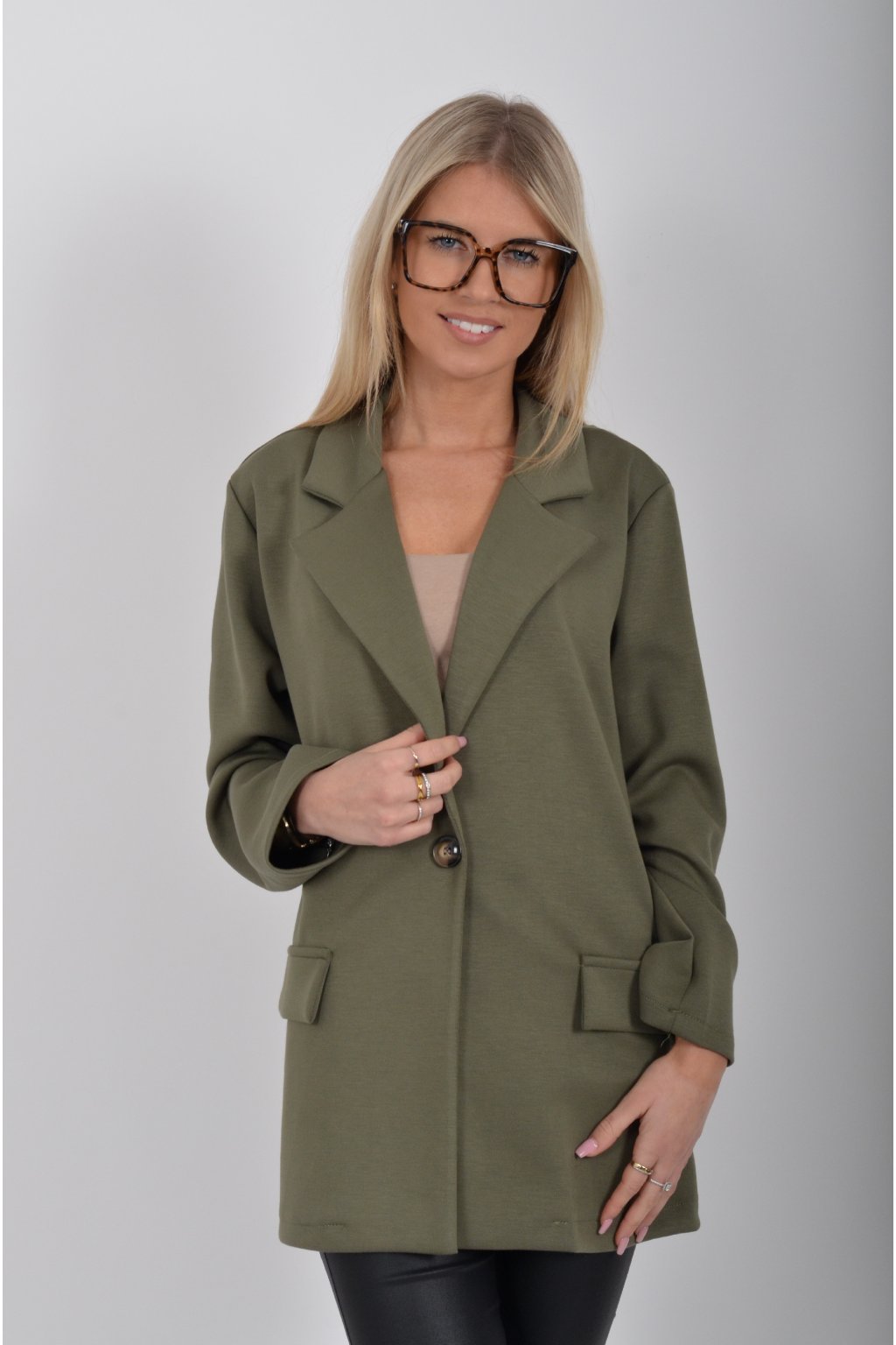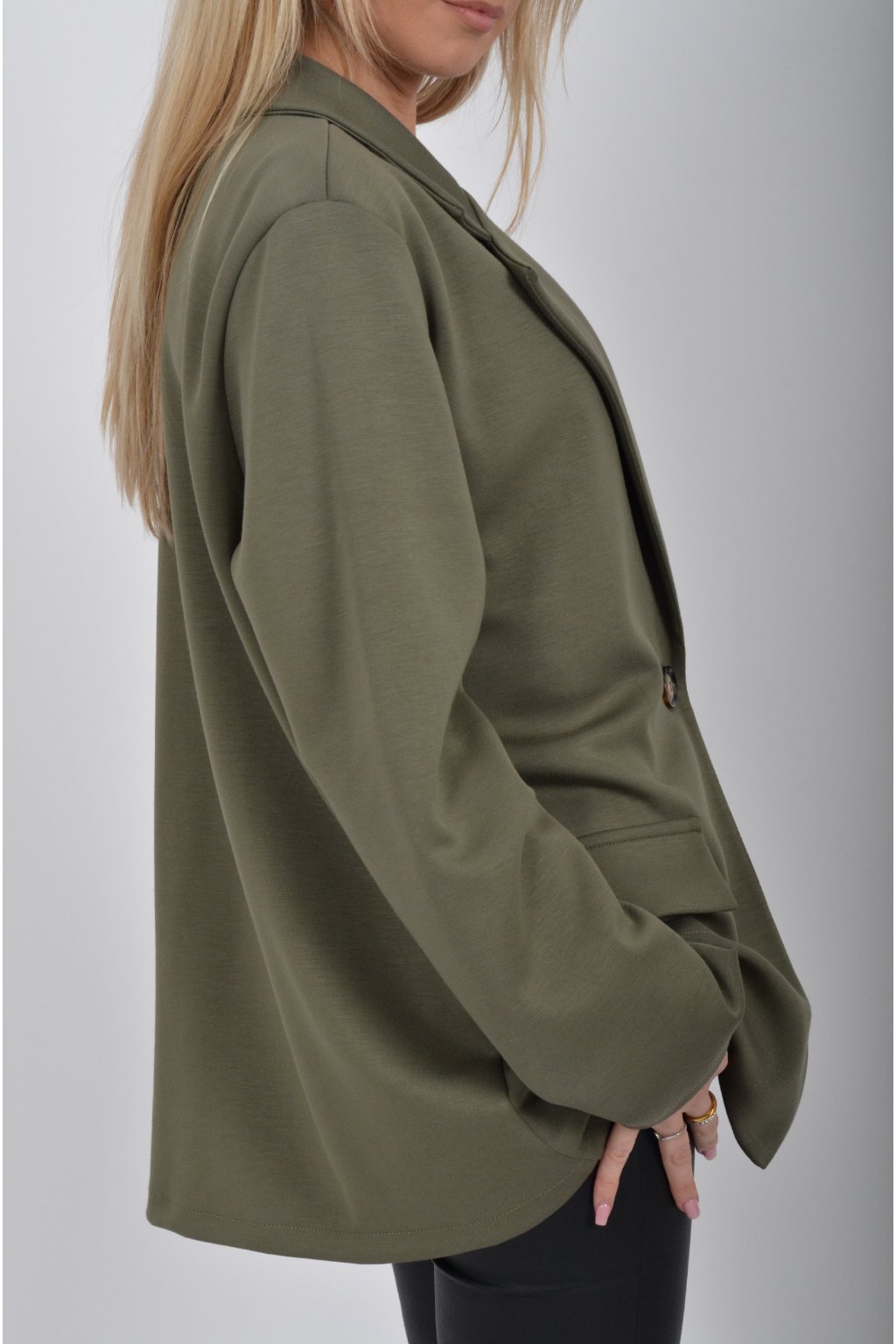 Elegantní sako s podšívkou, a falešnými kapsami v přední části vyrobené z velice příjemného kvalitního a lehounkého materiálu. Materiál je elastický.