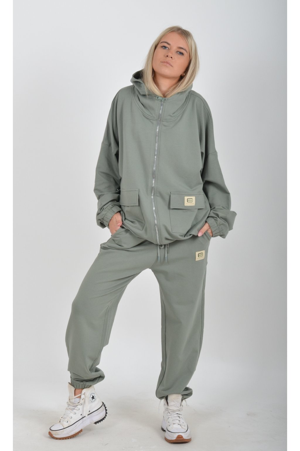 Tepláková souprava vyrobená z velice příjemné turecké bavlny. Tepláky mají na bocích kapsy. Mikina je na zip a ve spodní části má zapracovanou šňůrku pro libovolné stažení.