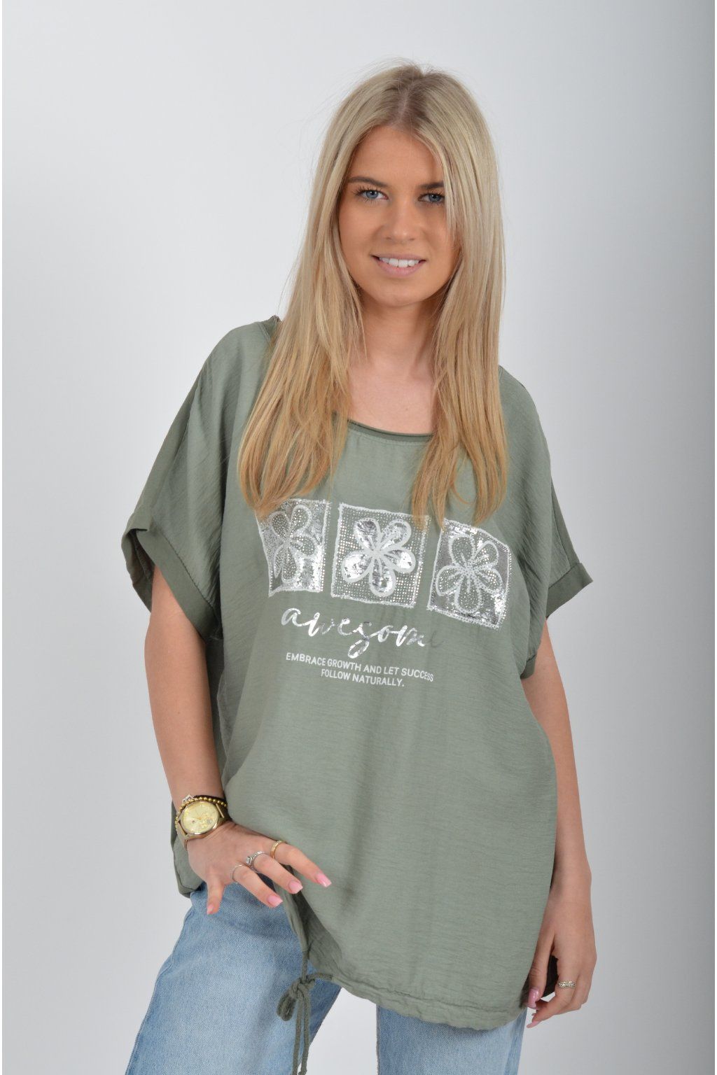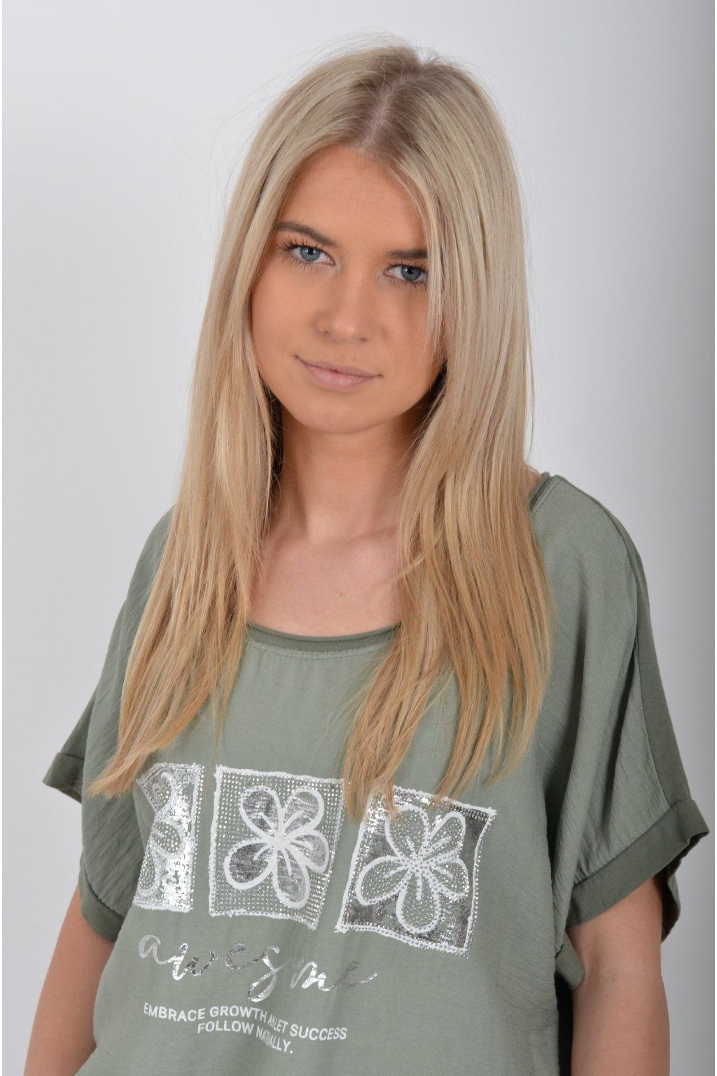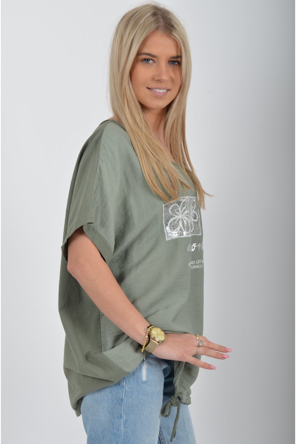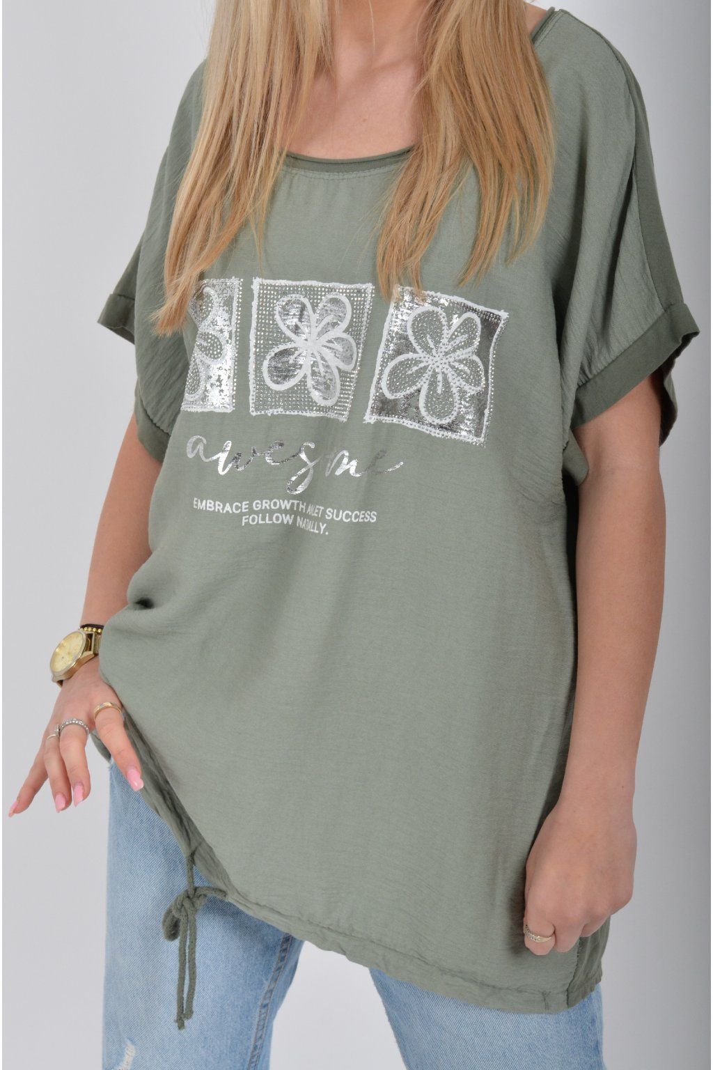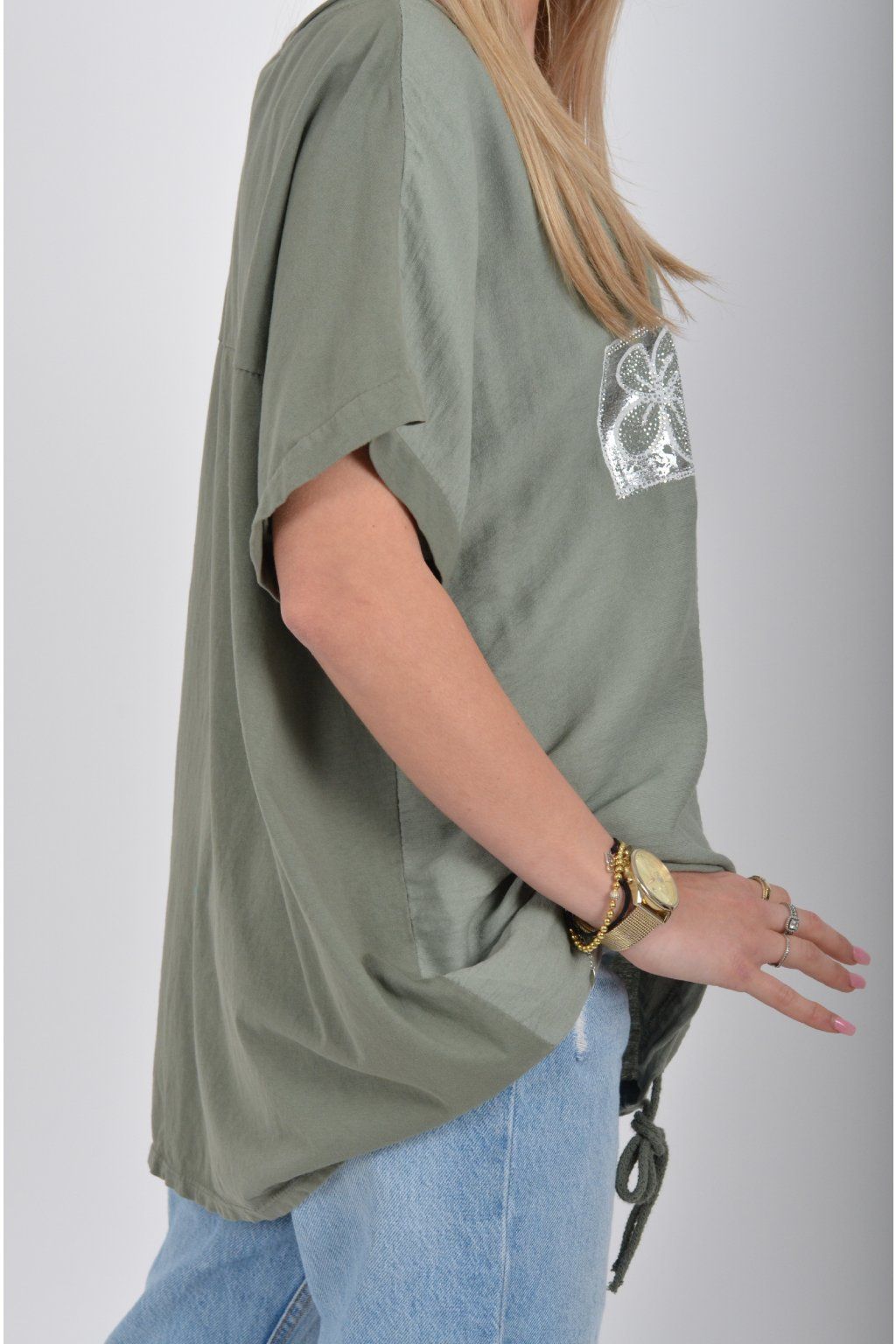 Tričko s krátkým rukávem potiskem a kamínkovým zdobením. Tričko je vyrobené z velice příjemného materiálu. Ve spodní části je zapracovaná tkanice pro libovolné stažení.