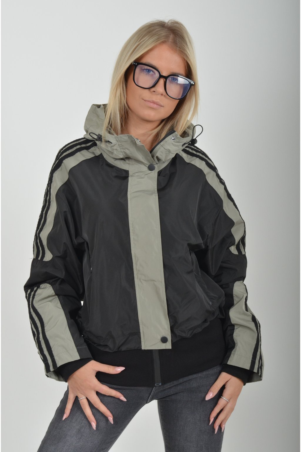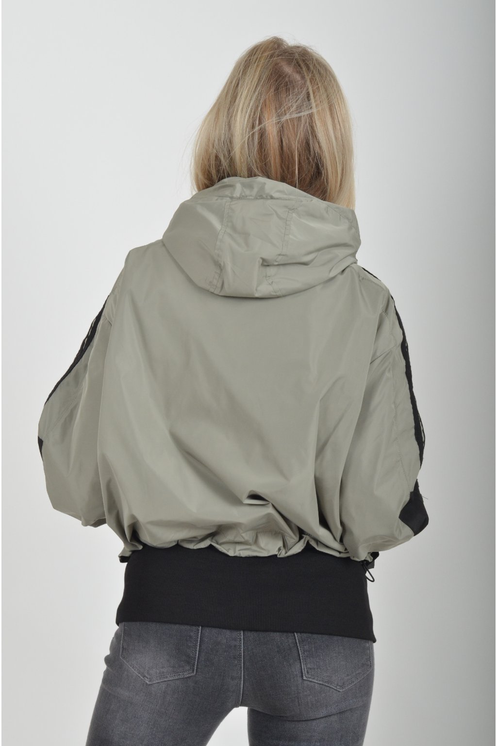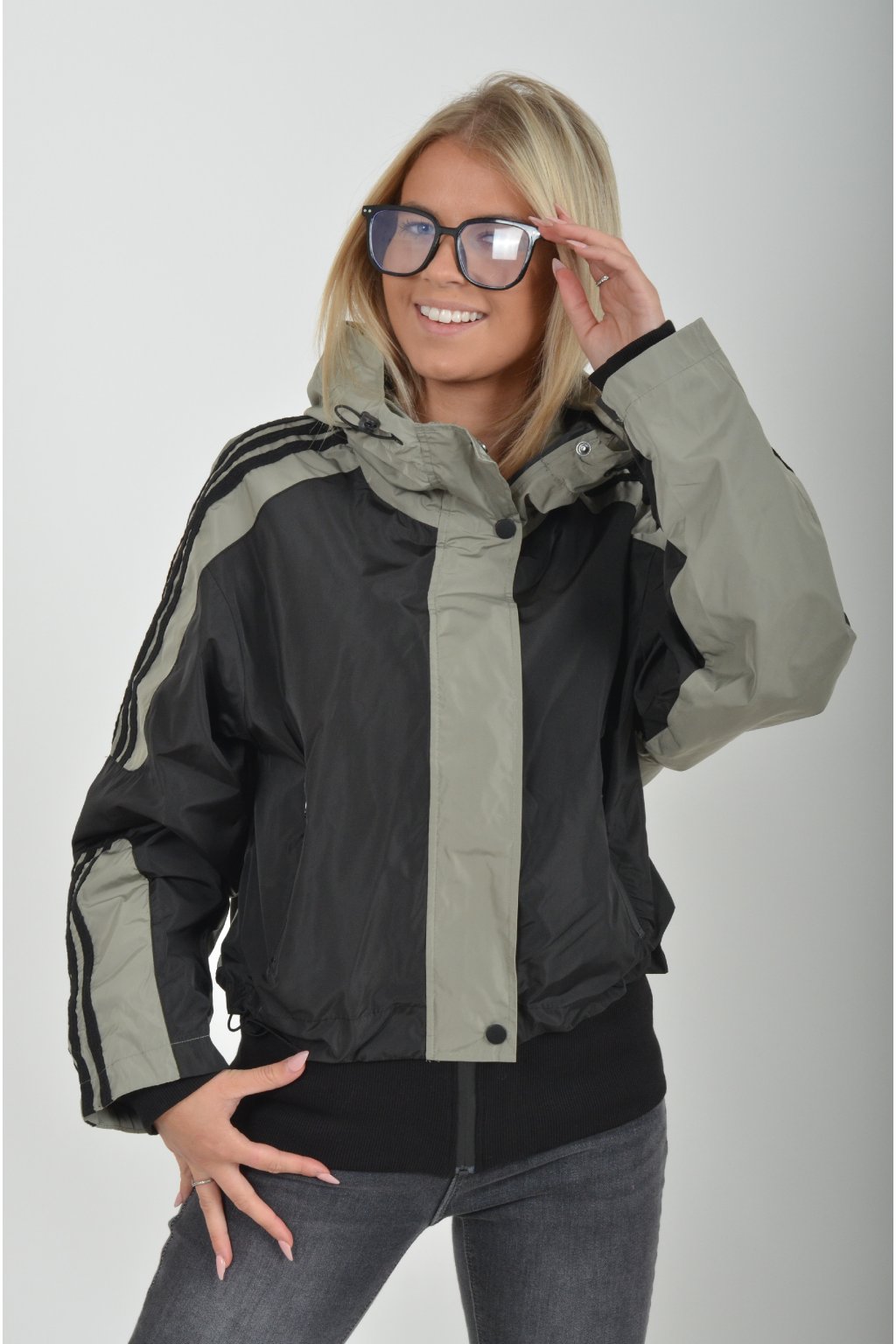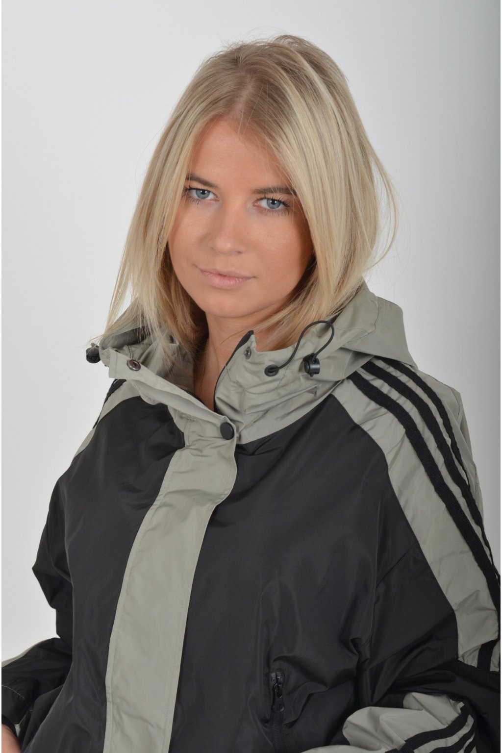 Přechodová nepromokavá bunda s podšívkou a náplety ve spodní části a na rukávech. Ve spodní části a u krku je zapracovaná guma pro libovolné stažení. Bunda má zapínaní na zip přes který je lem na patenty. V přední části jsou kapsy na zip.