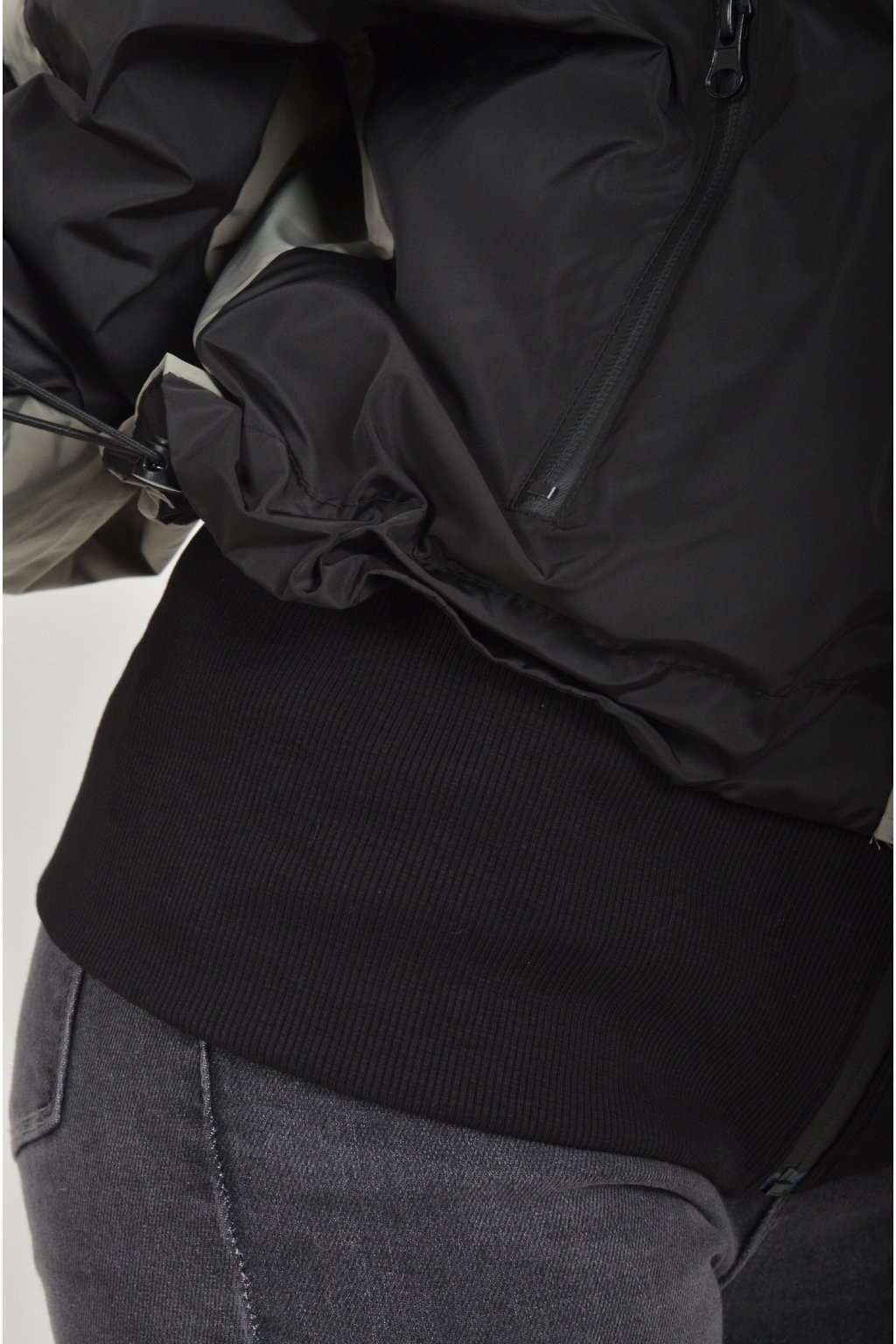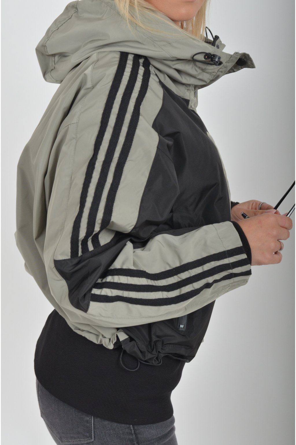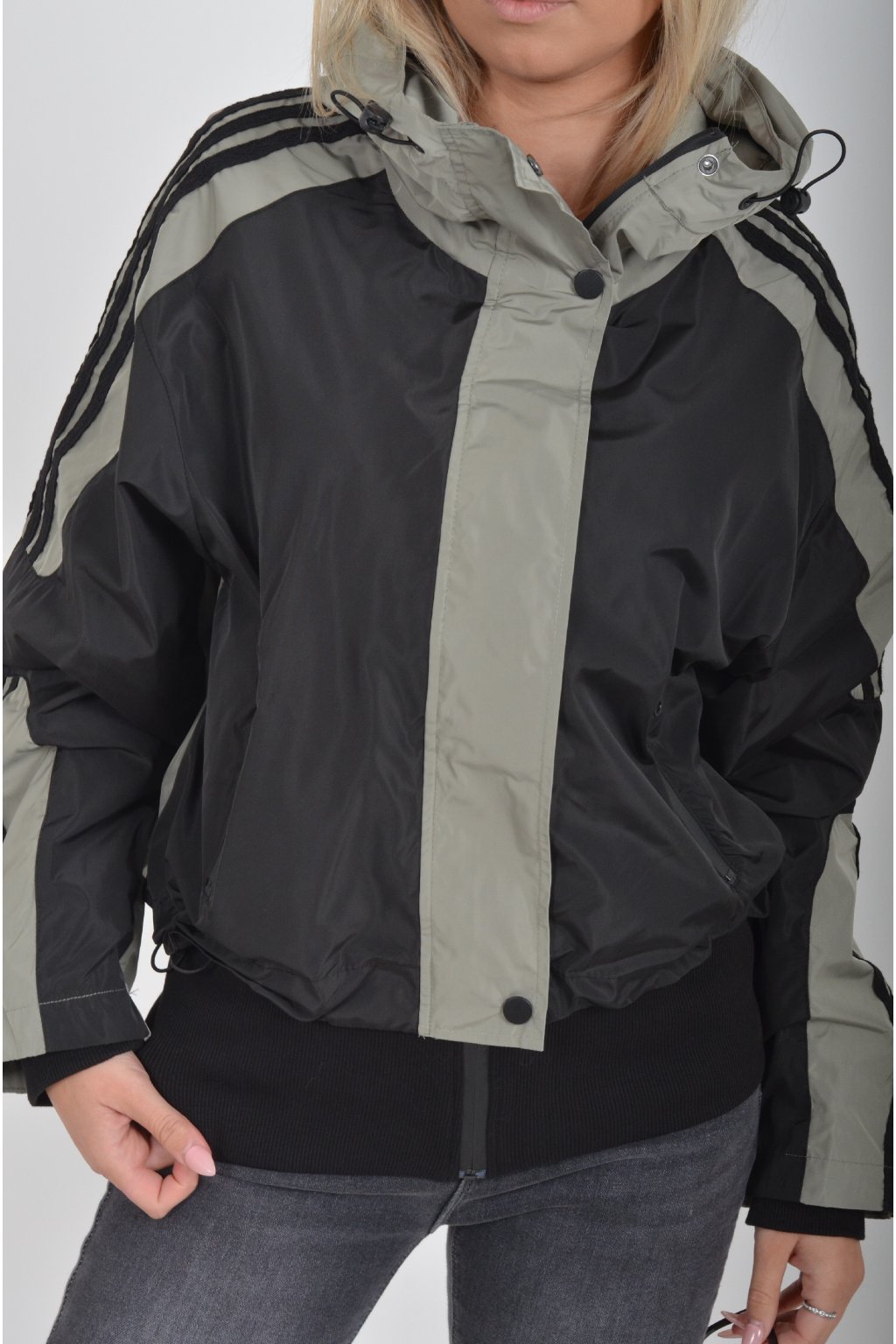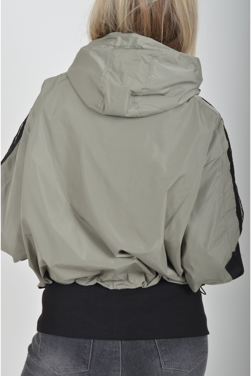 Přechodová nepromokavá bunda s podšívkou a náplety ve spodní části a na rukávech. Ve spodní části a u krku je zapracovaná guma pro libovolné stažení. Bunda má zapínaní na zip přes který je lem na patenty. V přední části jsou kapsy na zip.