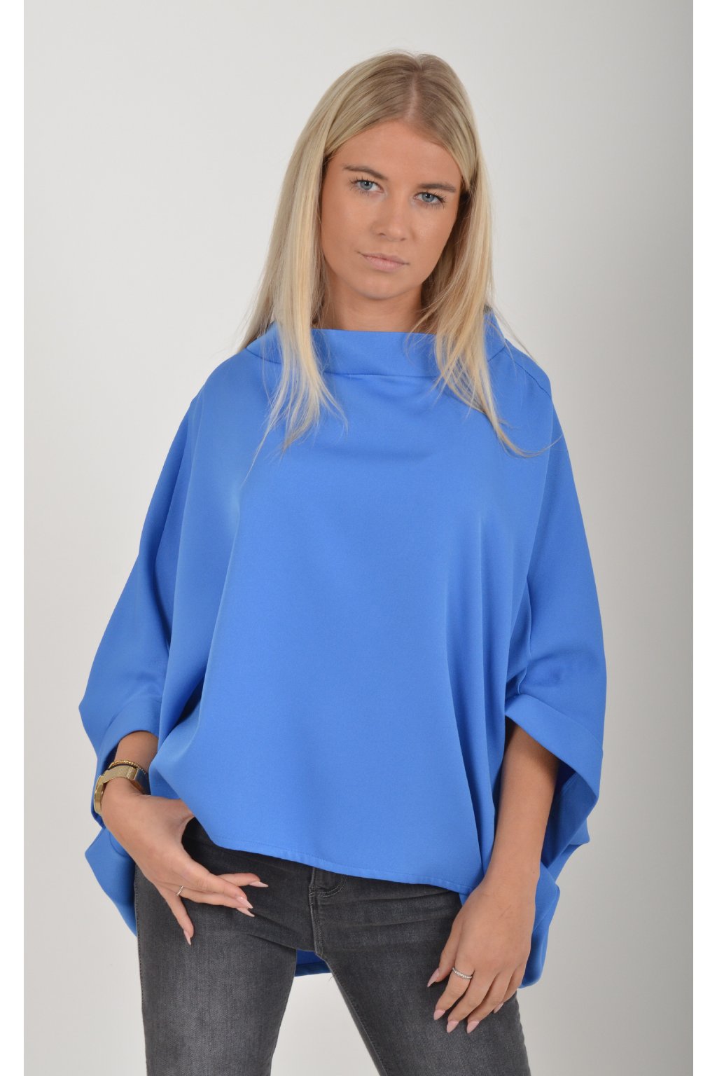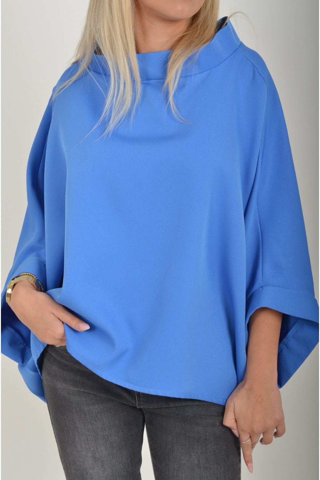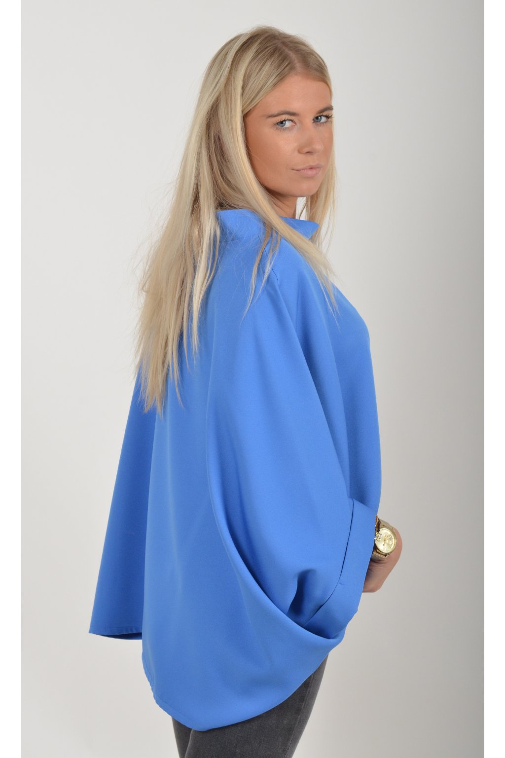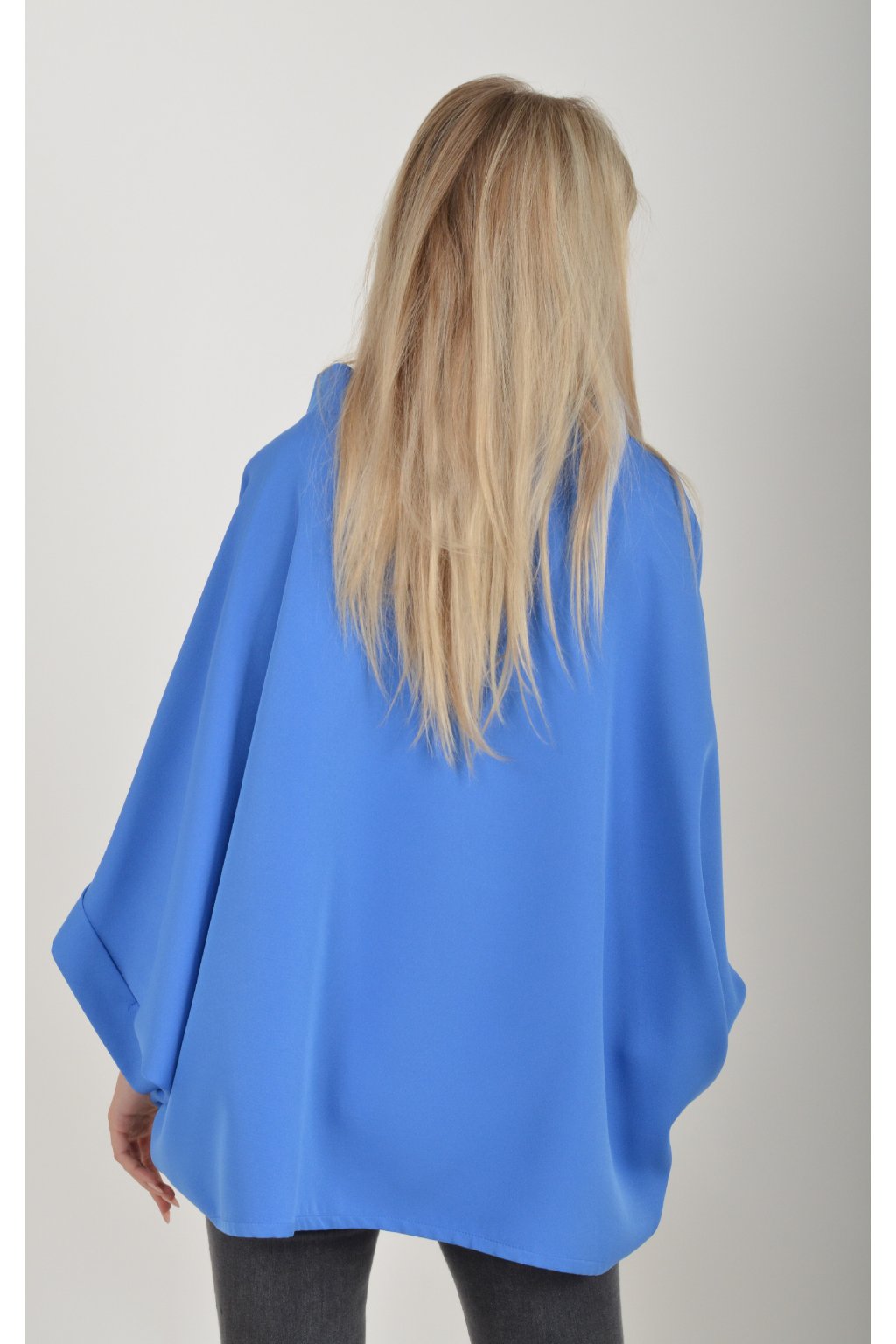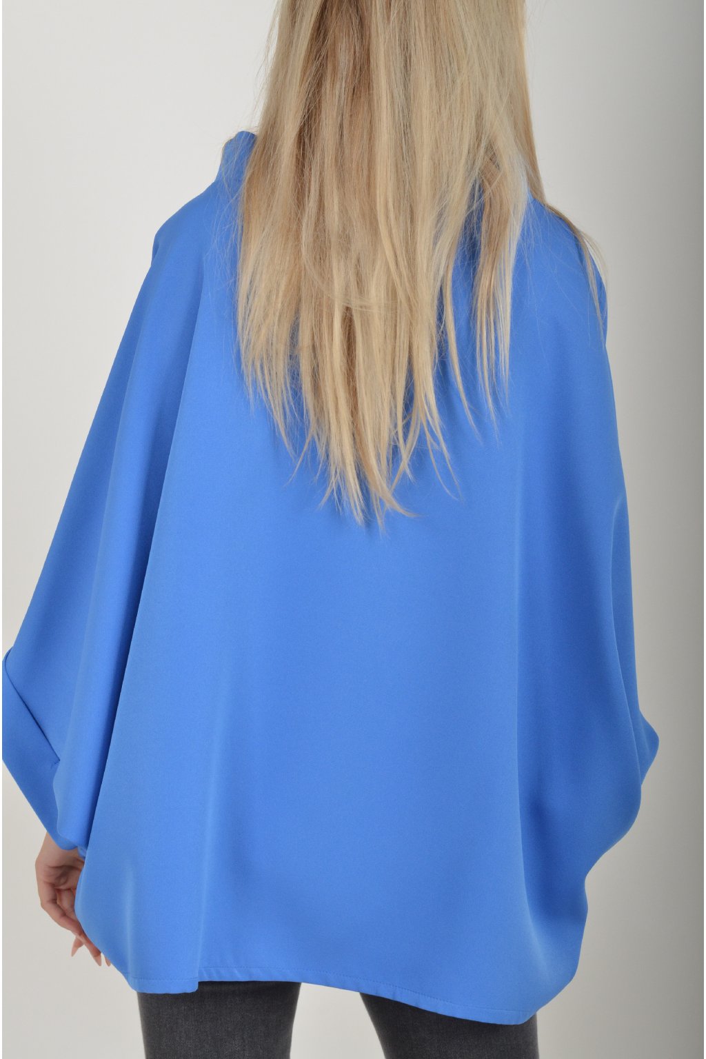 Halenka s netopýřím rukávem vhodná jak pro společenské události, tak i volnočasové nošení. Je vyrobena z velice příjemného a pevného materiálu. Přední část halenky je kratší než zadní. Je volnějšího střihu.