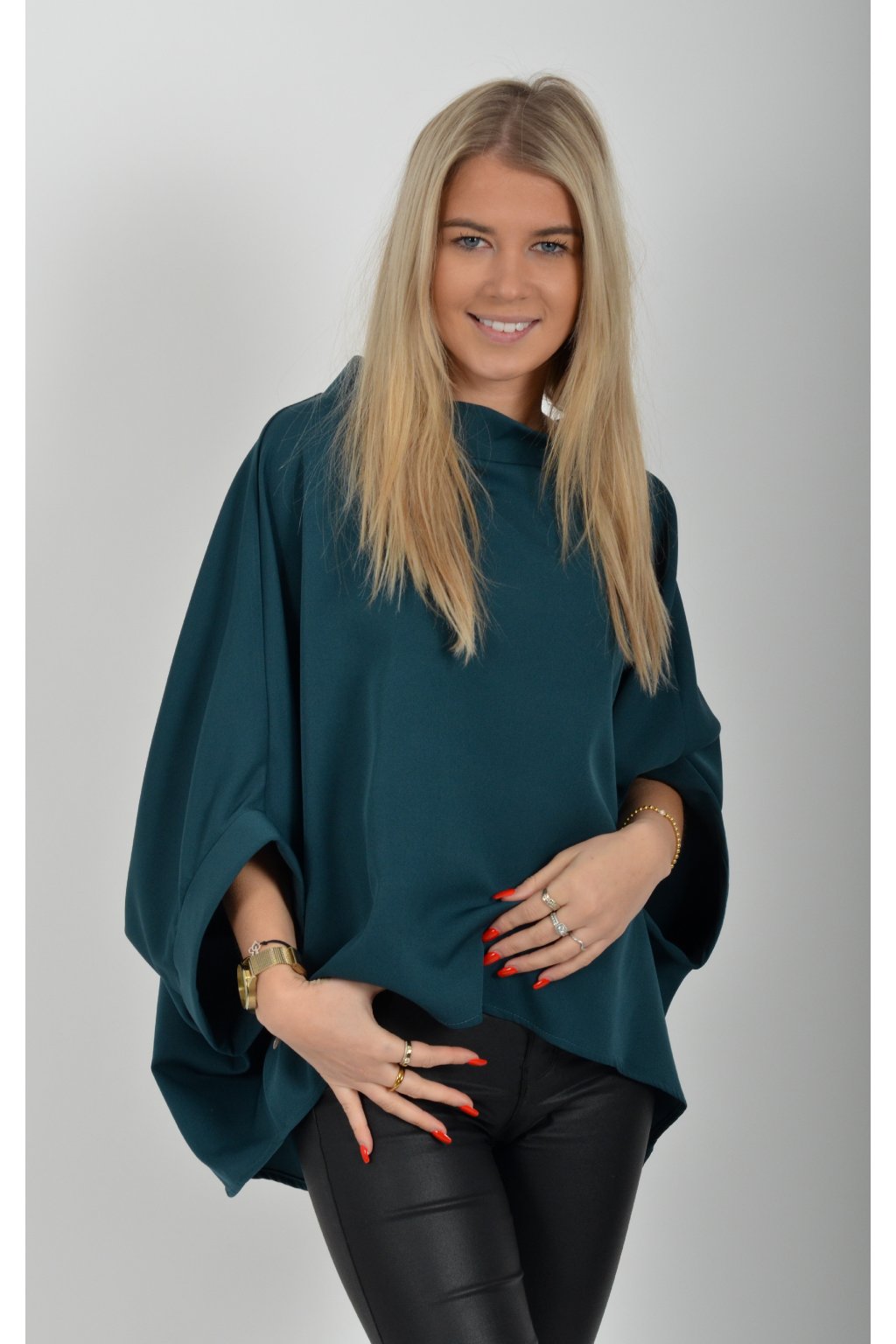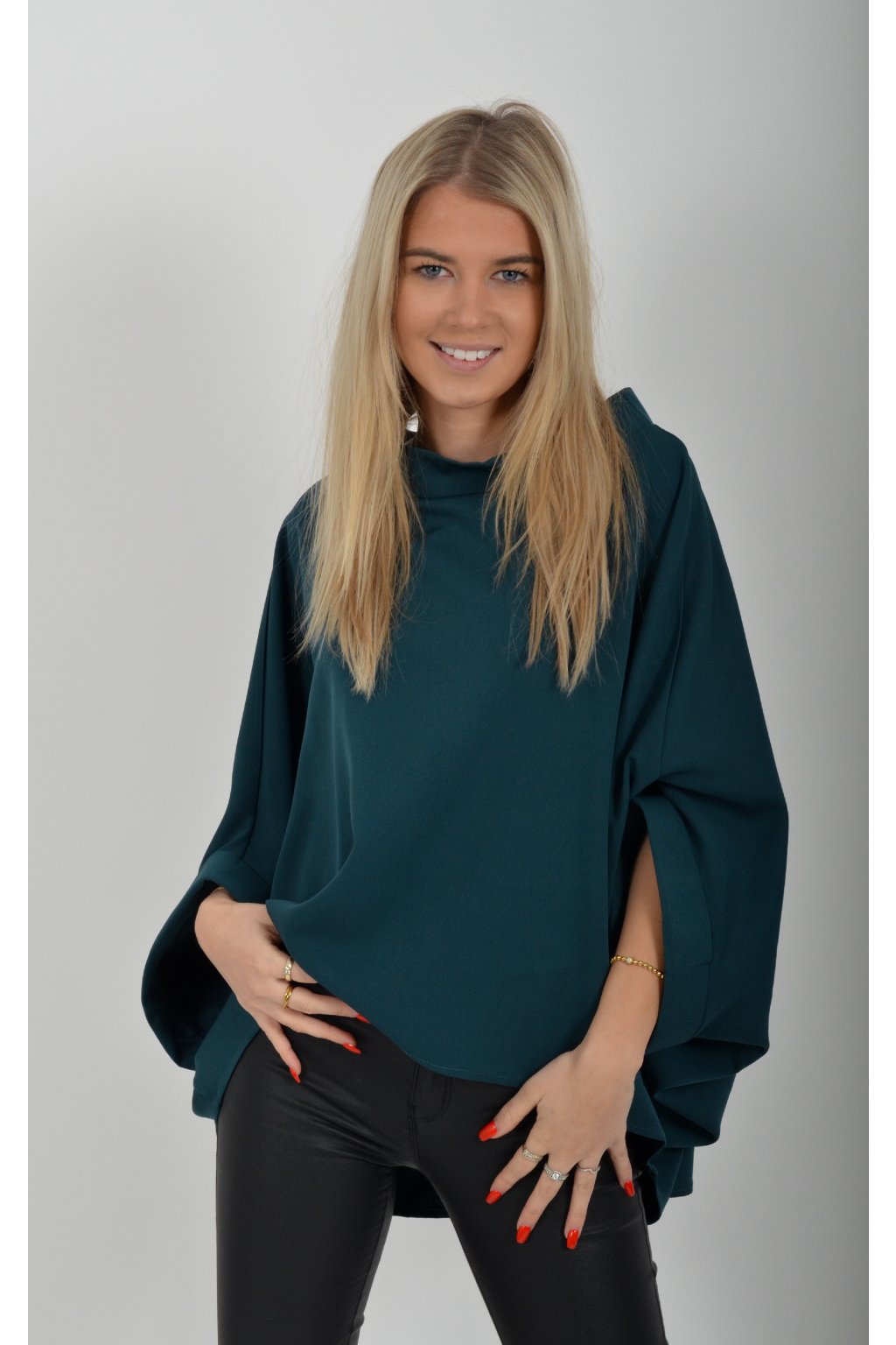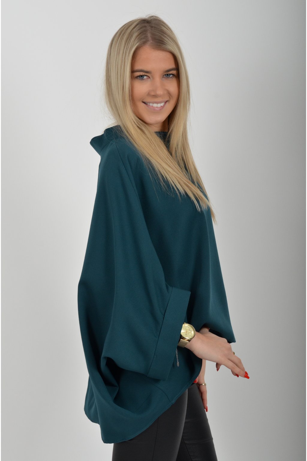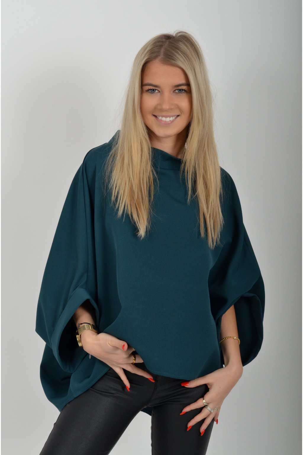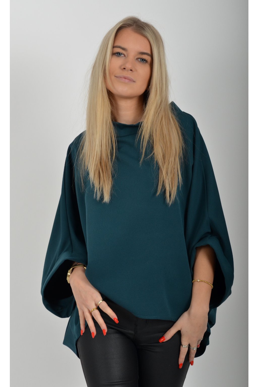 Halenka značky Miss City Official s netopýřím rukávem vhodná jak pro společenské události, tak i volnočasové nošení. Je vyrobena z velice příjemného a pevného materiálu. Přední část halenky je kratší než zadní. Je volnějšího střihu.