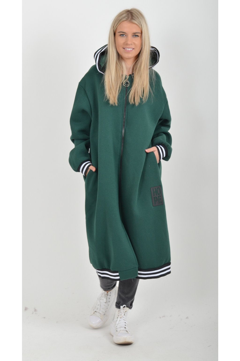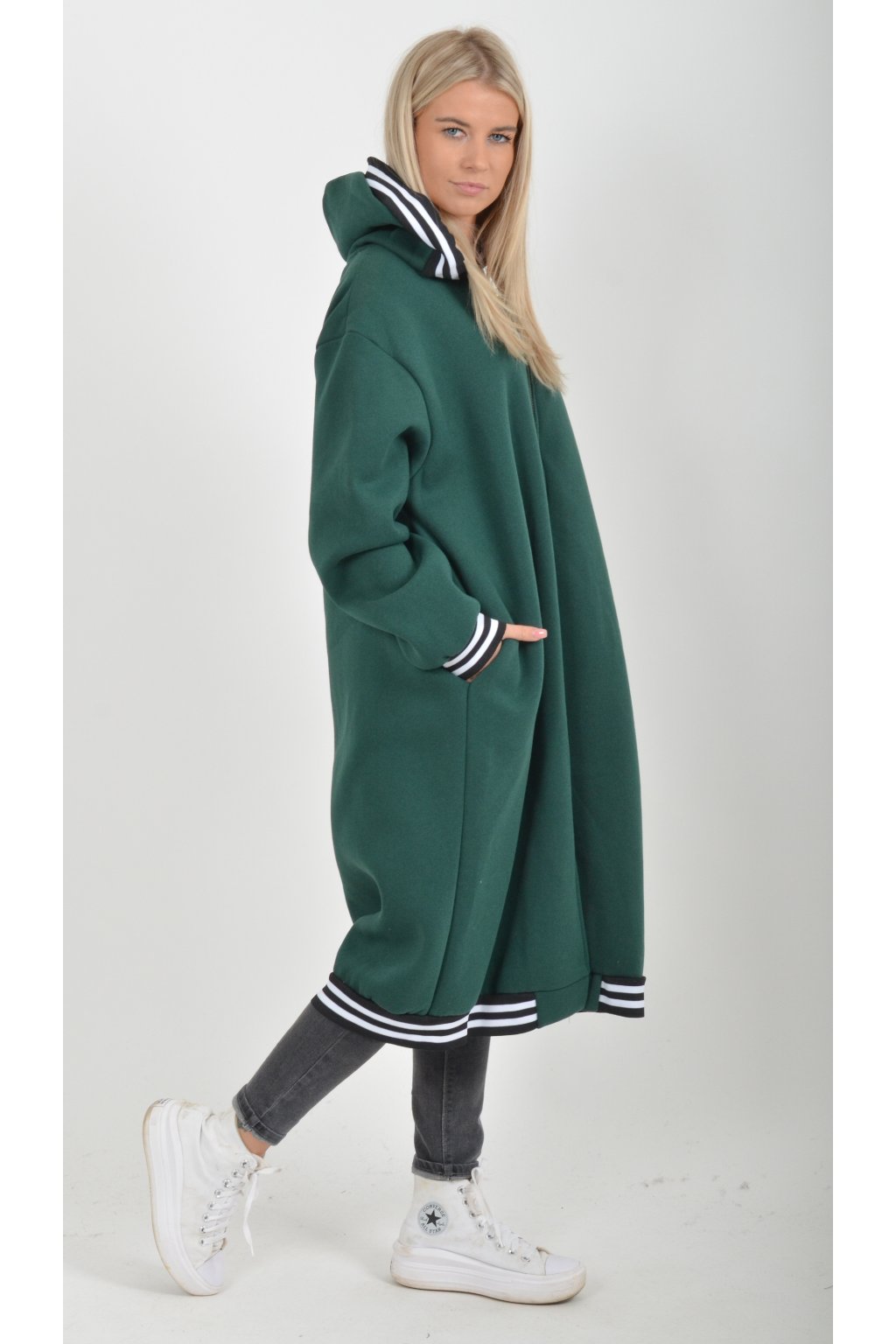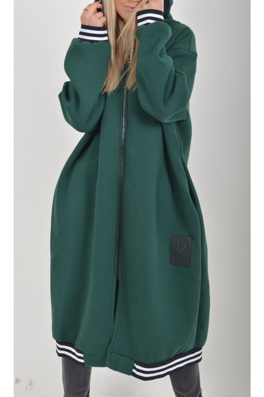 Lahvově zelená maxi mikina ES6043
