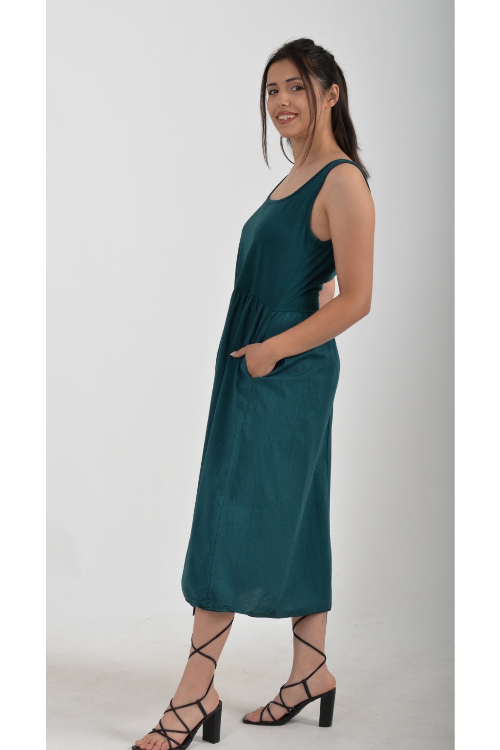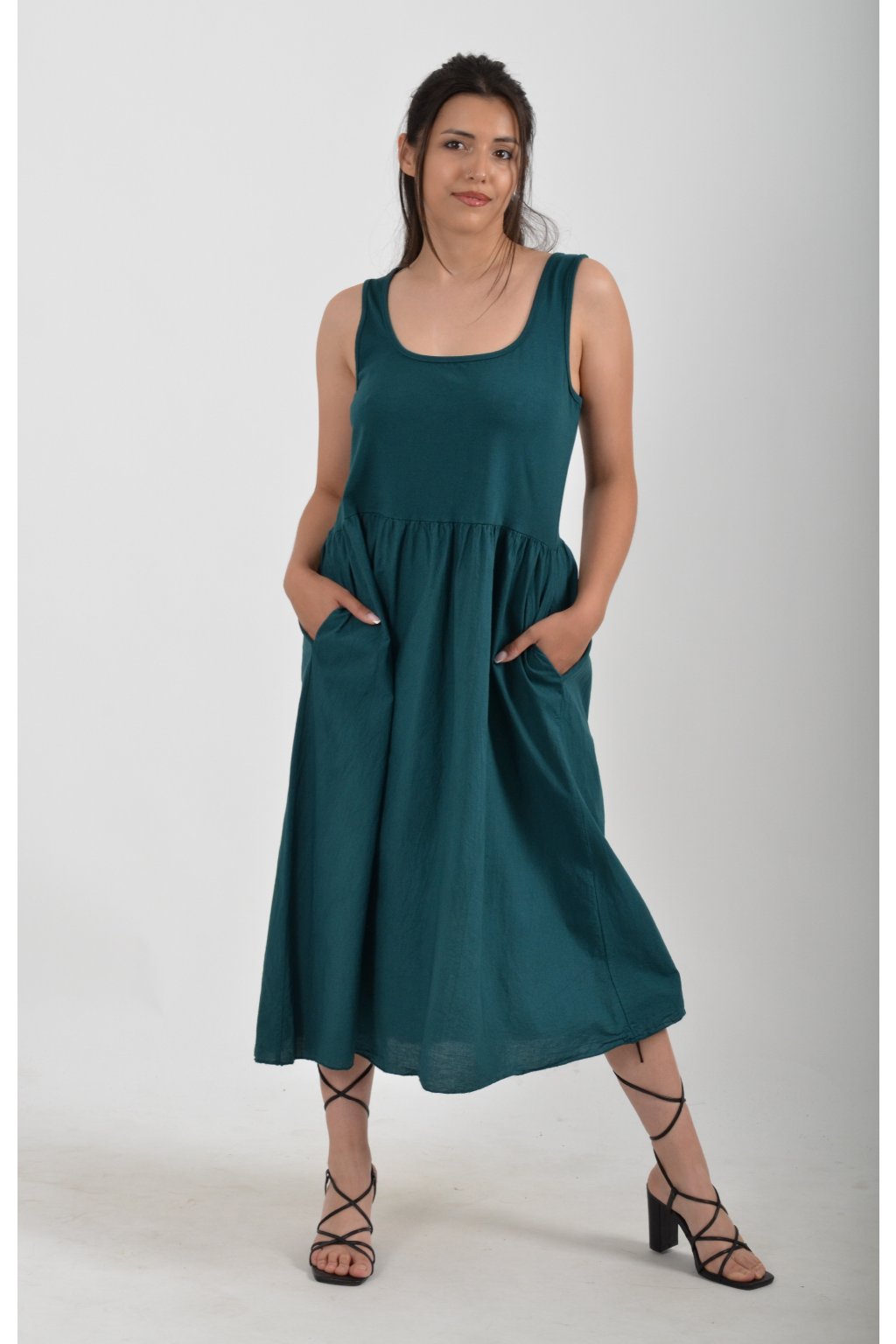 Jednobarevné šaty z velice příjemného a lehounkého materiálu. Na bocích mají kapsy a jsou vhodné pro nošení v letních dnech.