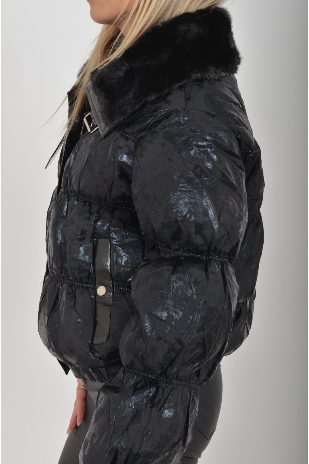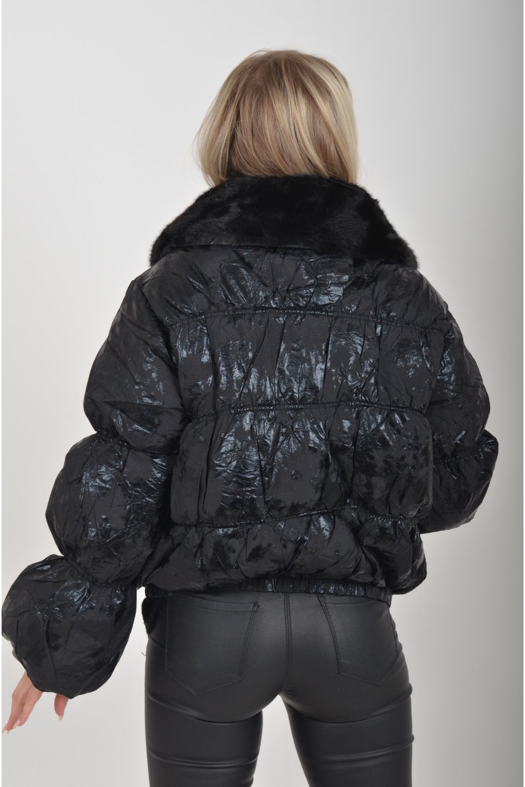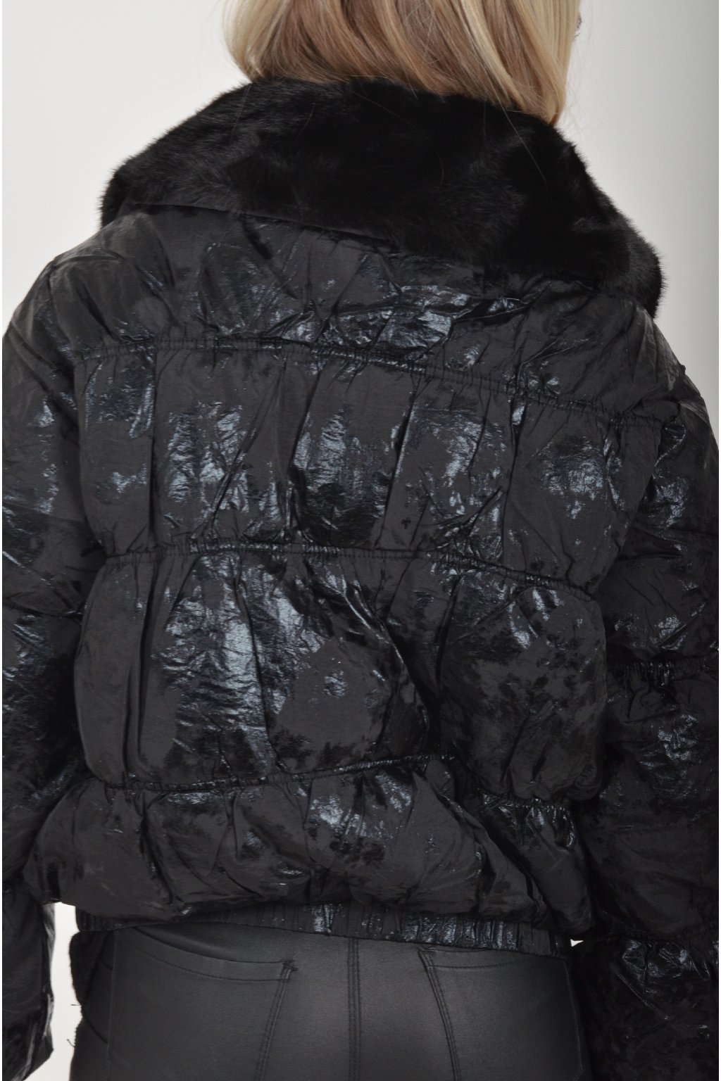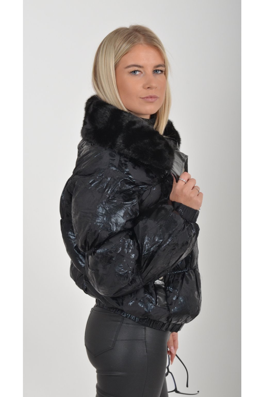 Lesklá, nadýchaná, stylová a příjemně hřejivá bunda s balonovými rukávy a elastickým pasem. Krátký střih zvýrazní postavu, hebký kožíšek u krku a koženkové detaily dodají bundě ten správný šmrnc. Skvěle se hodí k džínům, legínám i k zimním kozačkám.