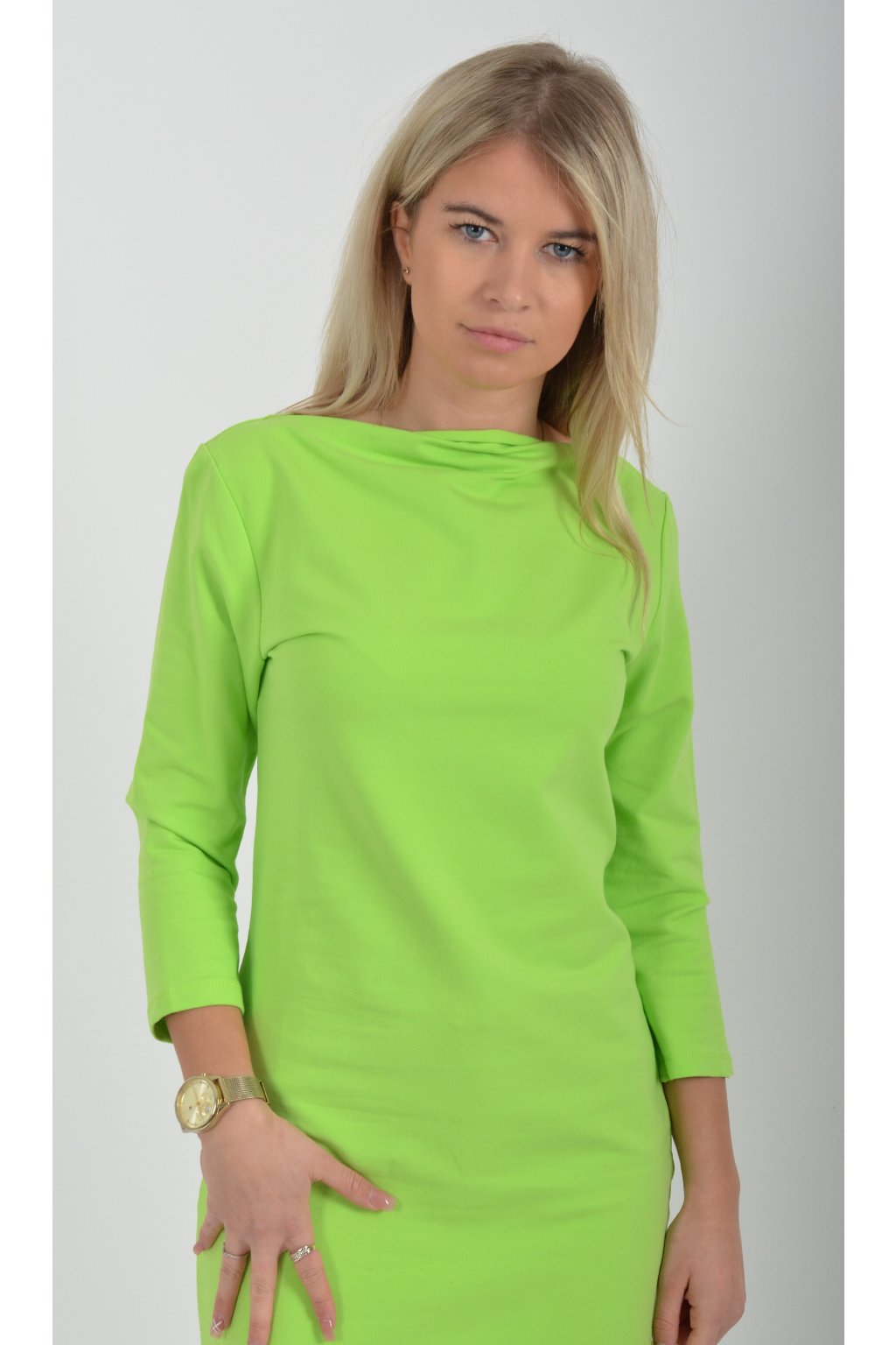 Jednobarevné basic šaty s tříčtvrtečním rukávem rovného střihu. Šaty mají lodičkový výstřih a jsou vyrobené z příjemné a lehounké bavlny.