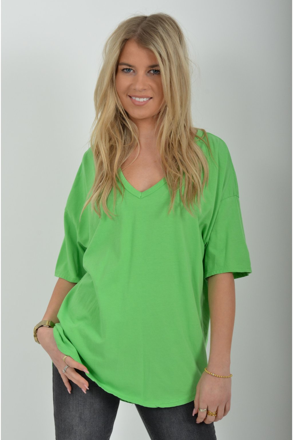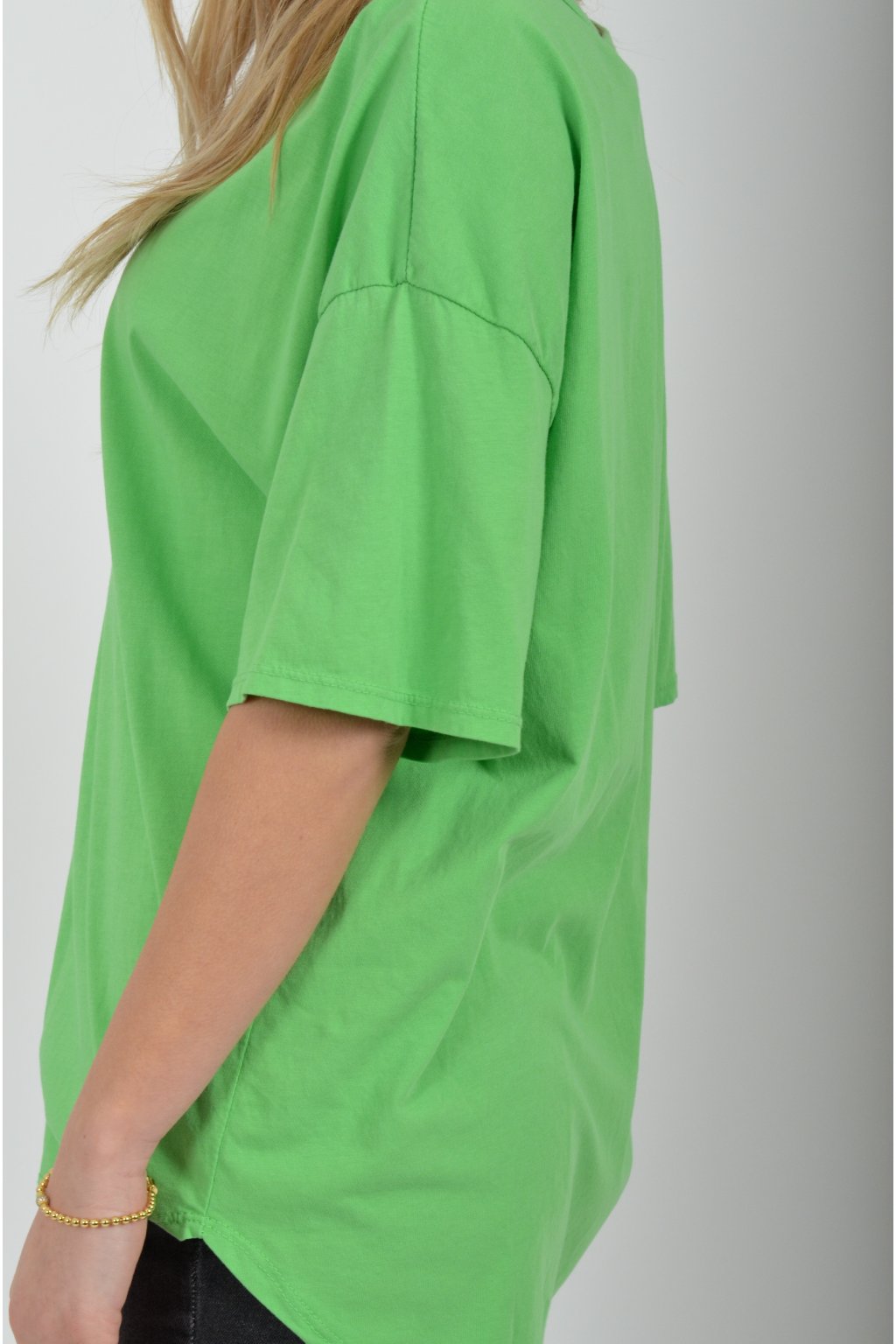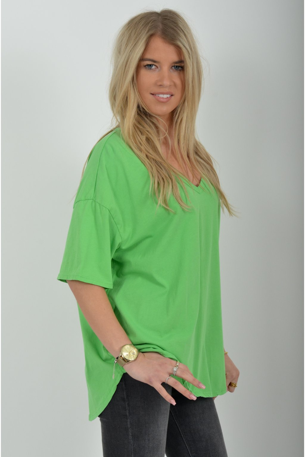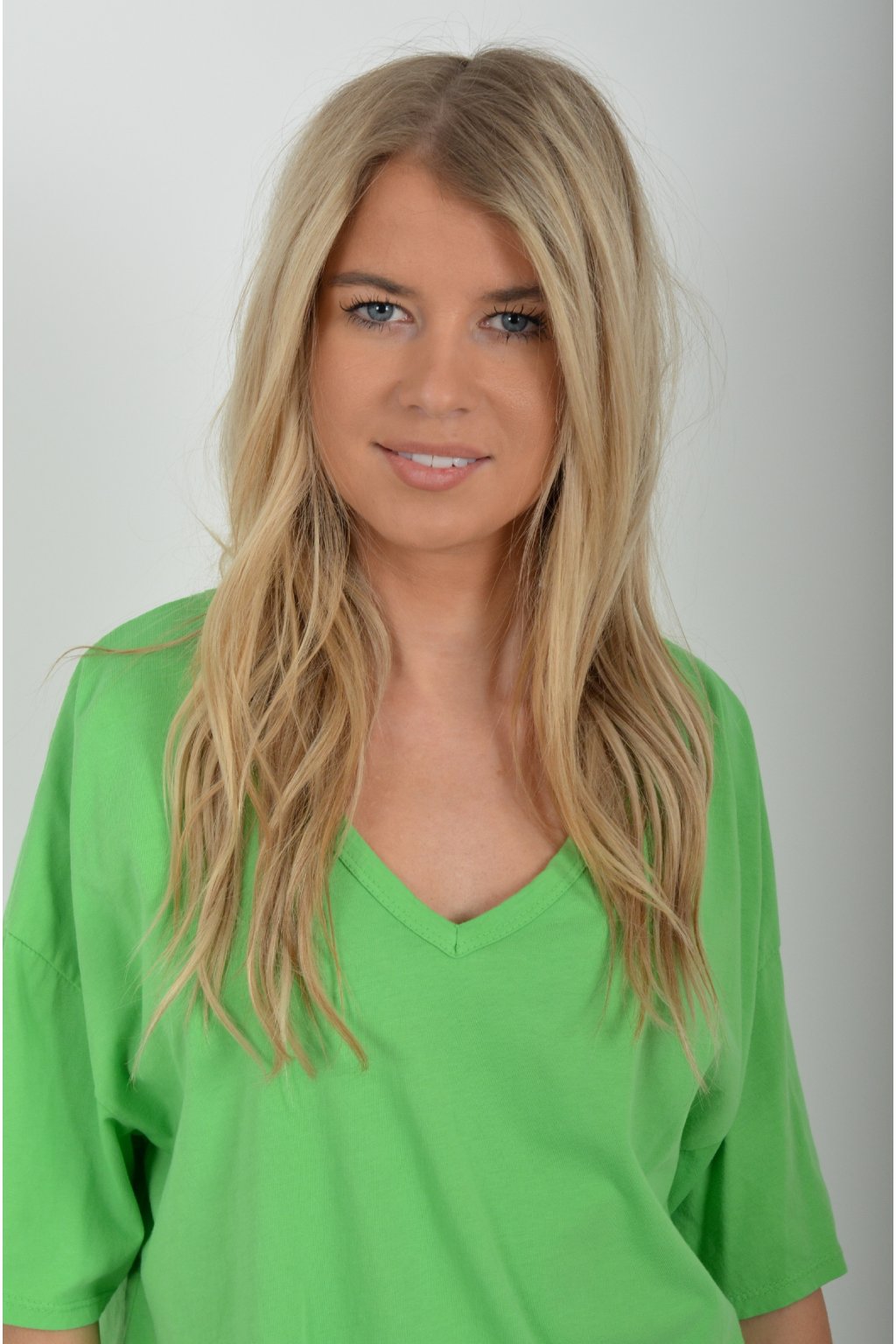 Jednobarevné tričko s krátkým rukávem a výstřihem do V. Zadní část trička je delší než přední. Je vyrobené z velice lehké, měkké a příjemné bavlny.