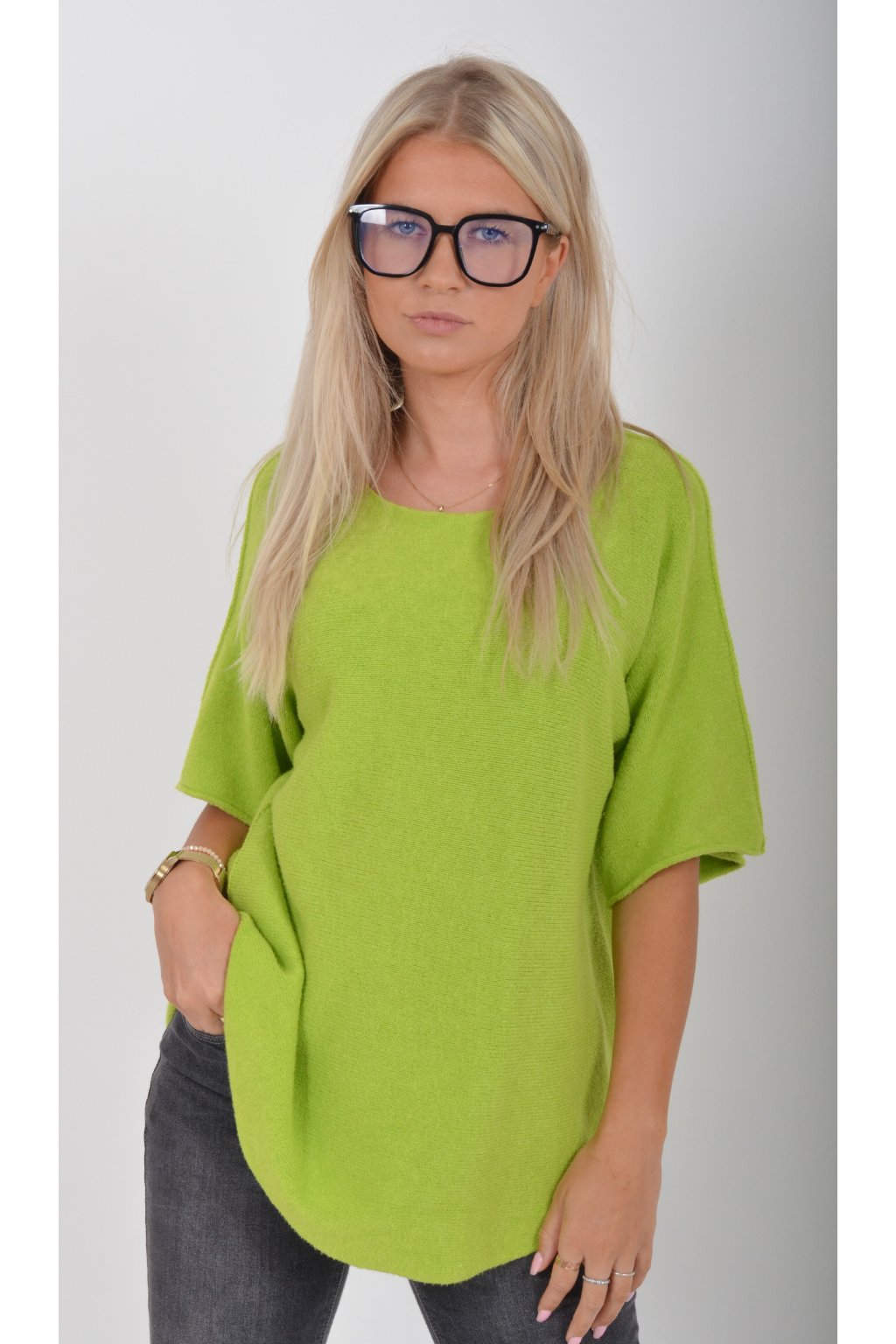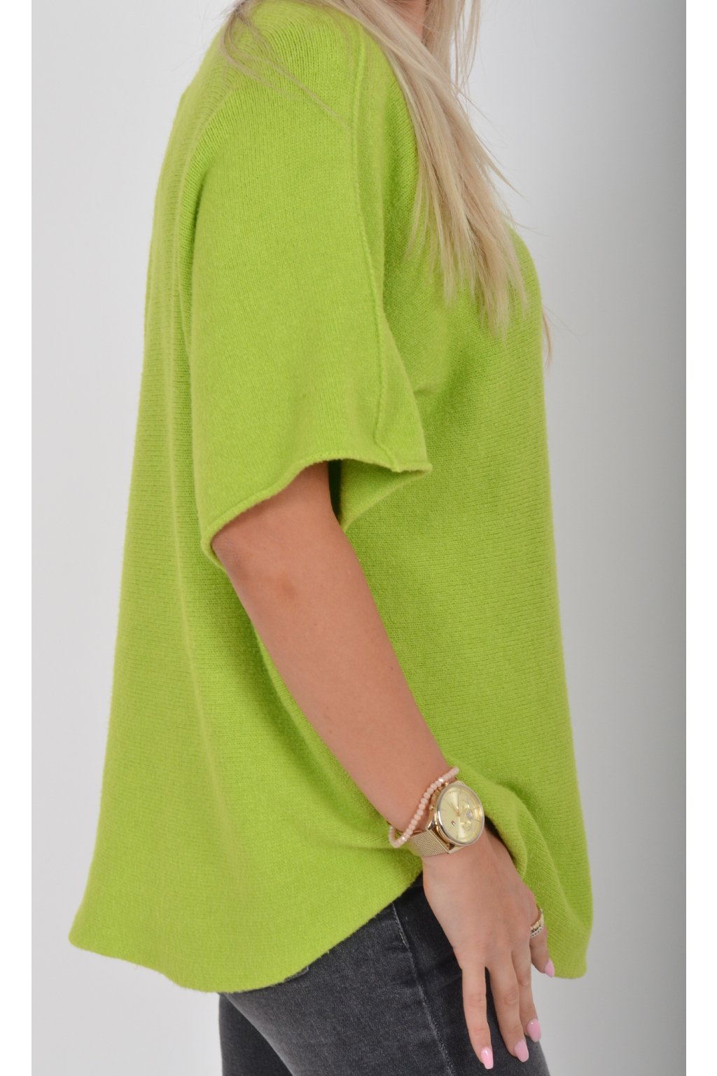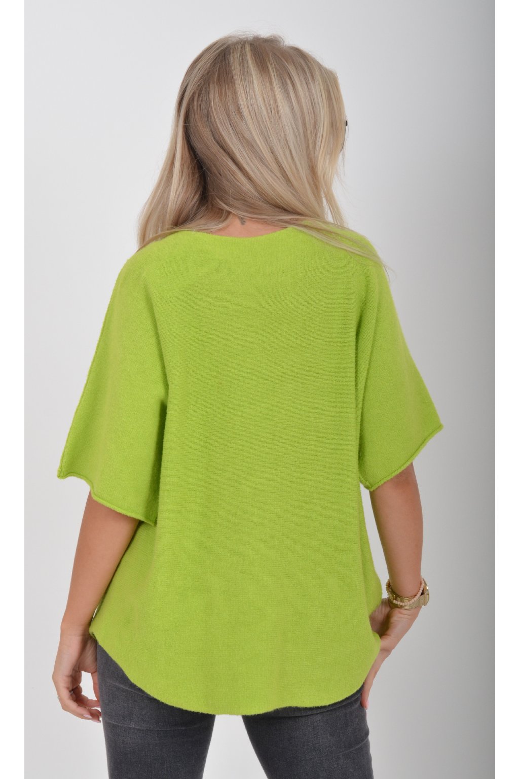 Tenký svetr s krátkým rukávem z nekousavého, velice jemného a příjemného materiálu.