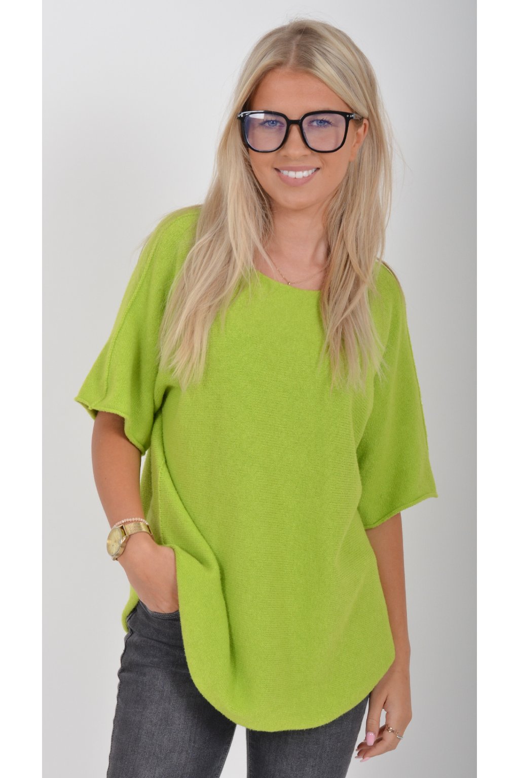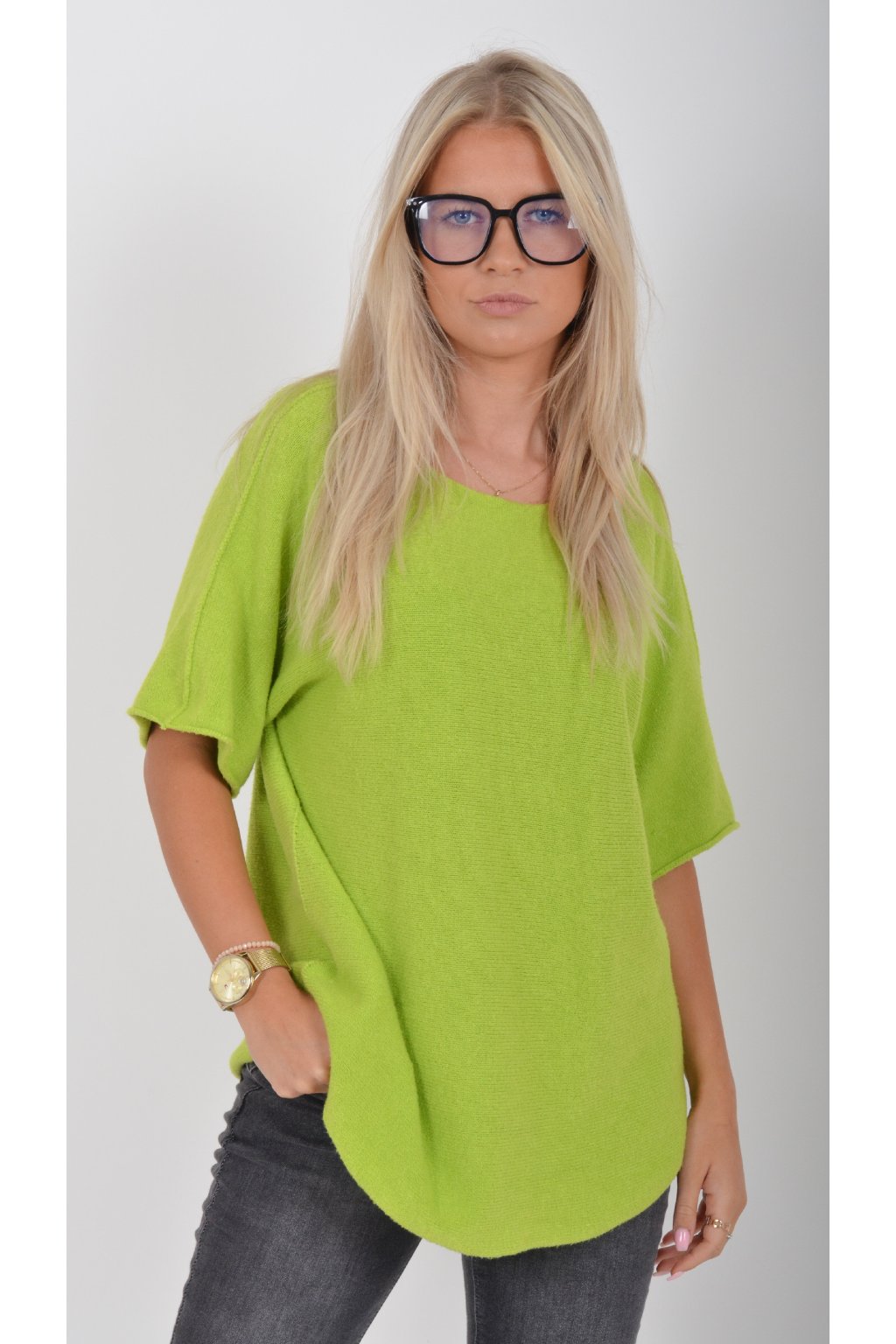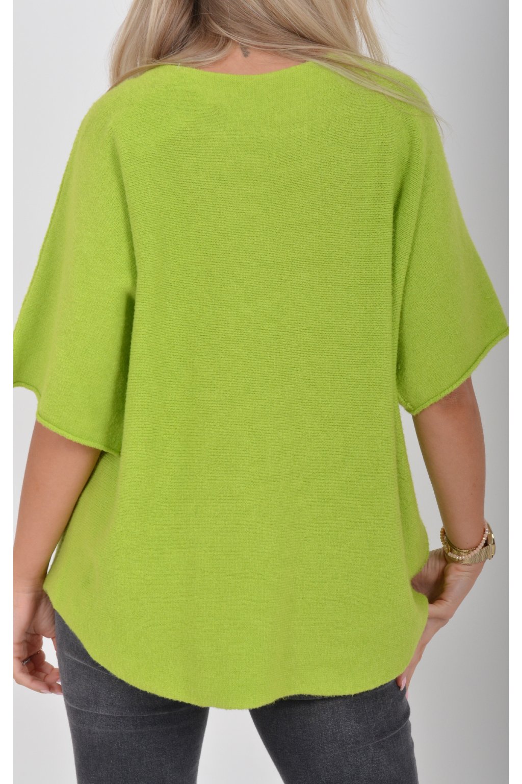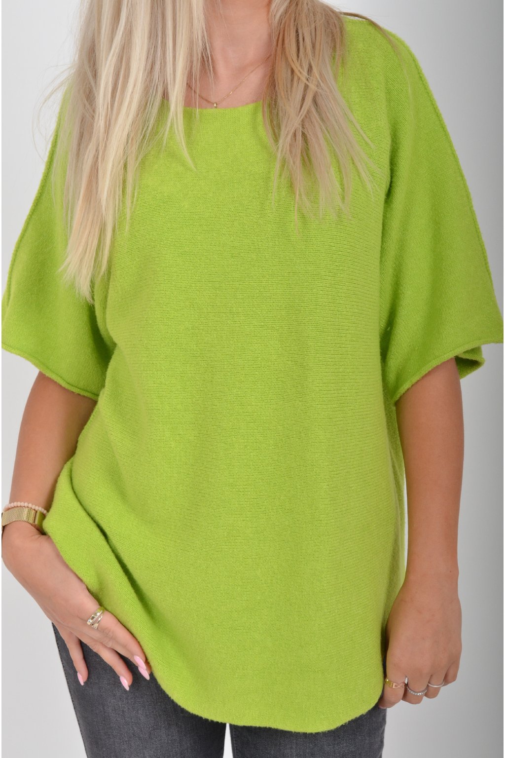 Tenký svetr s krátkým rukávem z nekousavého, velice jemného a příjemného materiálu.