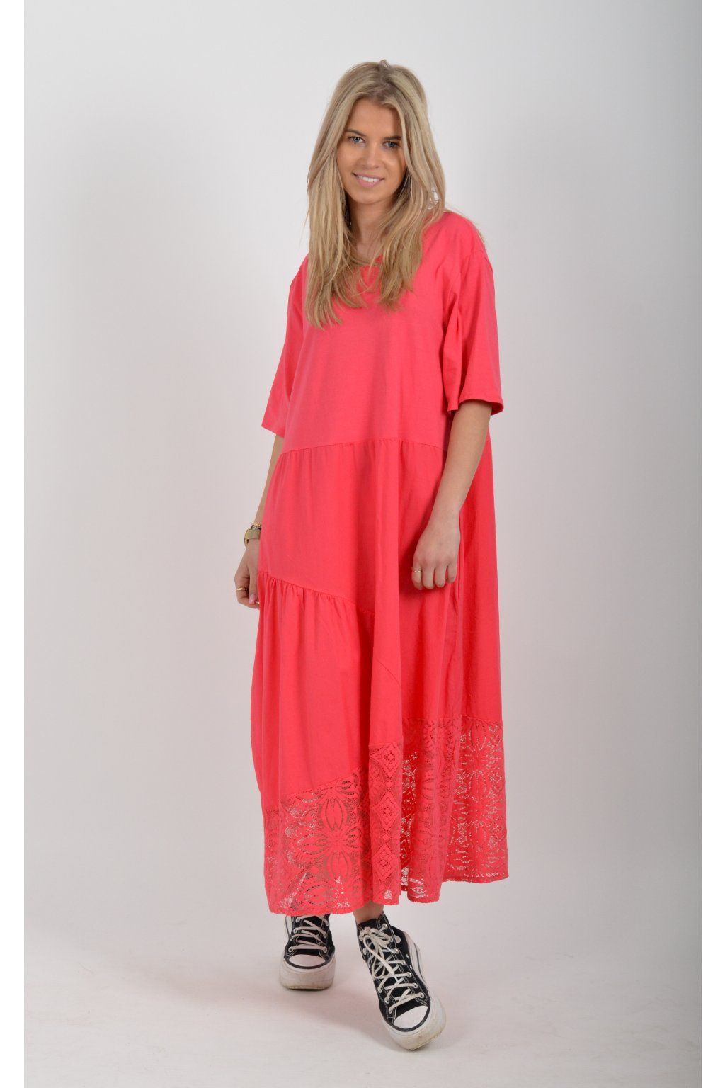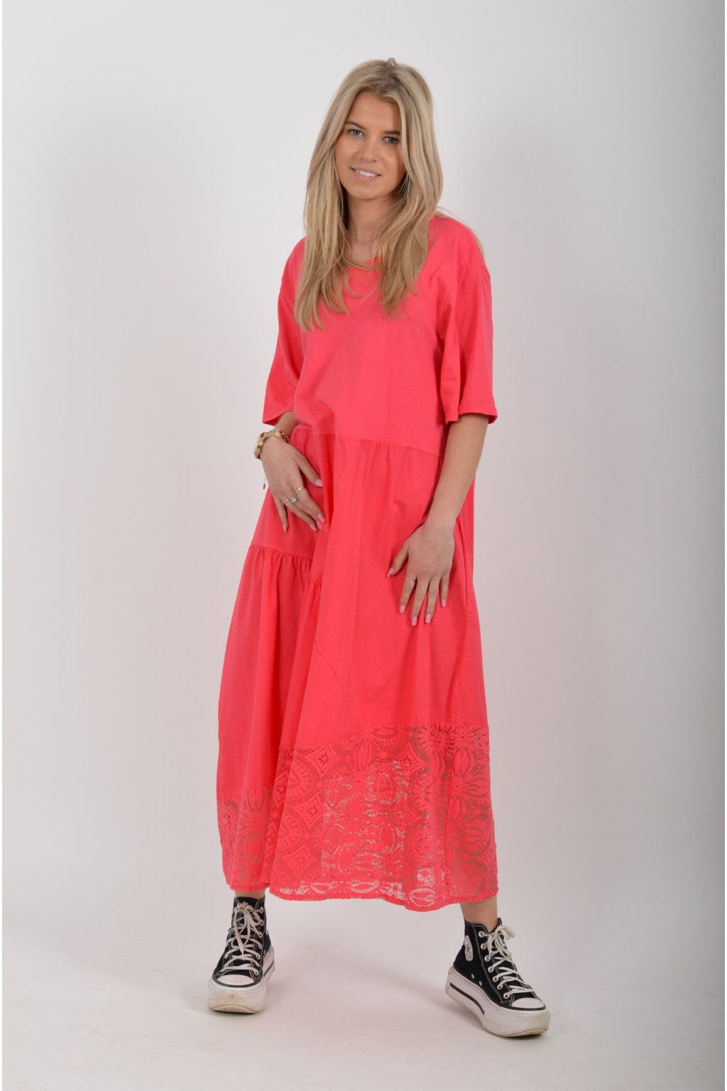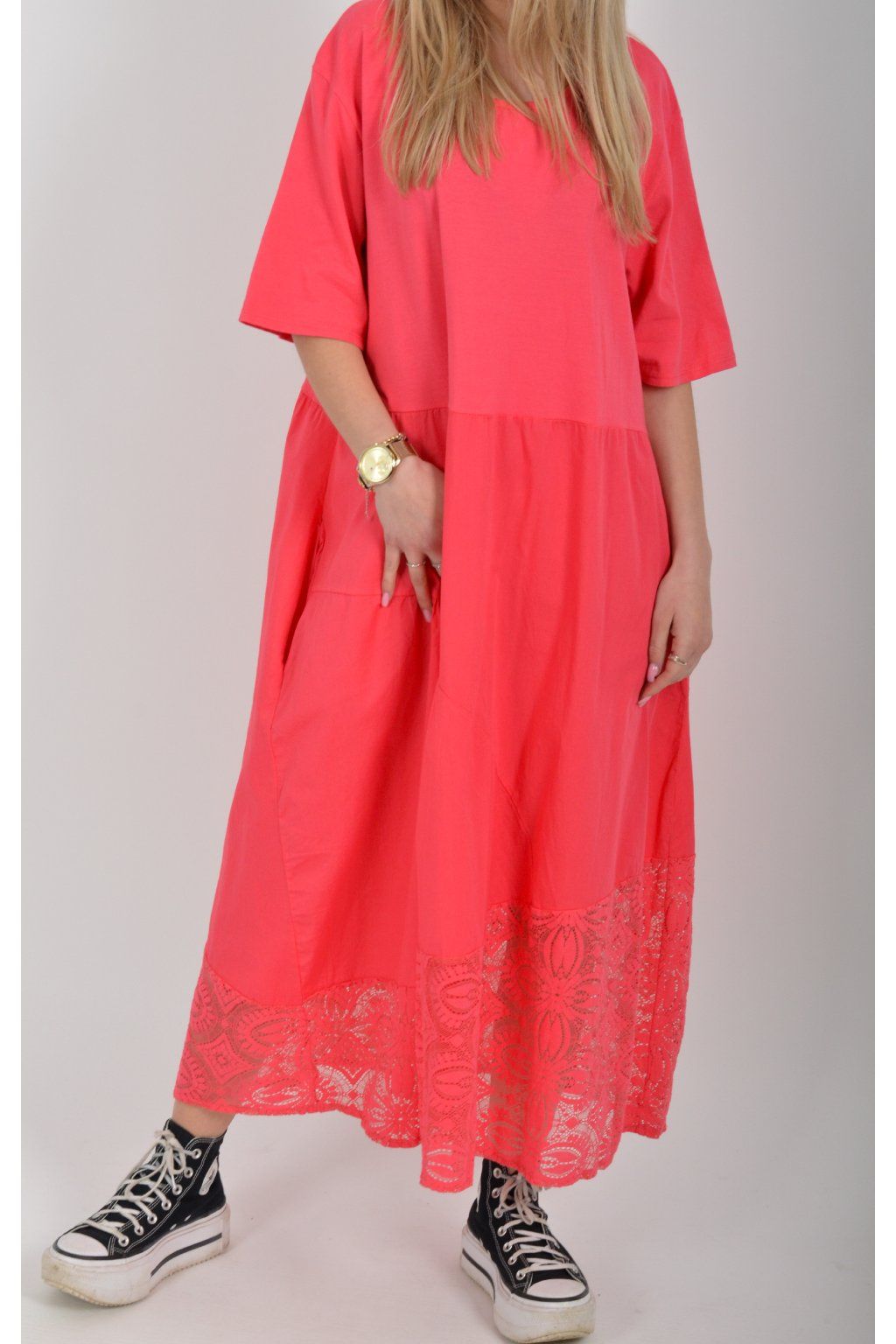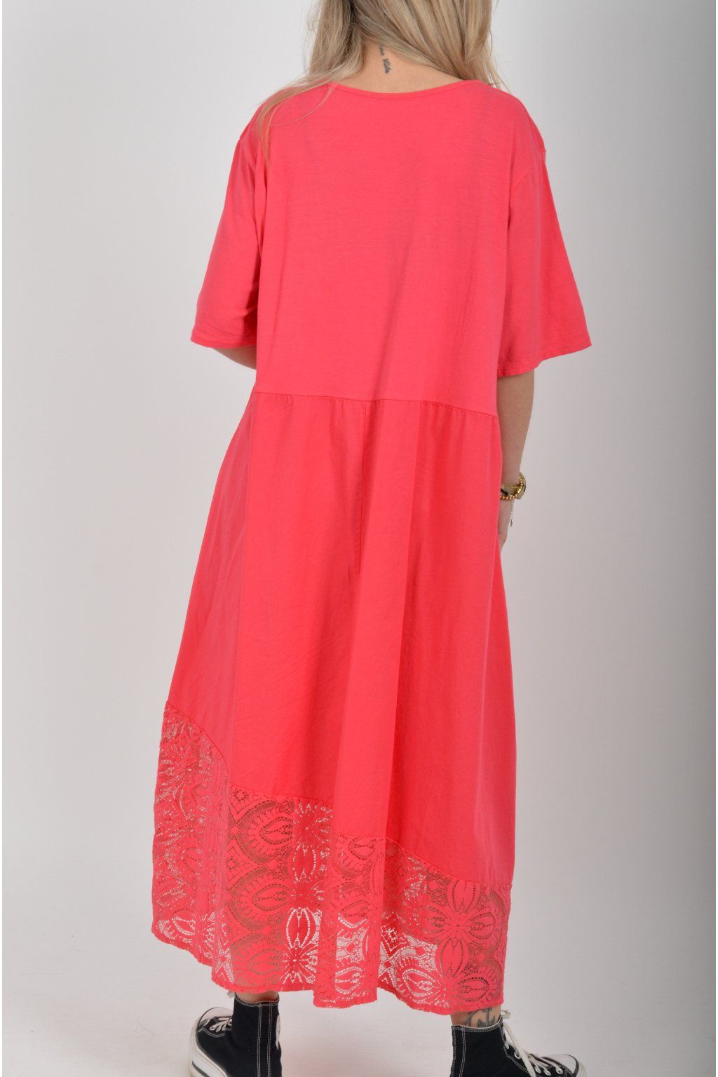 Zajímavé bavlněné šaty s krajkou ve spodní části. Šaty mají áčkový střih, na bocích kapsy a krátké rukávy. Jsou vyrobené z velice příjemného a lehce pružného materiálu.