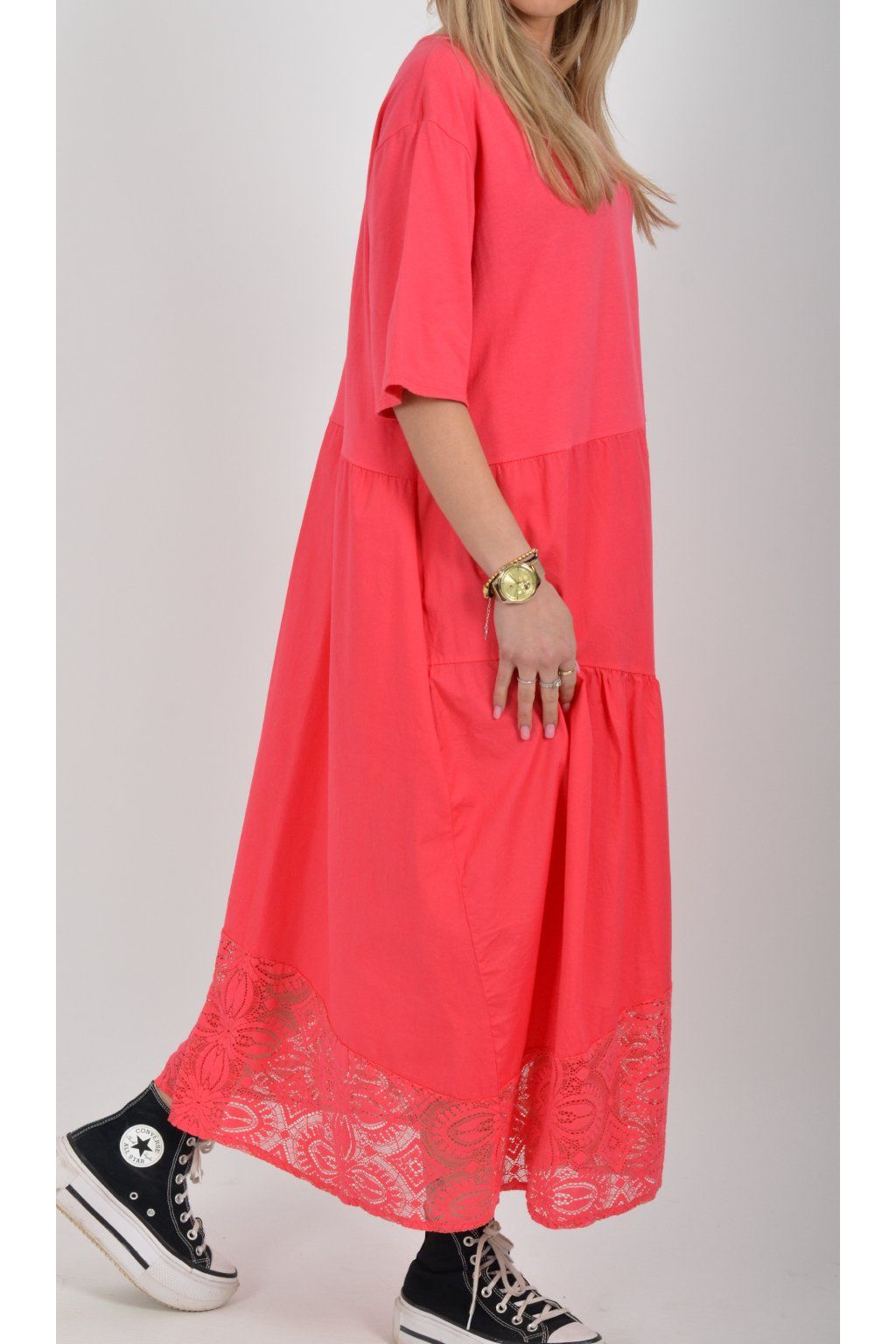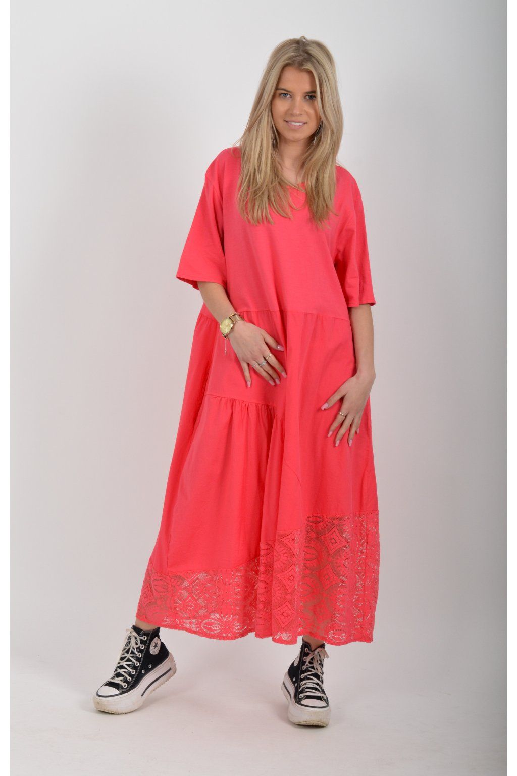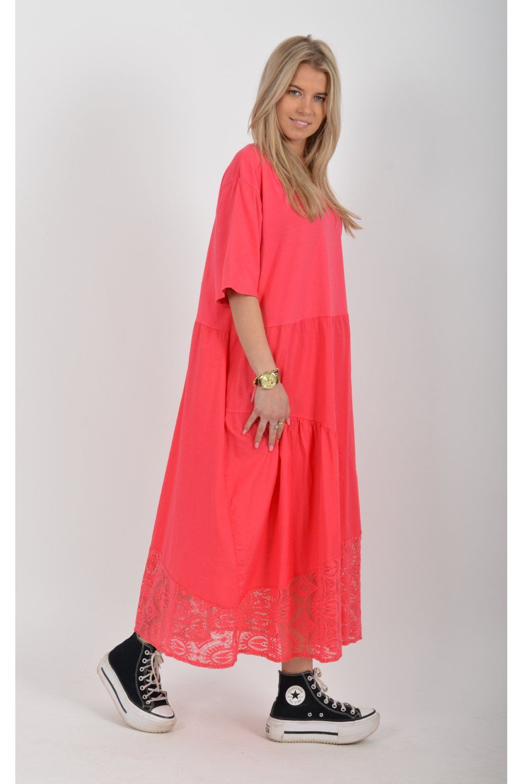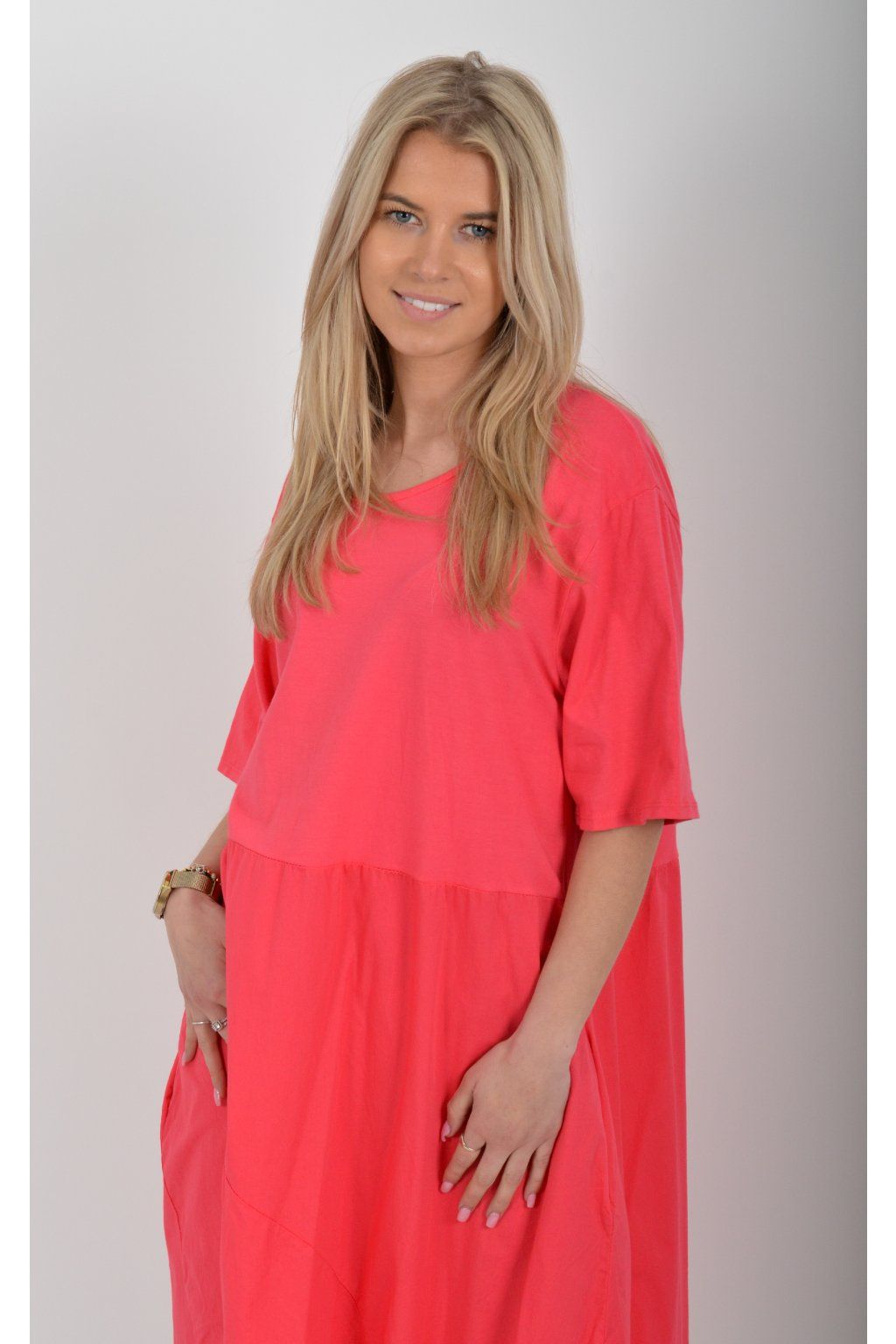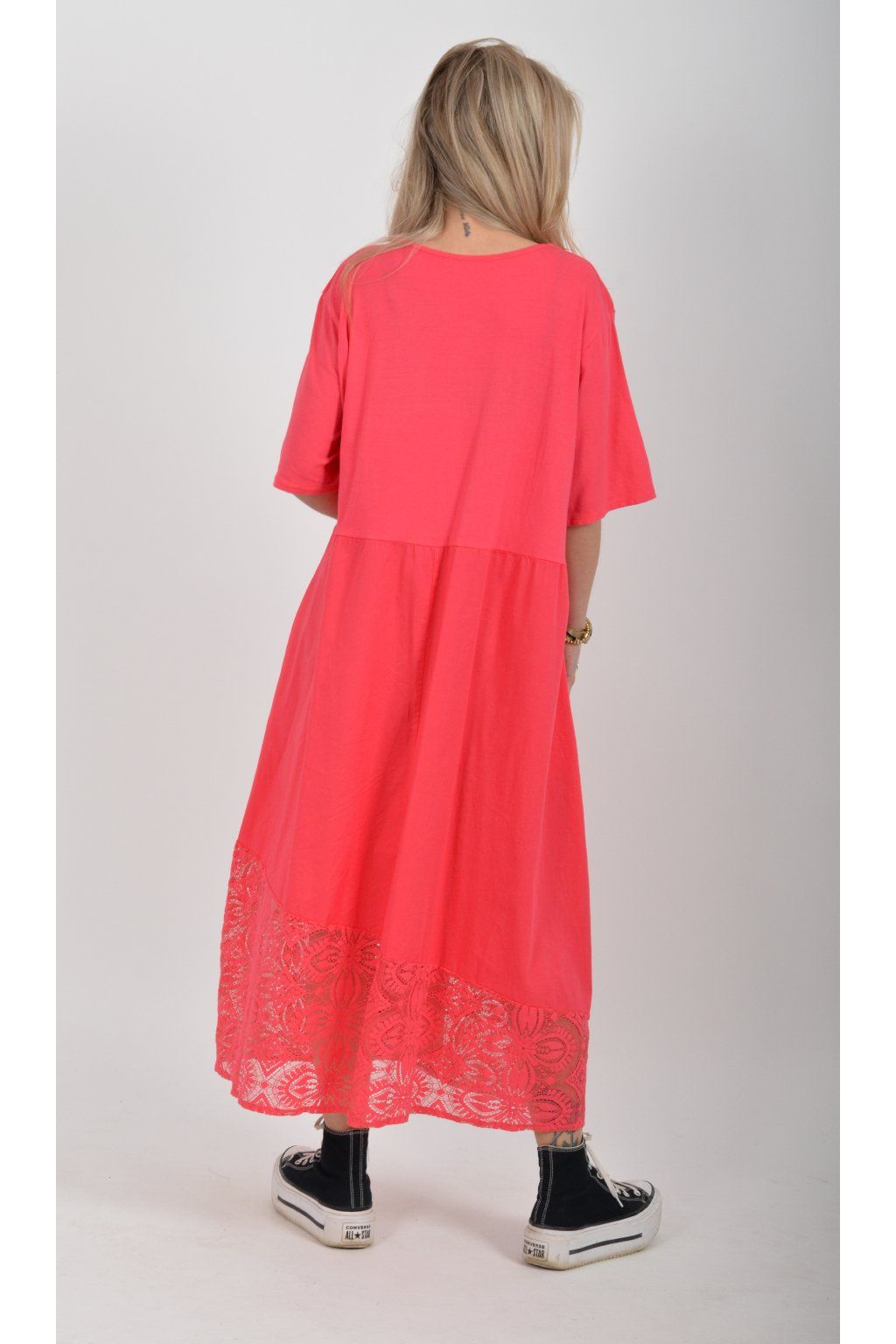 Zajímavé bavlněné šaty s krajkou ve spodní části. Šaty mají áčkový střih, na bocích kapsy a krátké rukávy. Jsou vyrobené z velice příjemného a lehce pružného materiálu.