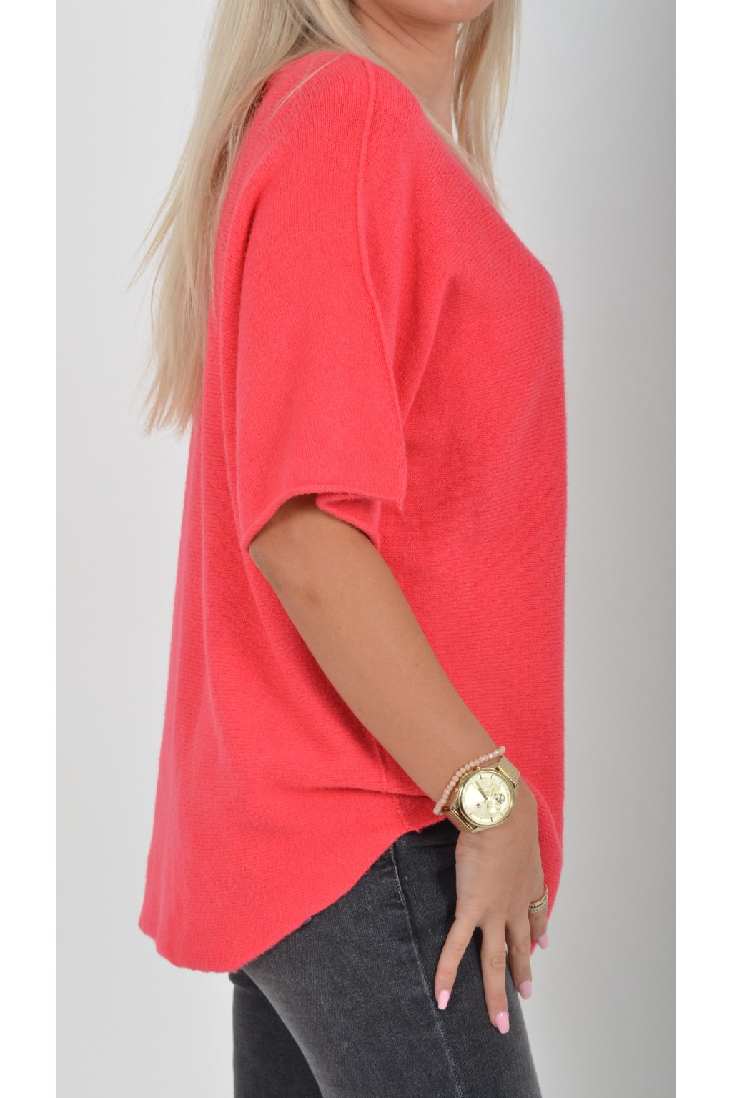 Tenký svetr s krátkým rukávem z nekousavého, velice jemného a příjemného materiálu.