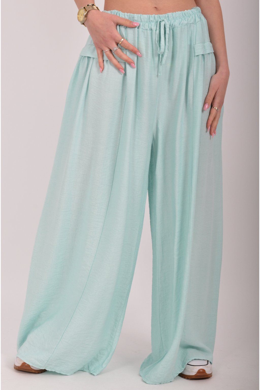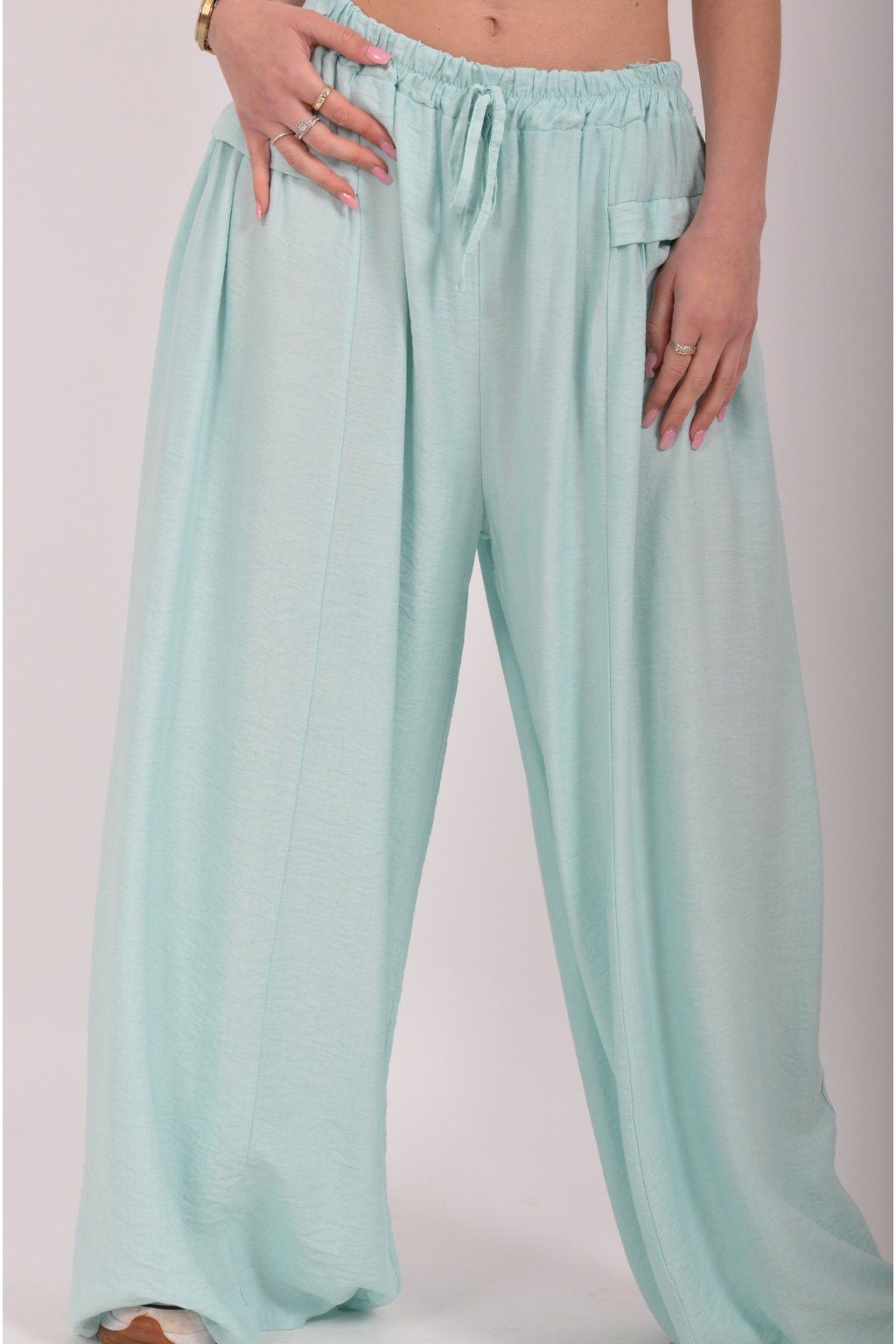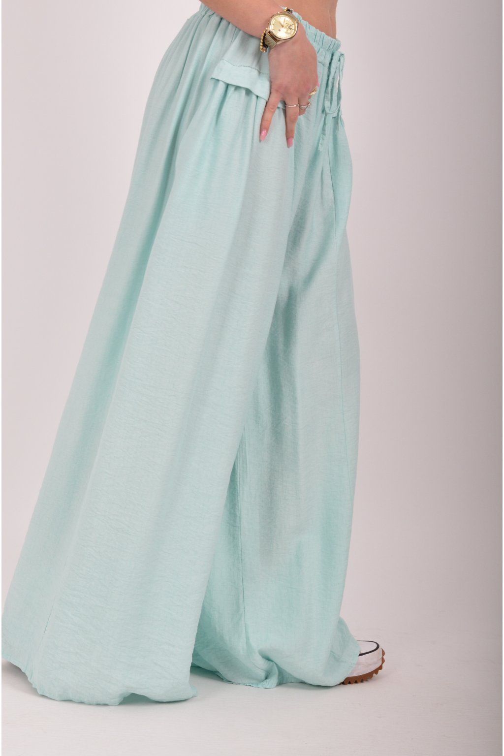 Kalhoty se širokými nohavicemi a kapsami na bocích, které se krásně přizpůsobí postavě, díky zapracované gumě v pase. Jsou vhodné pro každodenní nošení. Šňůrka, v přední části je "falešná" (nejde pomocí ní kalhoty stáhnout v pase)