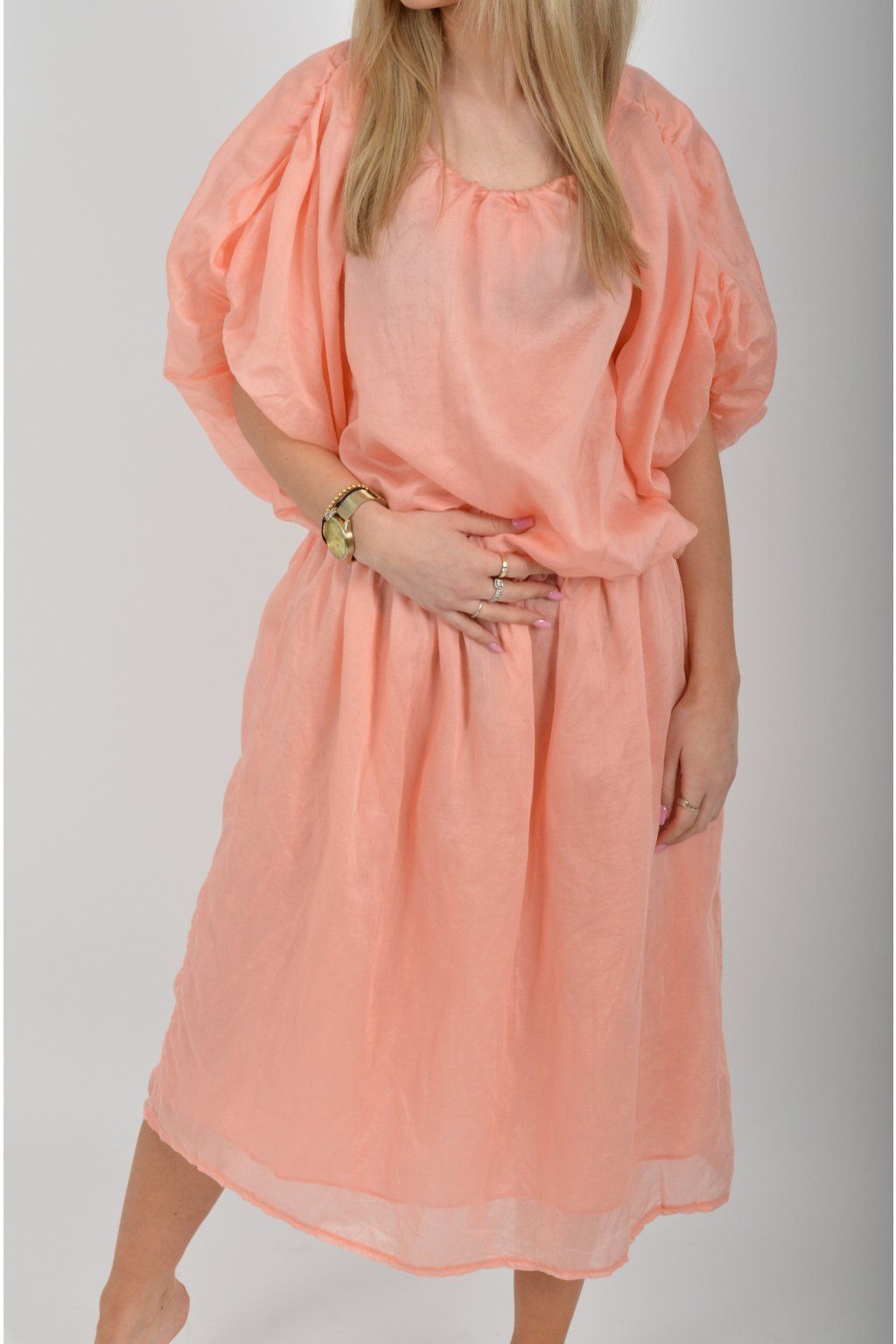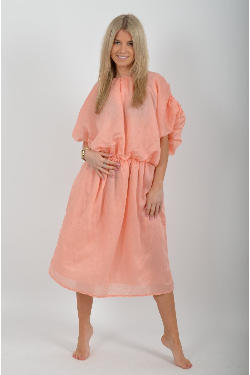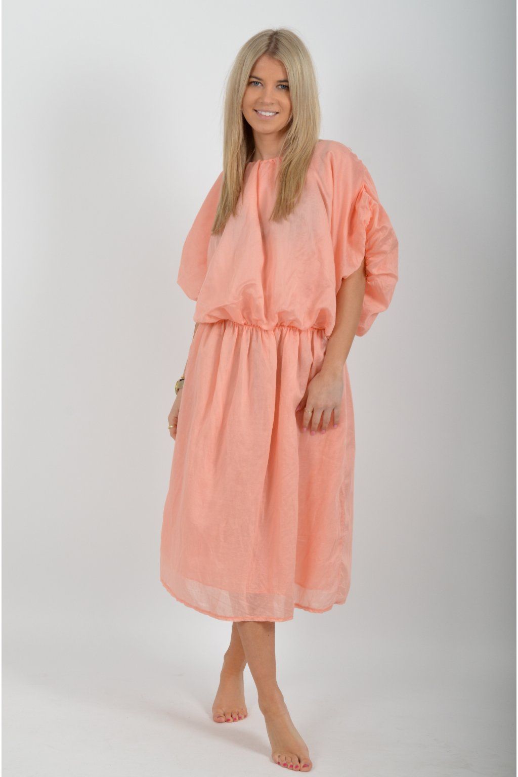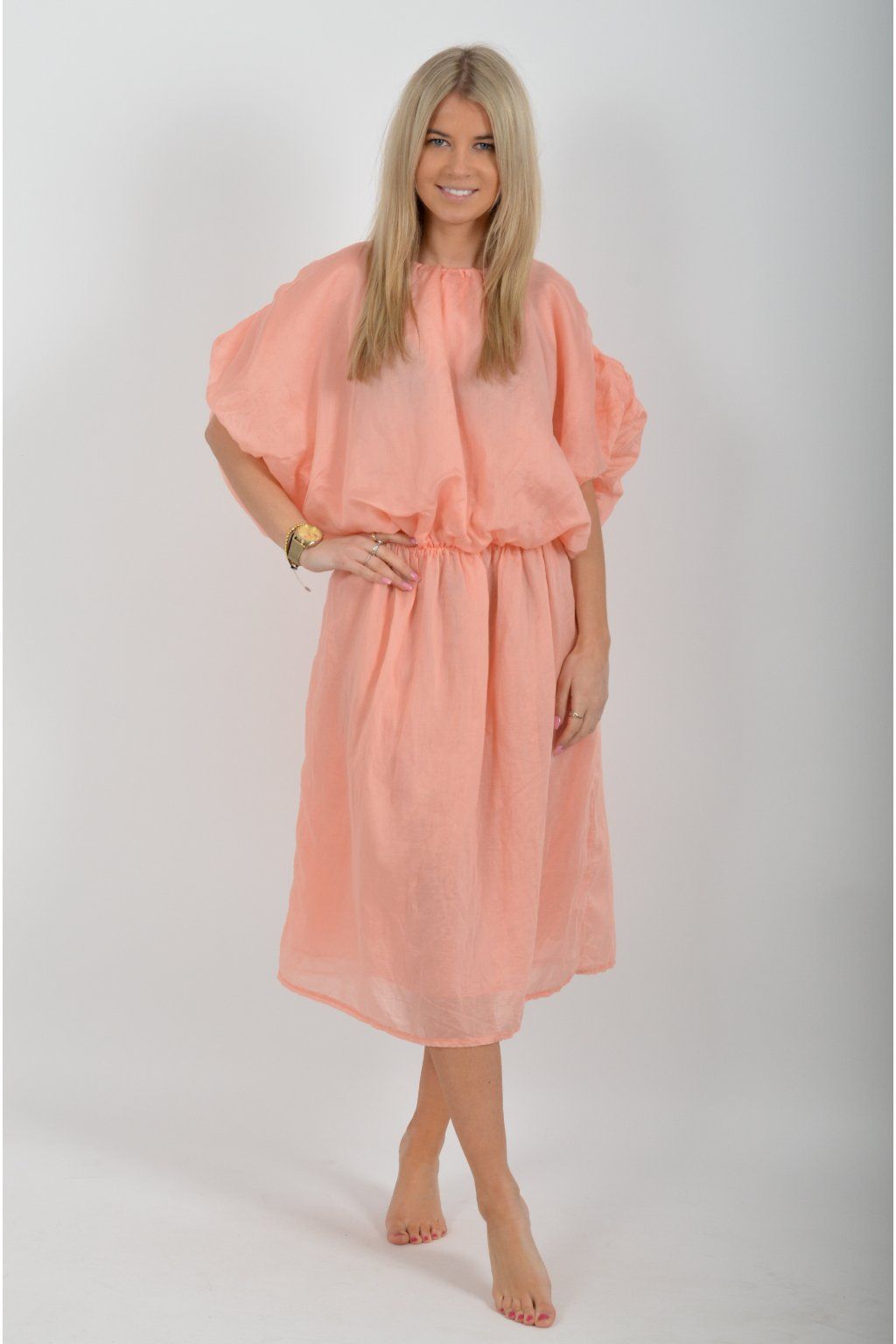 Jednobarevné dlouhé šaty vyrobené z velice odlehčeného materiálu. V pase a na konci rukávků mají šaty zapracované gumy. Jsou vhodné na volnočasové i společenské události. Materiál je mačkavý.