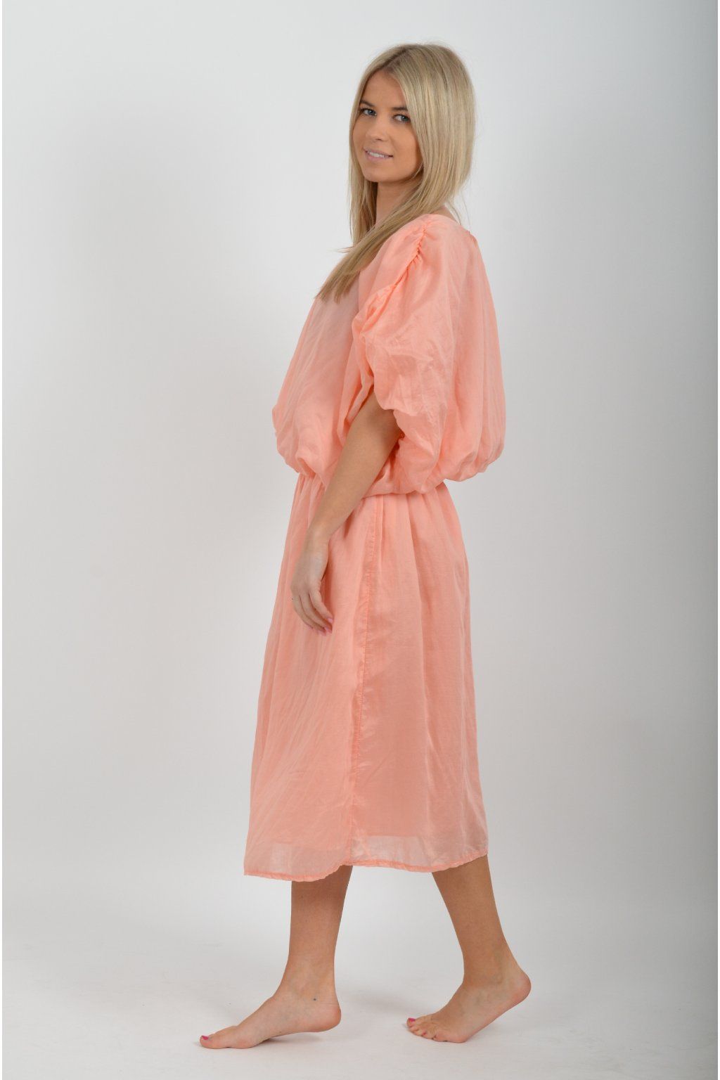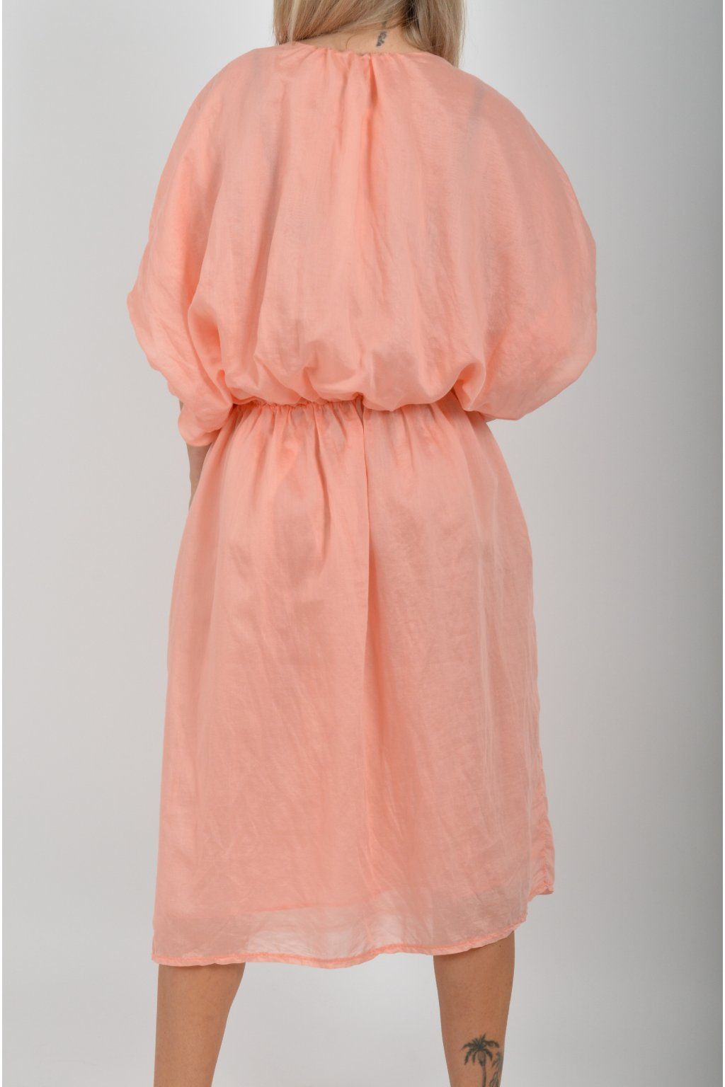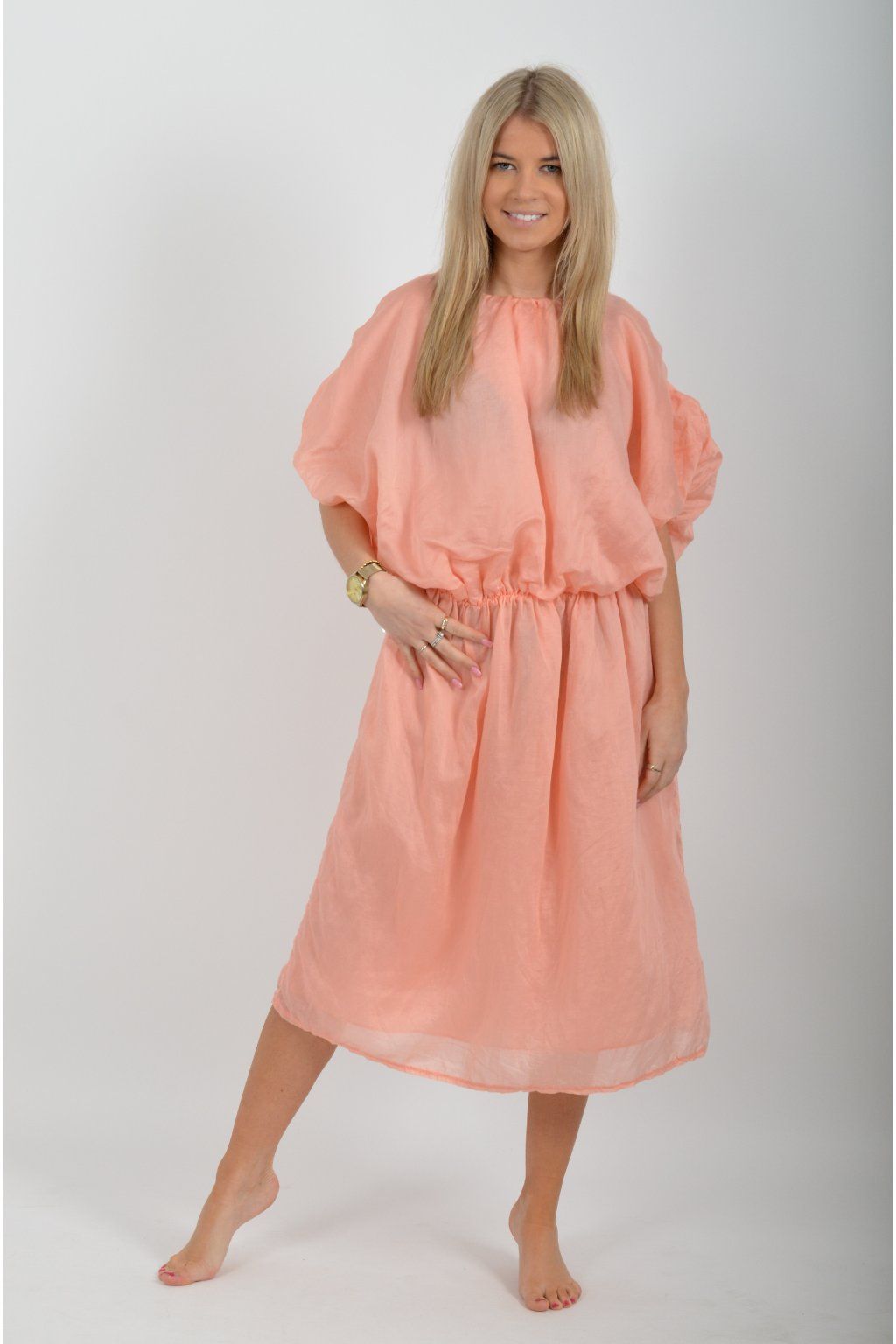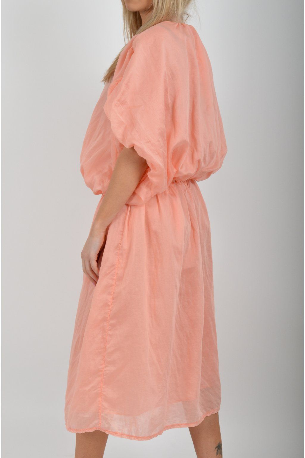 Jednobarevné dlouhé šaty vyrobené z velice odlehčeného materiálu. V pase a na konci rukávků mají šaty zapracované gumy. Jsou vhodné na volnočasové i společenské události. Materiál je mačkavý.