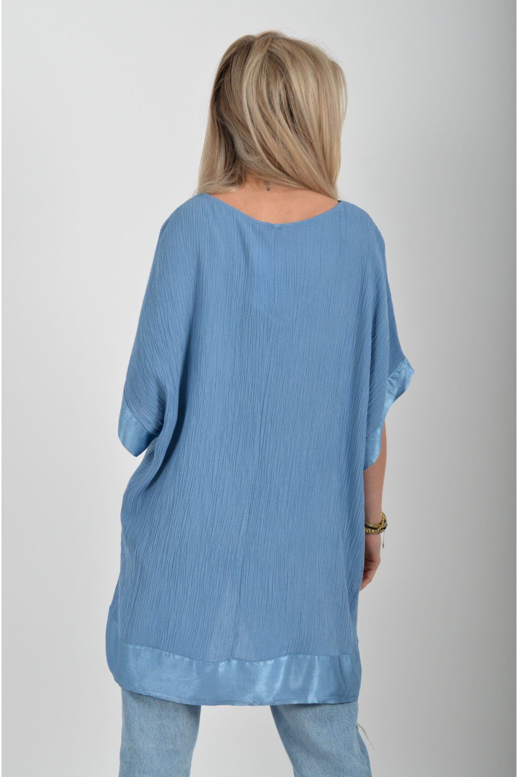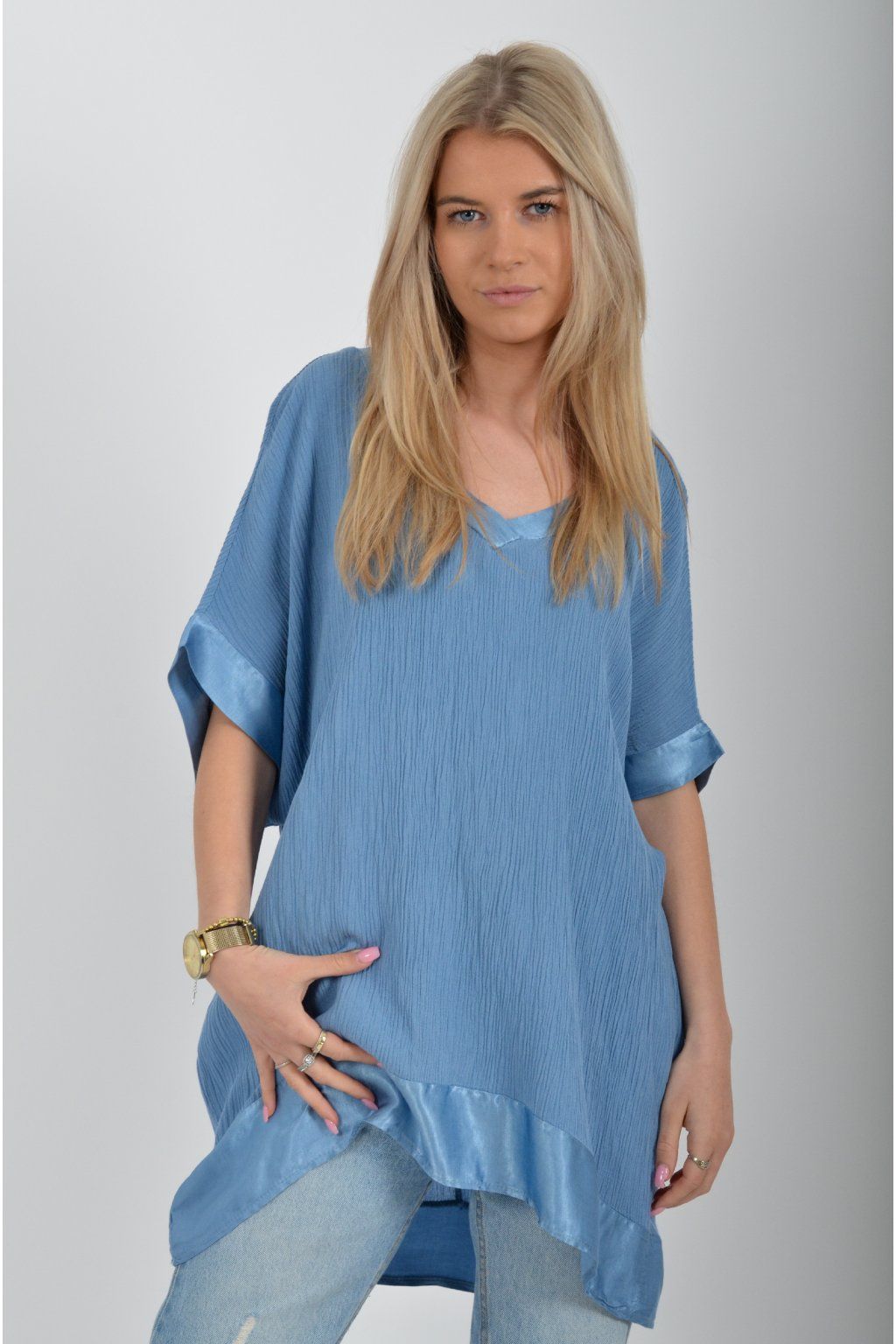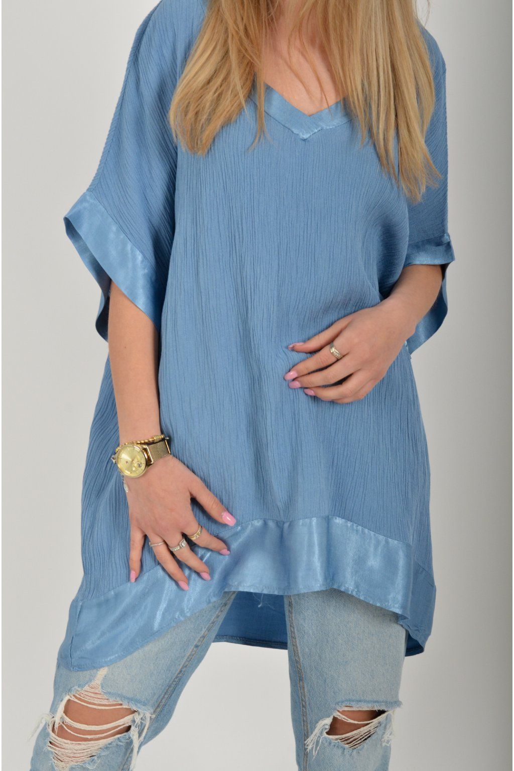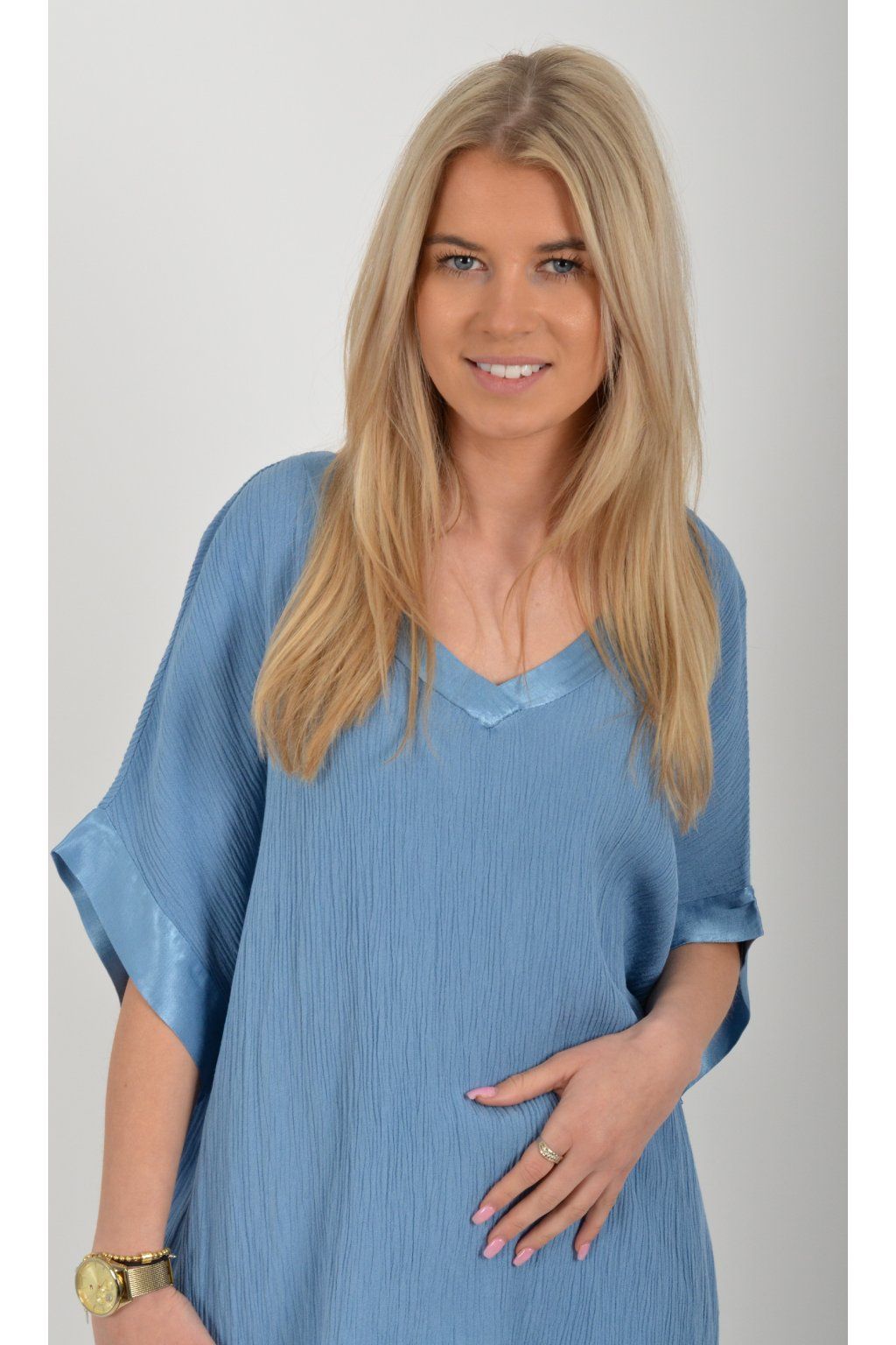 Oversize halenka s krátkým rukávem a lesklými ozdobnými lemy. Materiál halenky je lehce pružný a velice příjemný. Zadní část halenky je delší než přední.