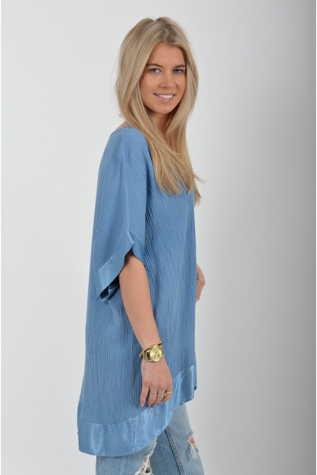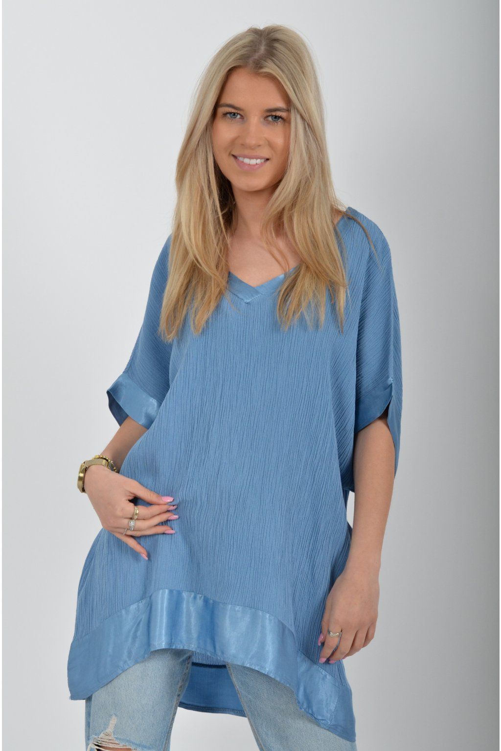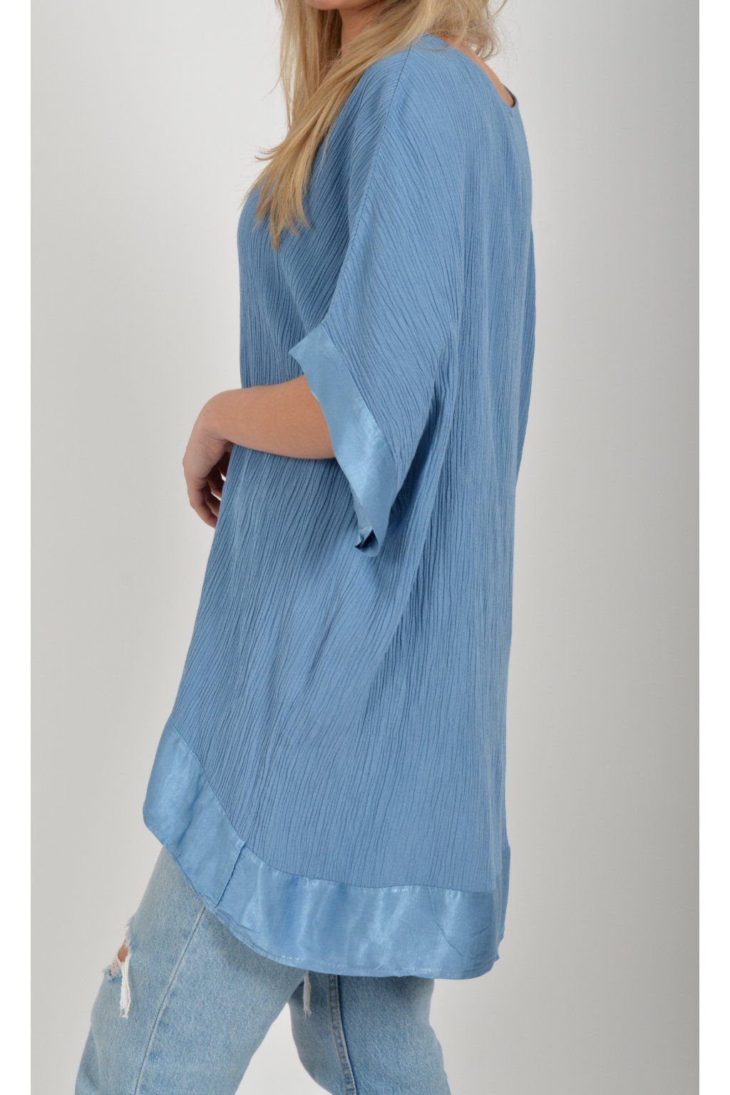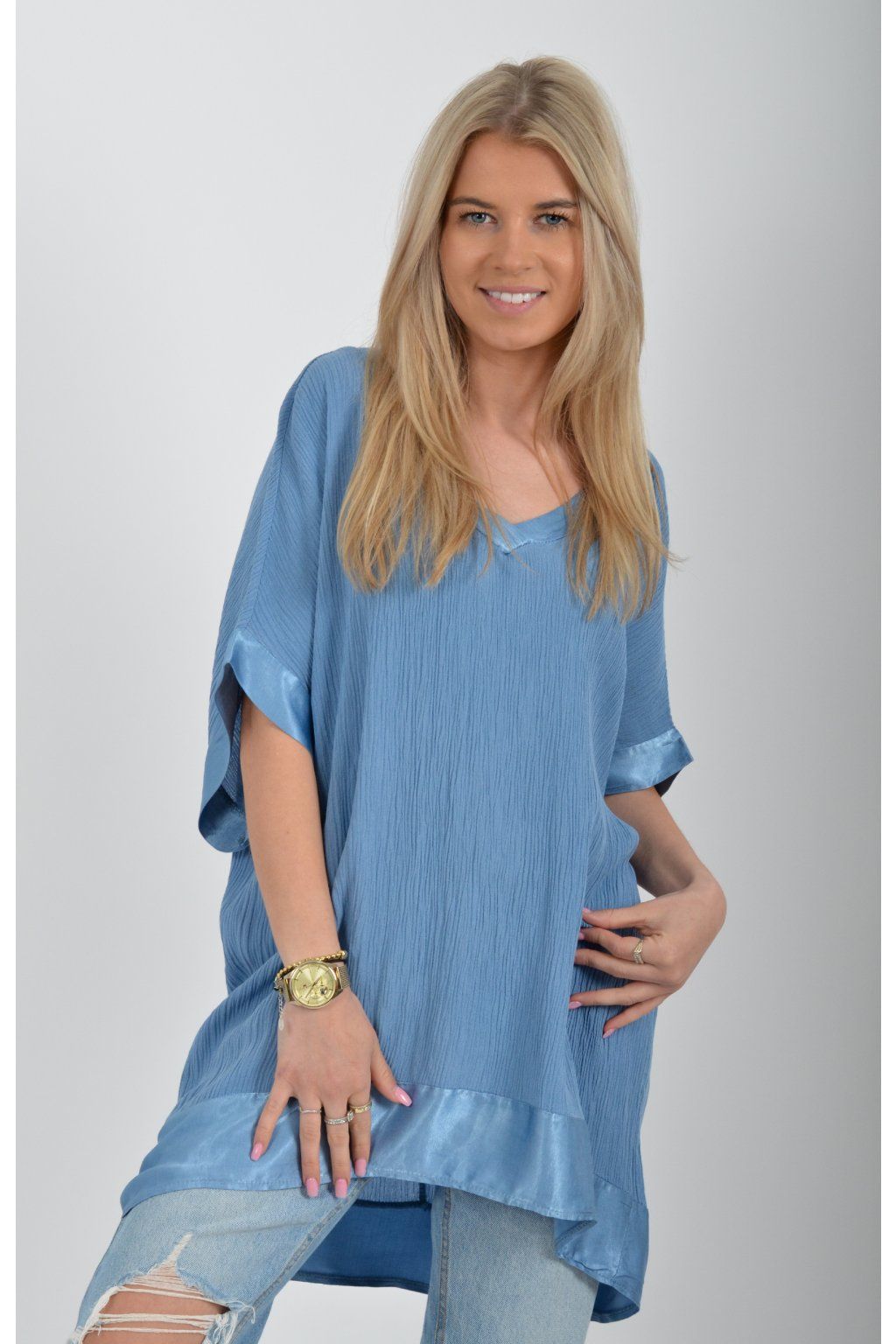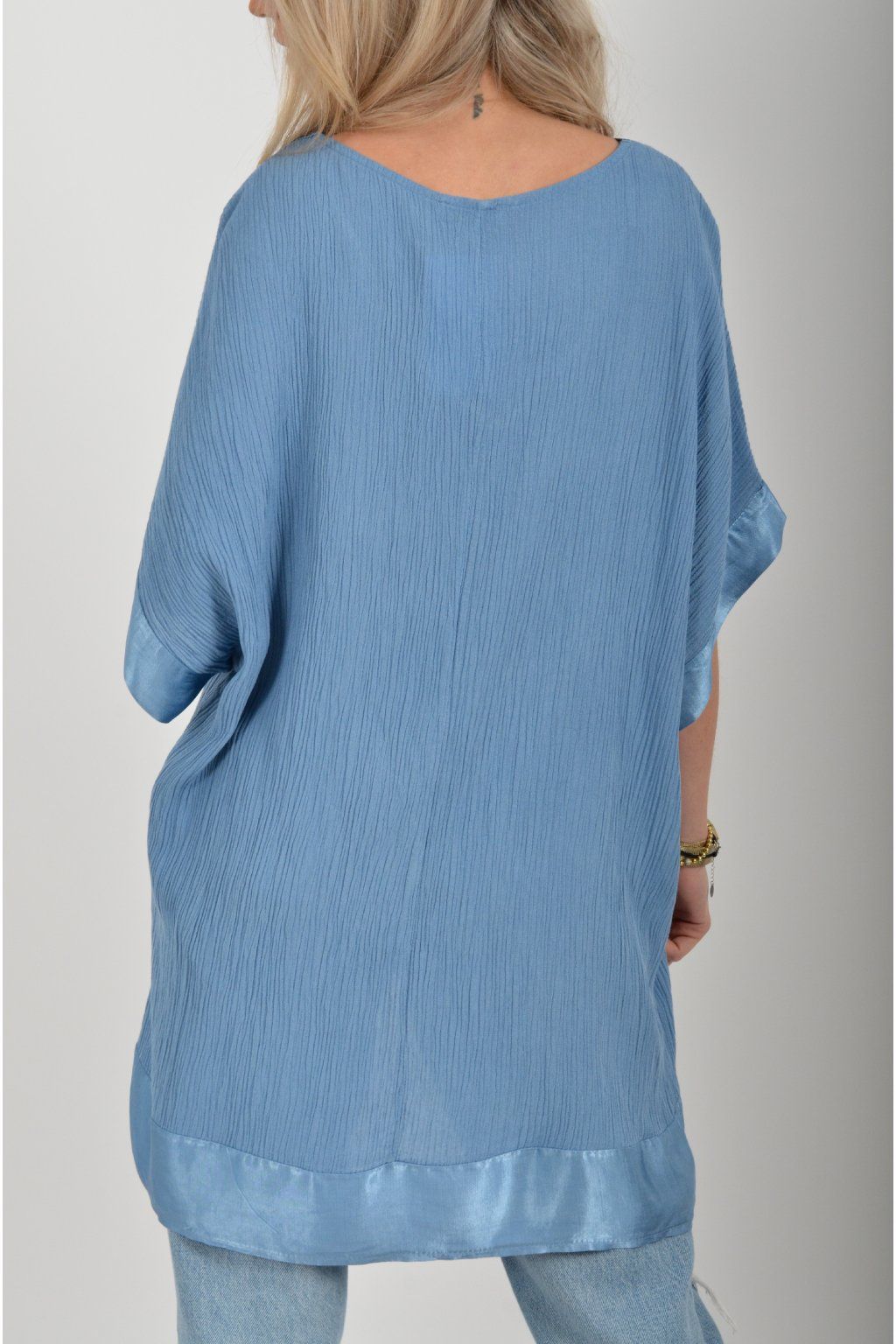 Oversize halenka s krátkým rukávem a lesklými ozdobnými lemy. Materiál halenky je lehce pružný a velice příjemný. Zadní část halenky je delší než přední.