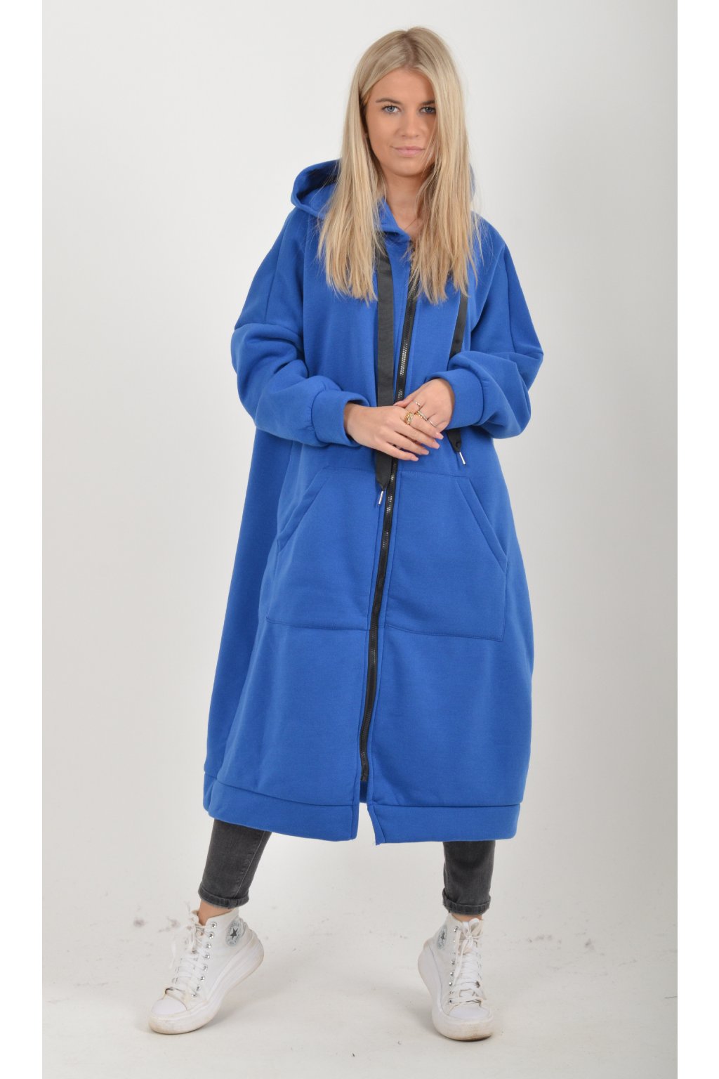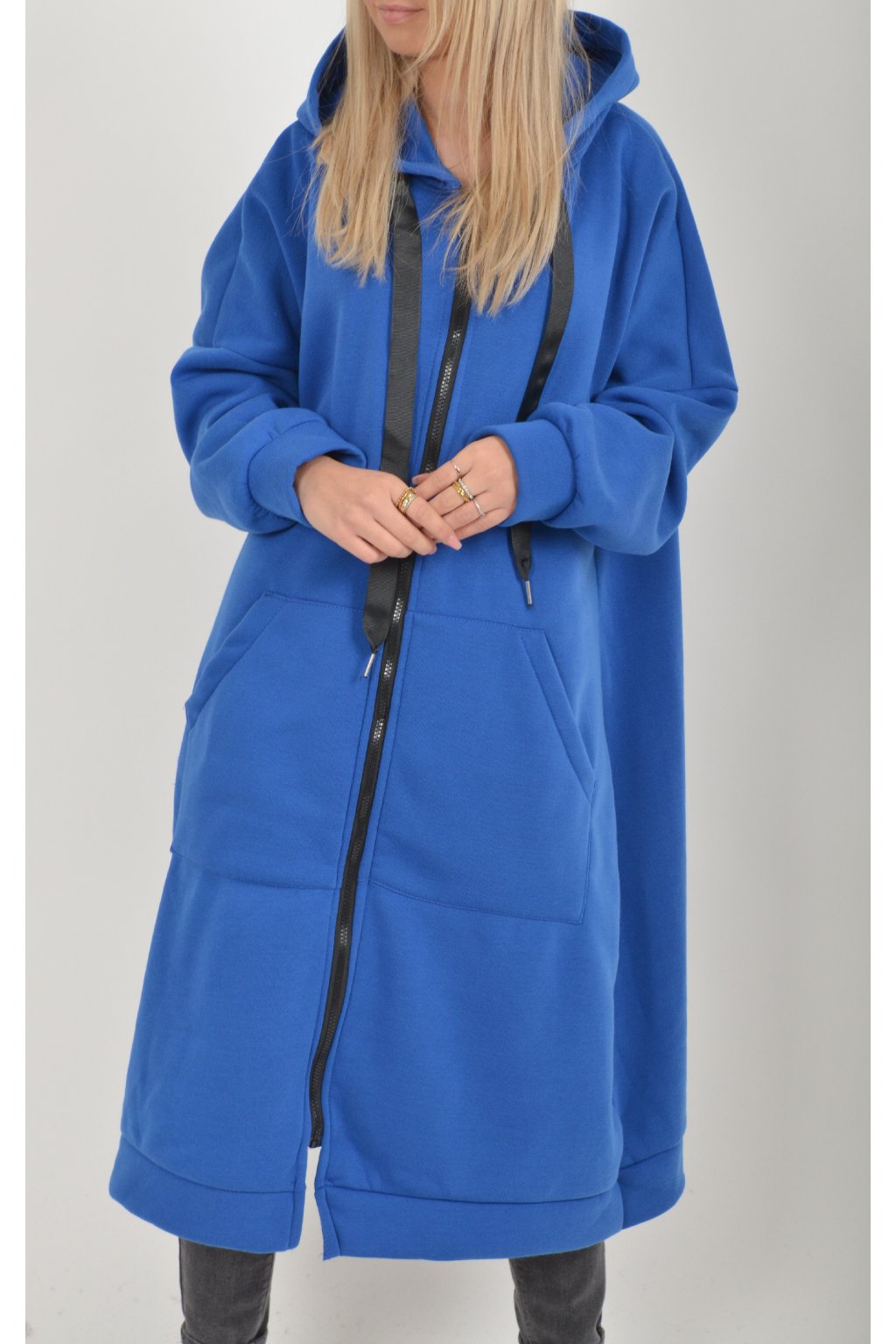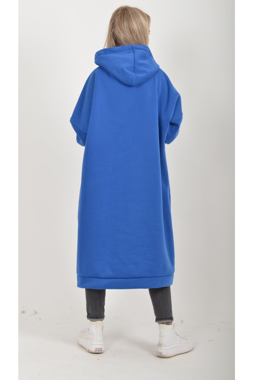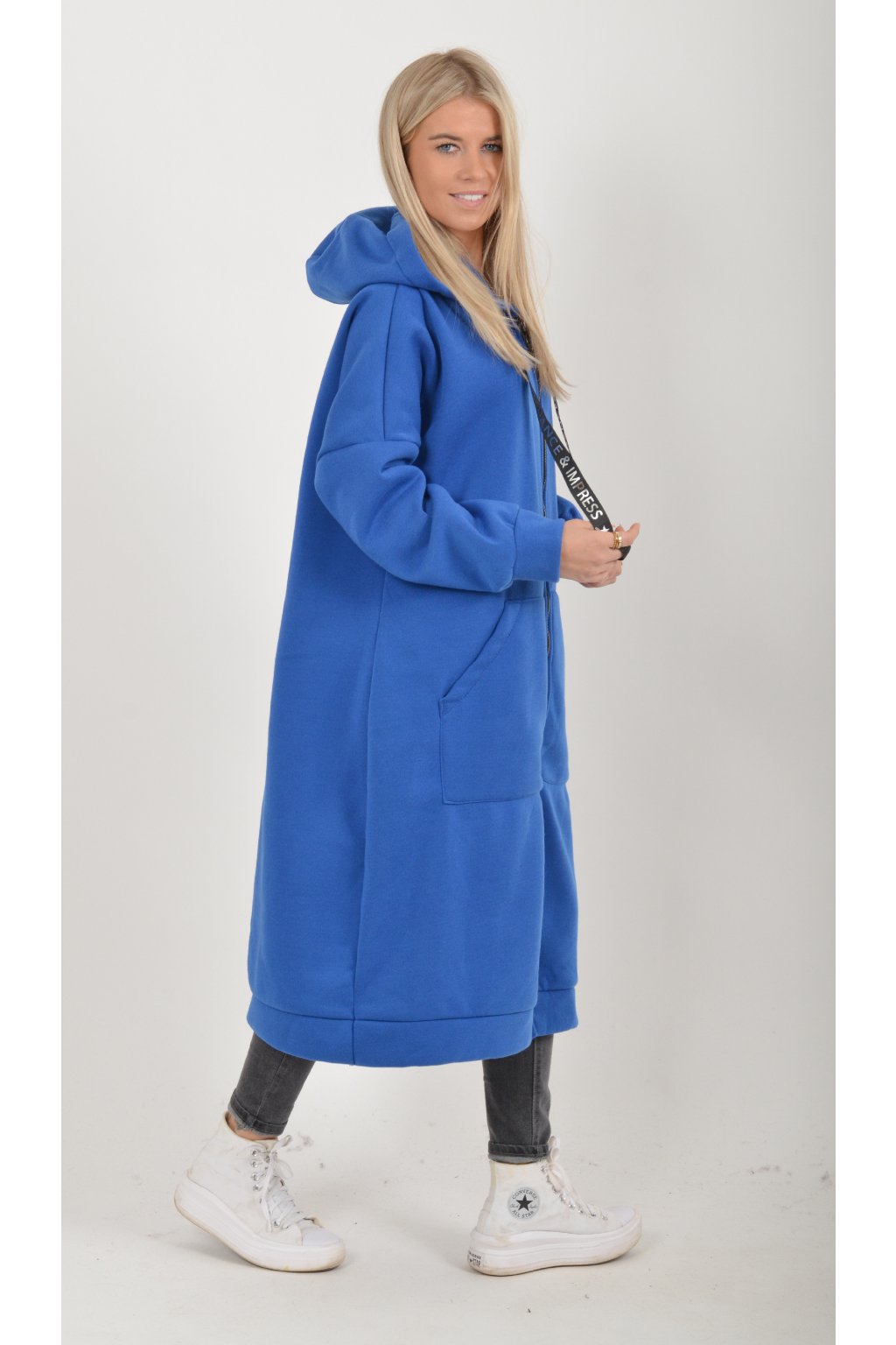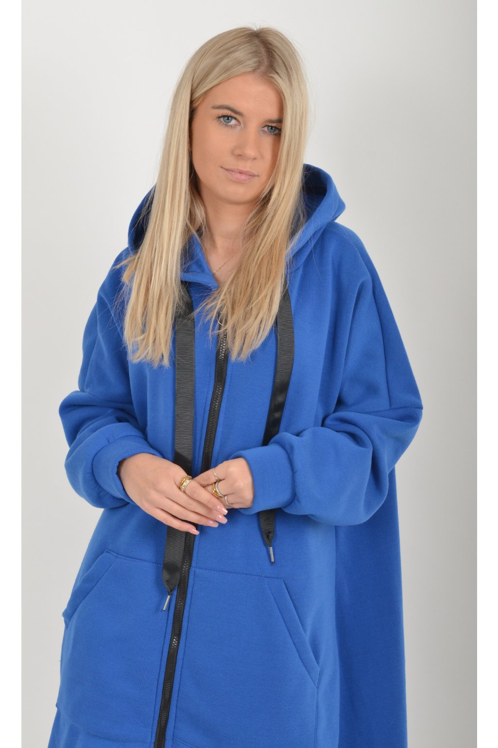 Maxi mikina s kapucí, dlouhým rukávem a klokaní kapsou. Je vyrobena z velice příjemného a kvalitního materiálu.