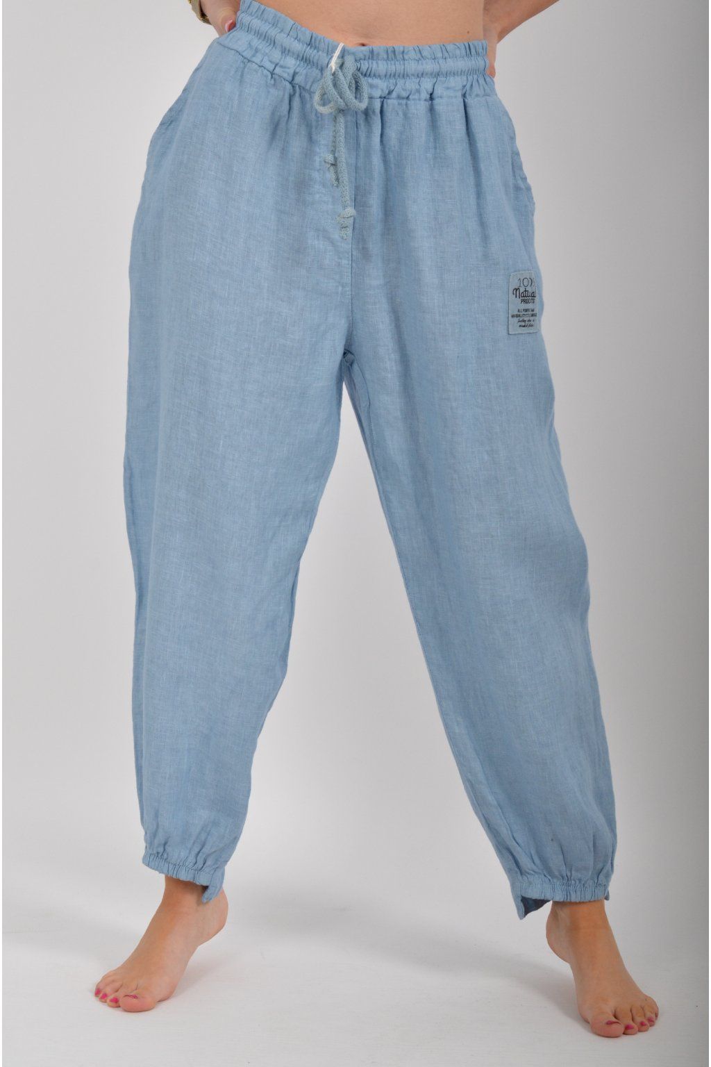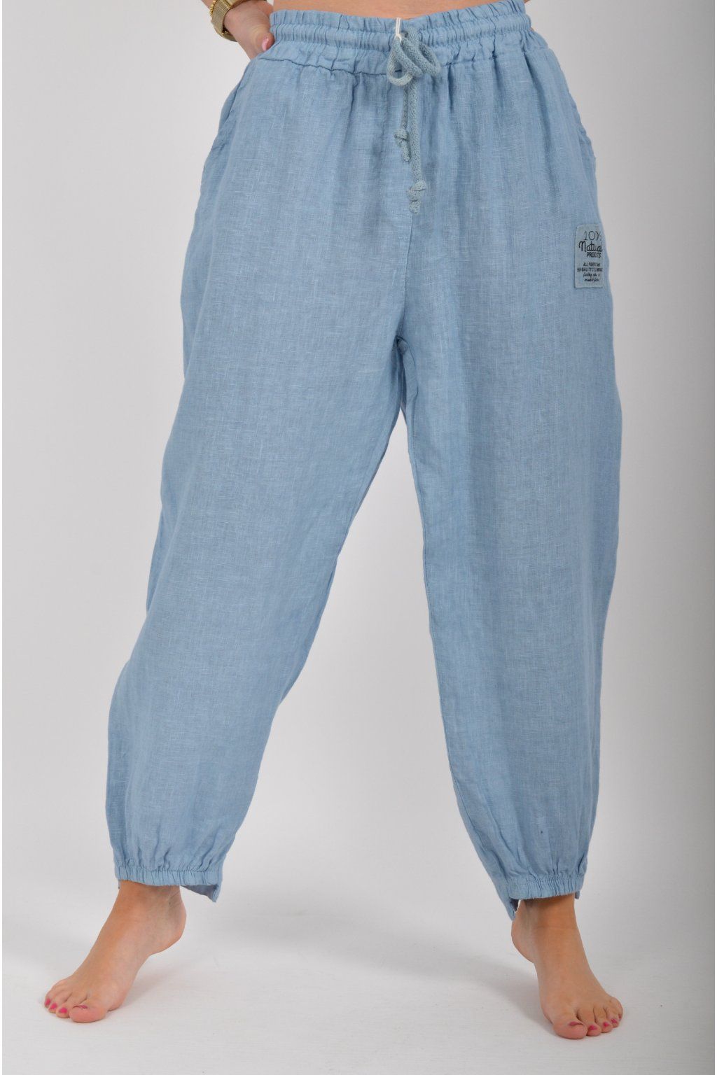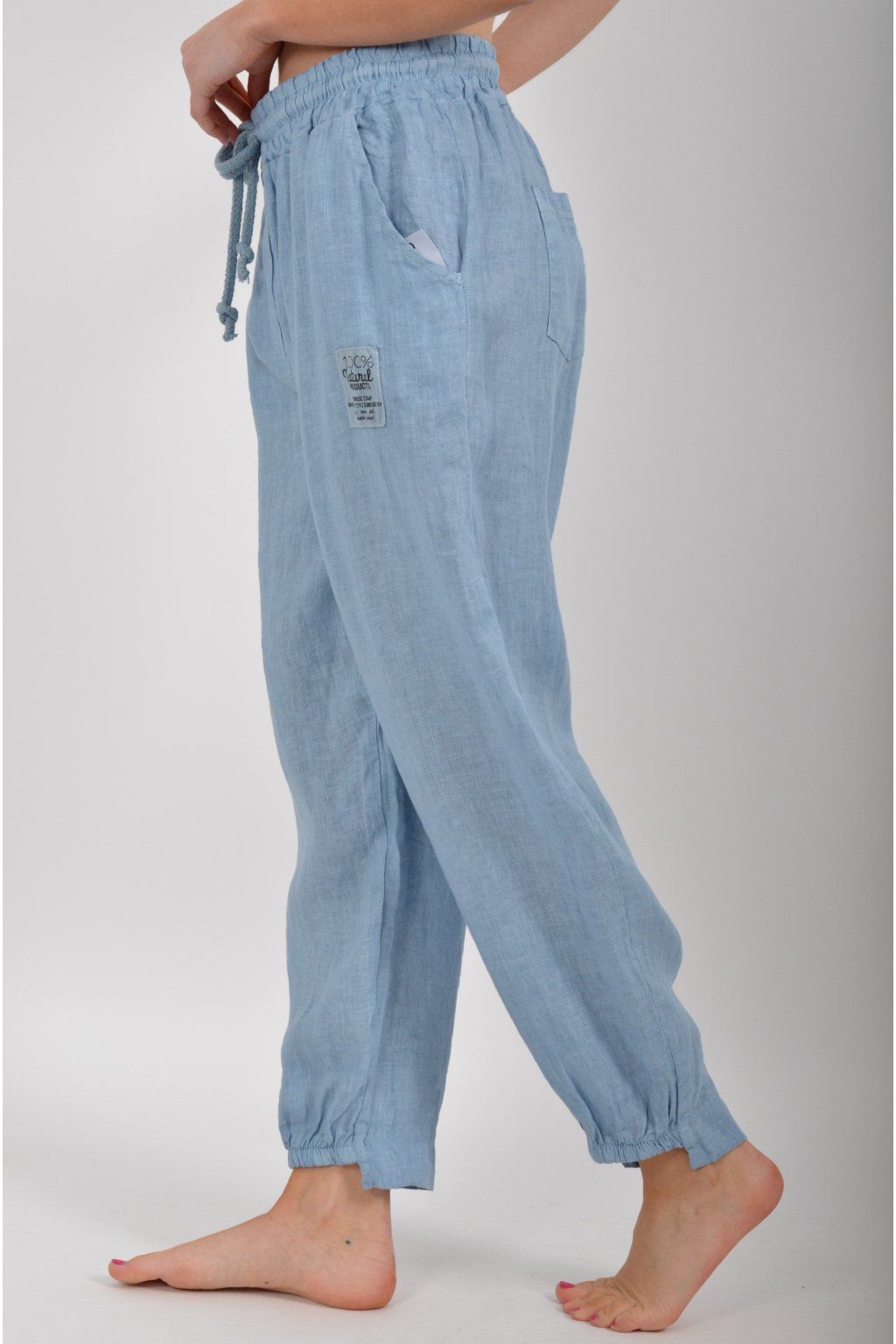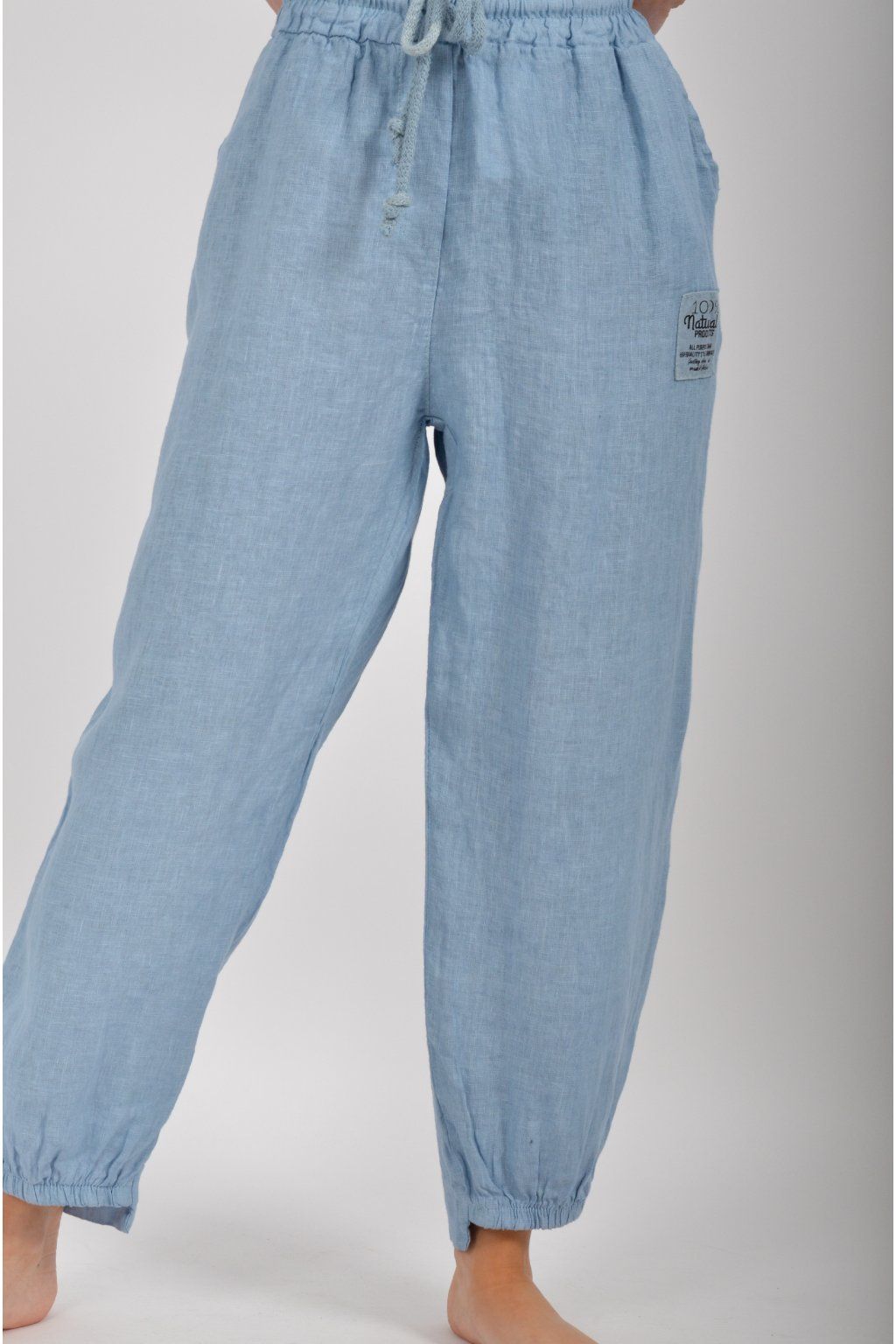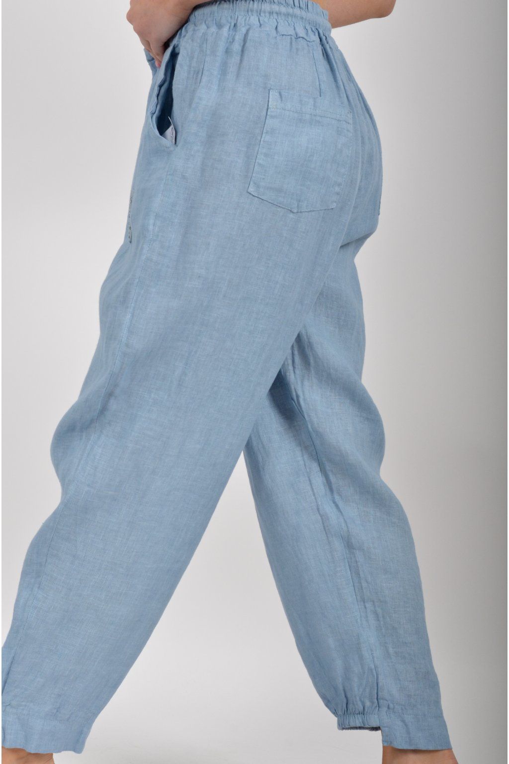 Lněné kalhoty s kapsami na bocích. Jsou vhodné pro každodenní nošení. V pase je zapracovaná guma a tkanice pro libovolné stažení.