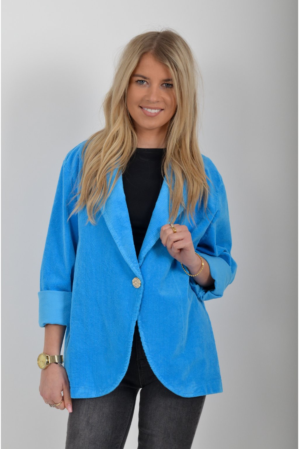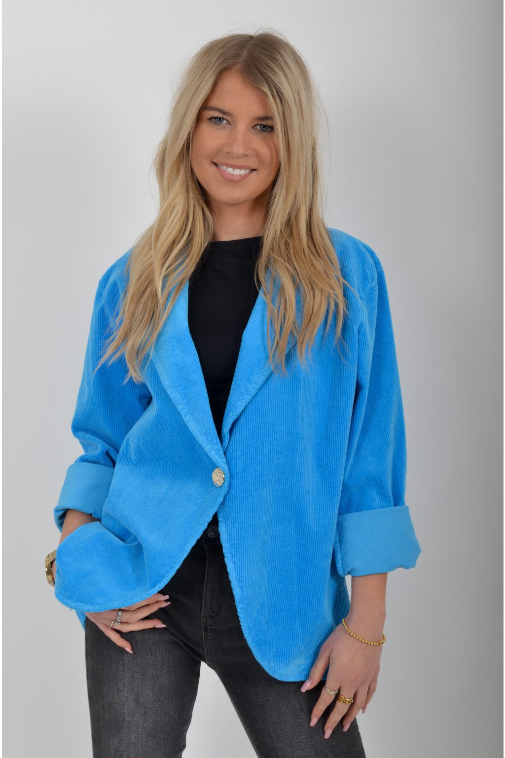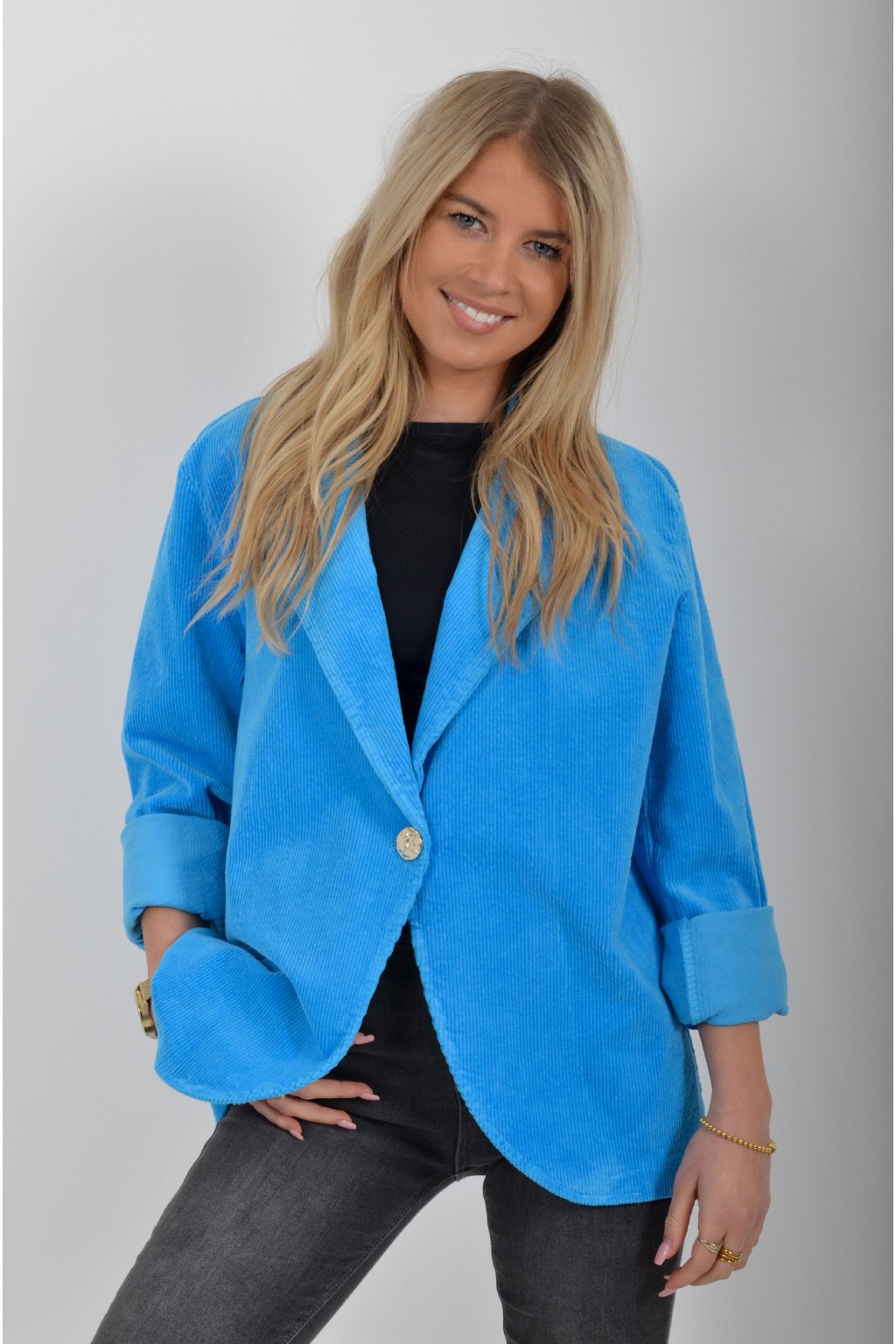 Elegantní manšestrové sako, s dlouhým rukávem bez kapes. Je vyrobené z velice příjemného a kvalitního materiálu.