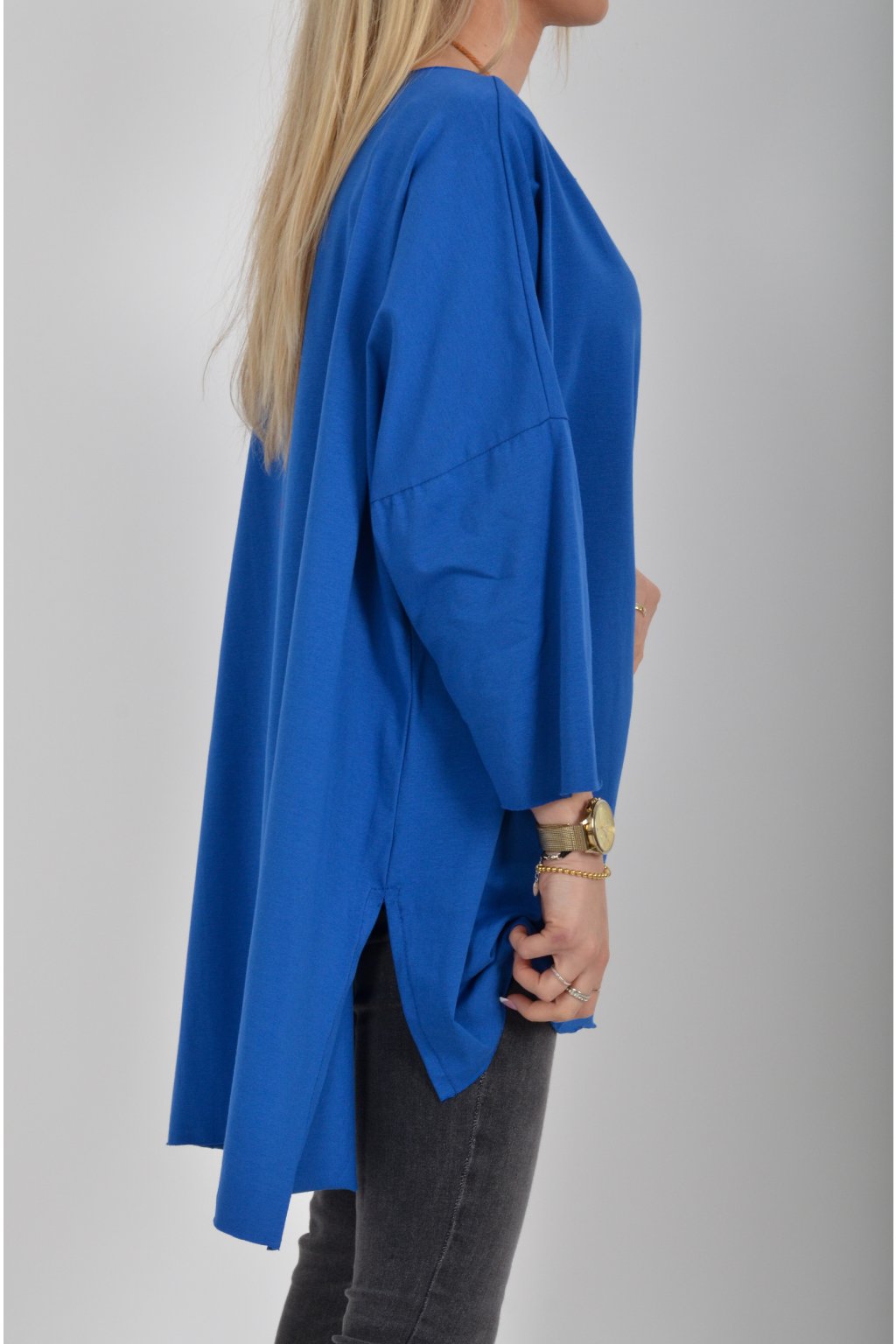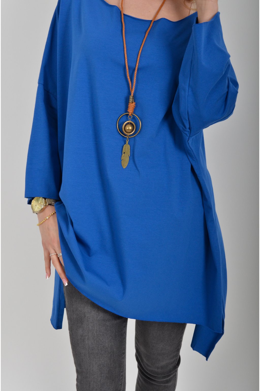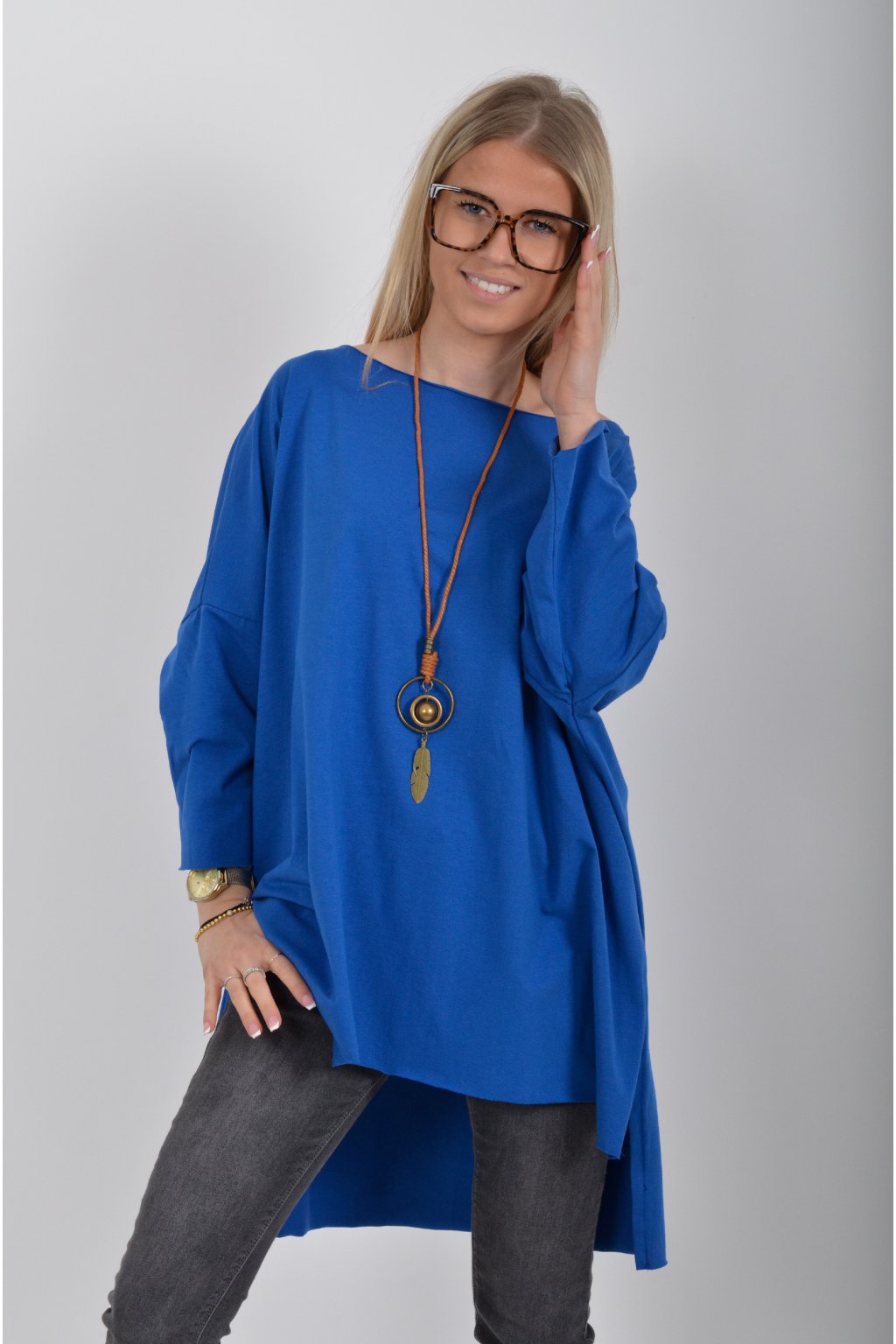 Jednobarevné oversize tričko s 3/4rukávem vyrobené z velice lehké, měkké a příjemné bavlny. Zadní část trička je delší než přední. K tričku je náhrdelník jako dárek.