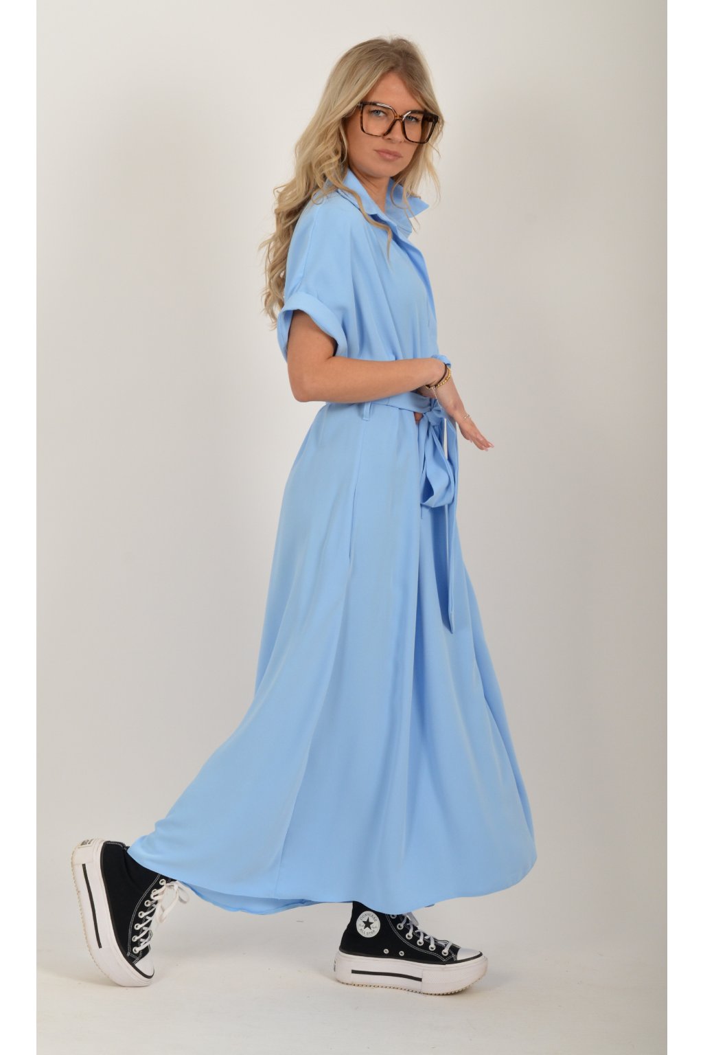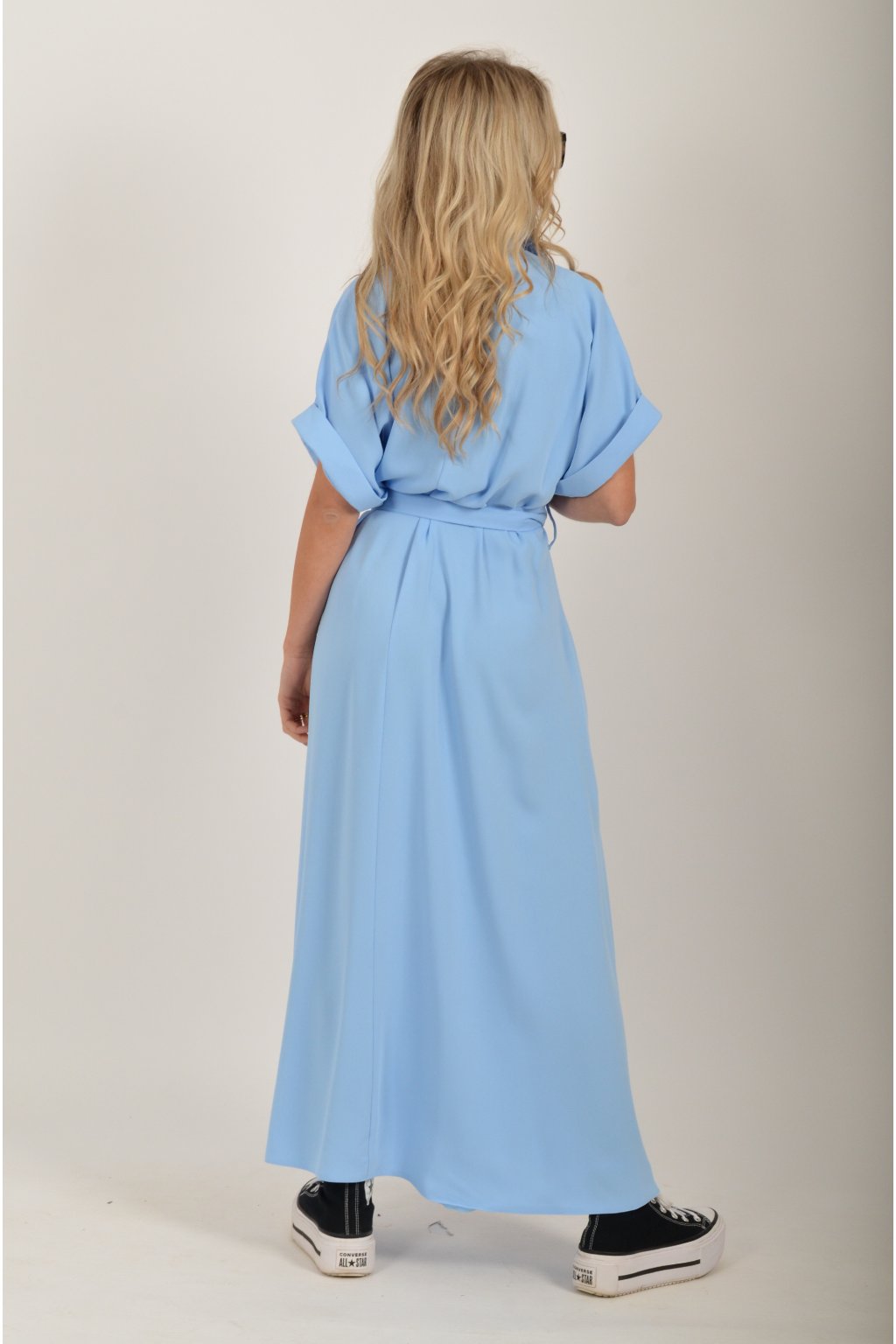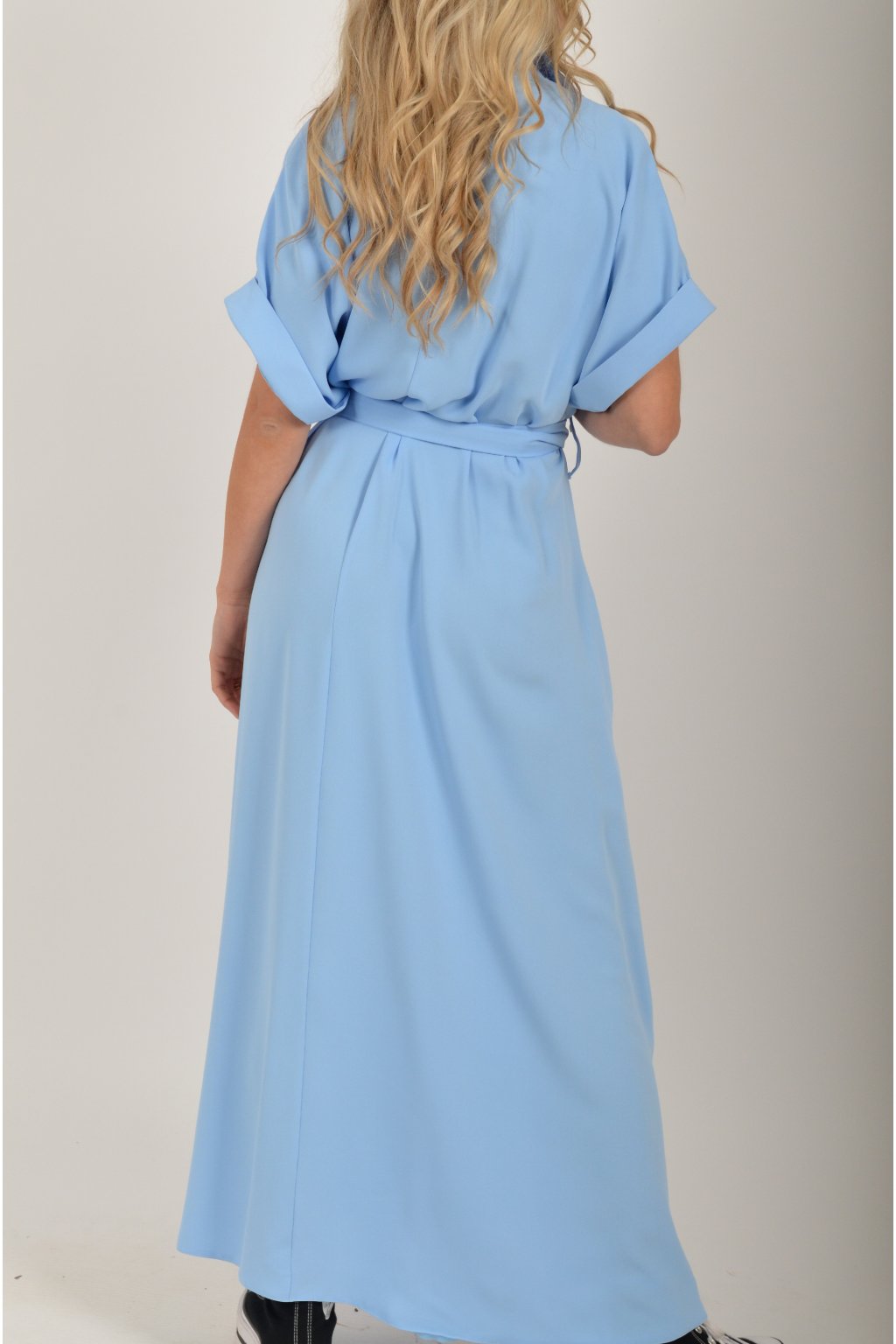Luxusní šaty od značky La Furia. Mají košilový áčkový střih s rozevlátou sukní, která je v zadní části mírně delší. Šaty mají na bocích kapsy. Jsou vyrobené z velice příjemného prémiového materiálu.