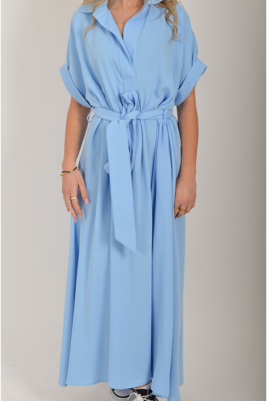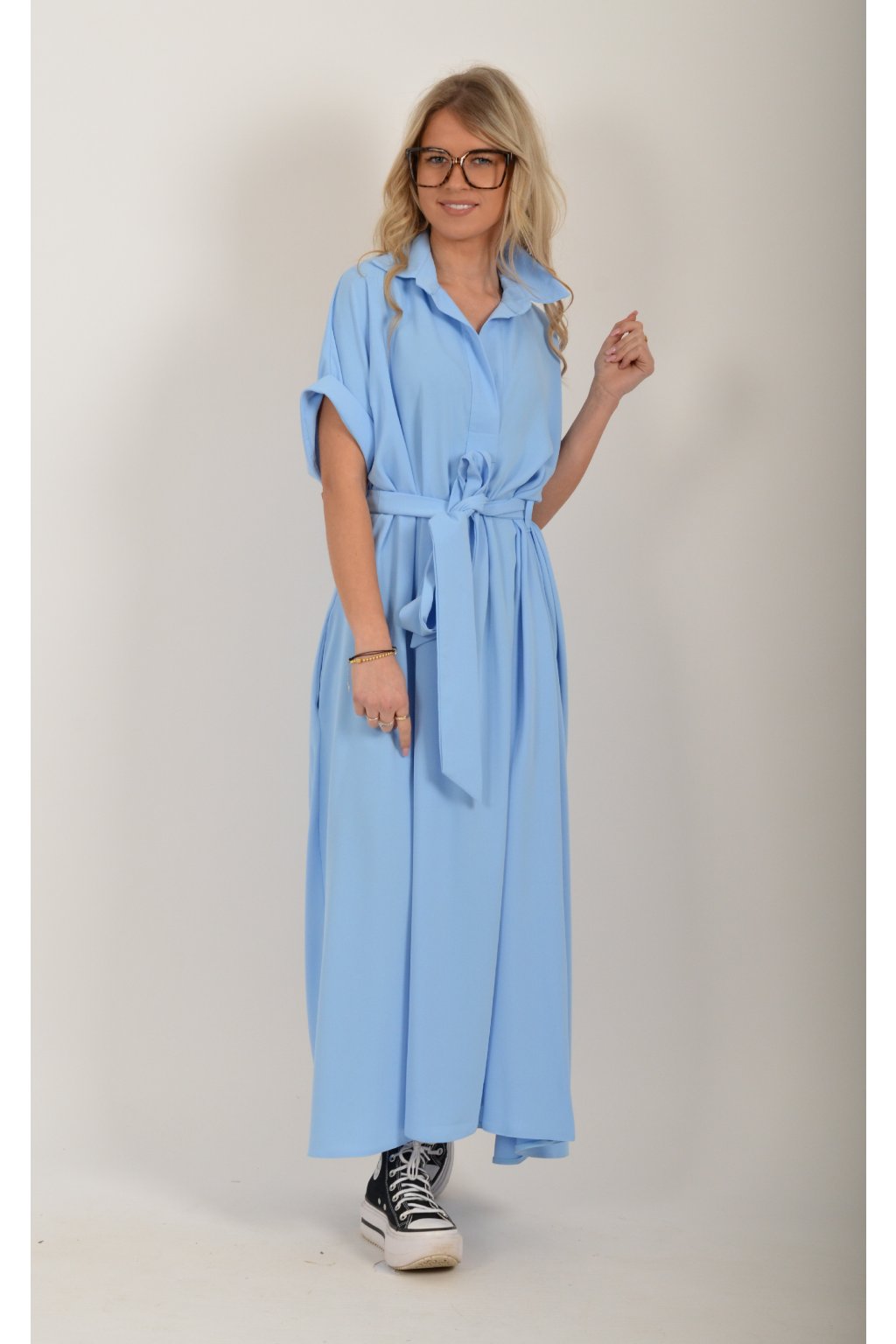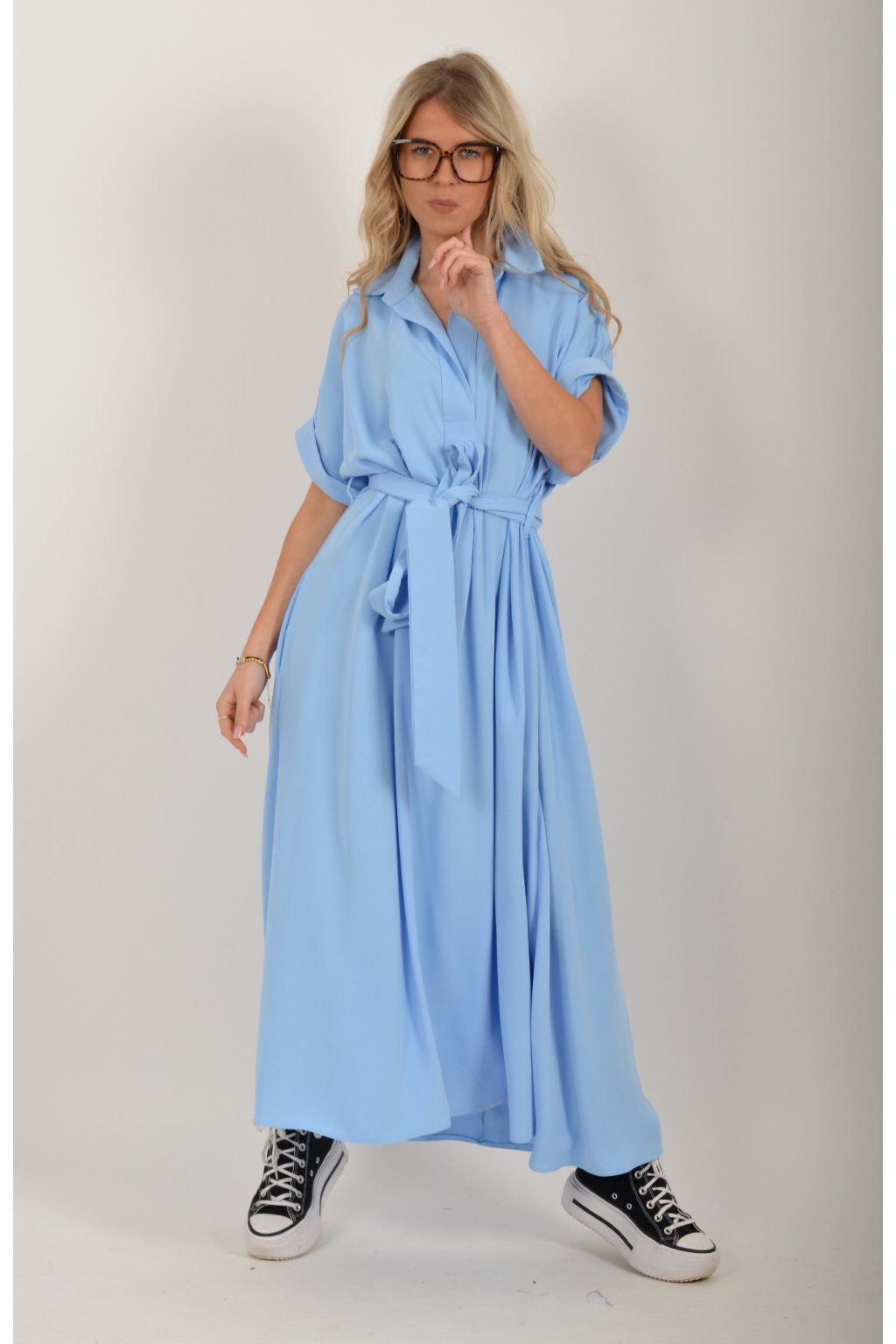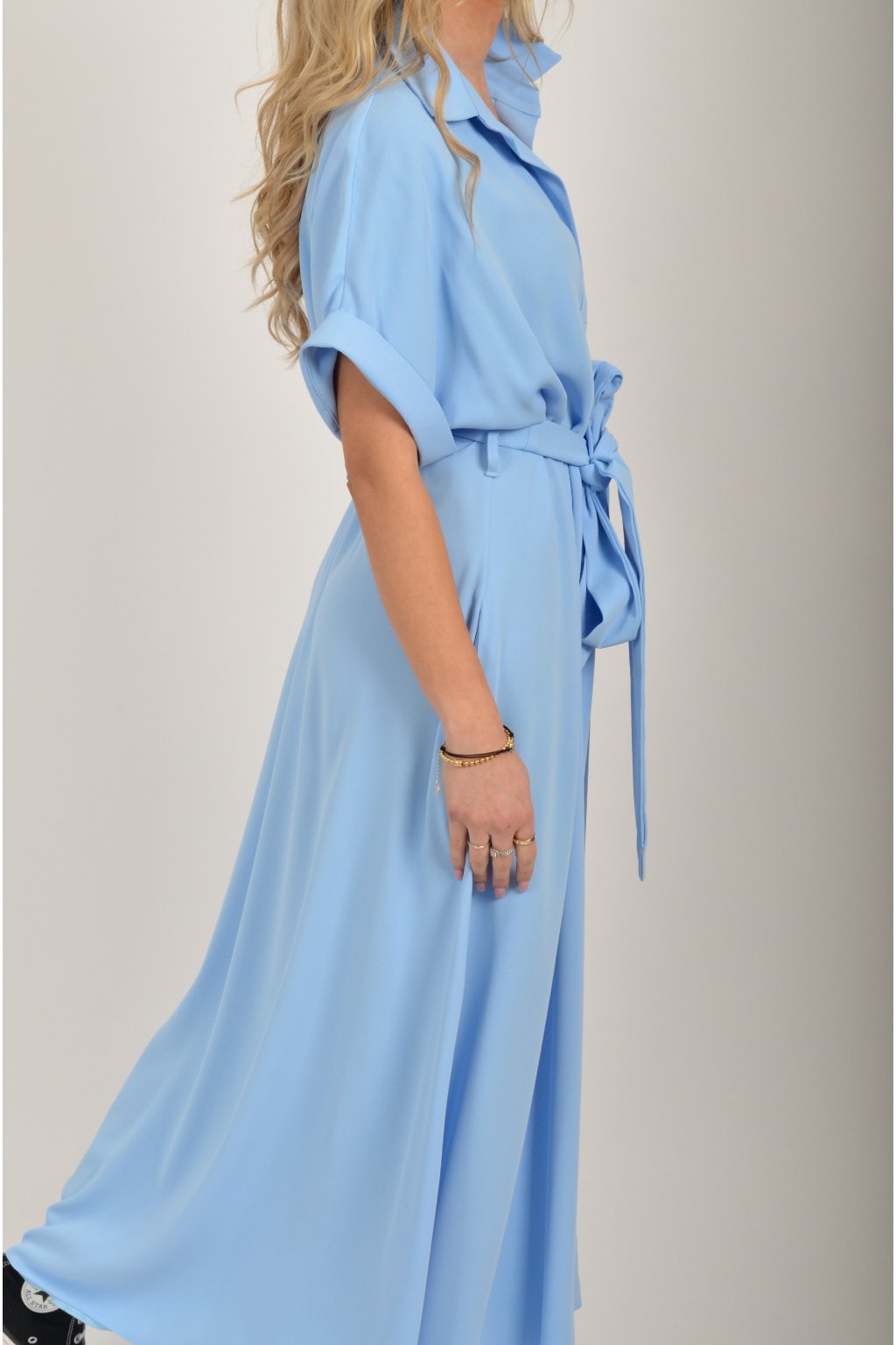 Luxusní šaty od značky La Furia. Mají košilový áčkový střih s rozevlátou sukní, která je v zadní části mírně delší. Šaty mají na bocích kapsy. Jsou vyrobené z velice příjemného prémiového materiálu.