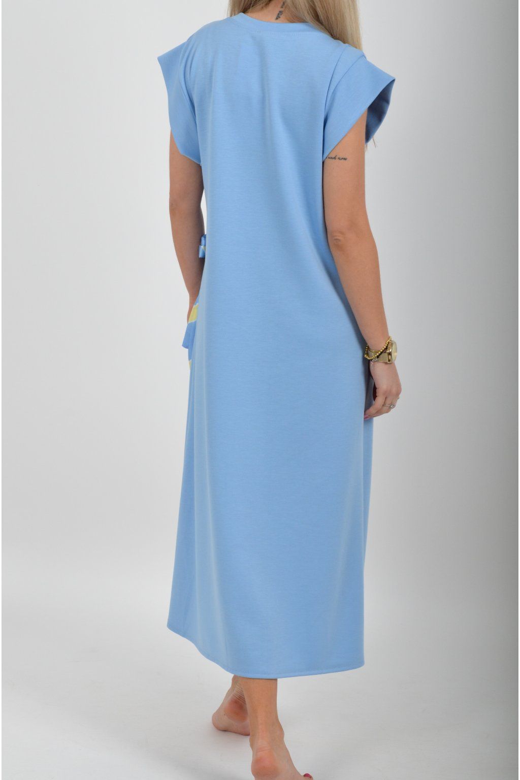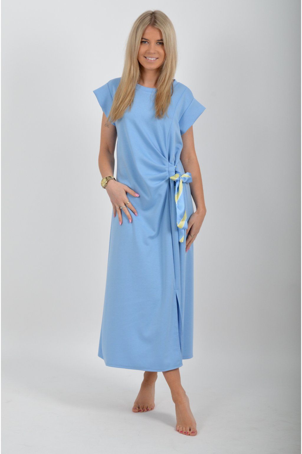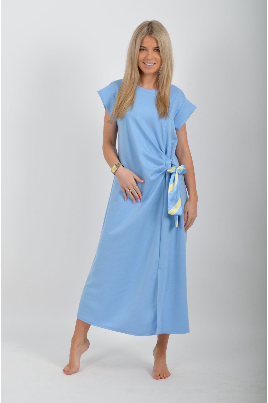 Dlouhé šaty vyrobené z velice příjemného máslového materiálu. Mají od pasu, který je lehce projmutý áčkový střih. V pase na boku mají "vázání" pomocí kterého lze šaty libovolně stáhnout aby dobře seděli na postavě. Ve spodní části májí rozparek a nemají kapsy.
