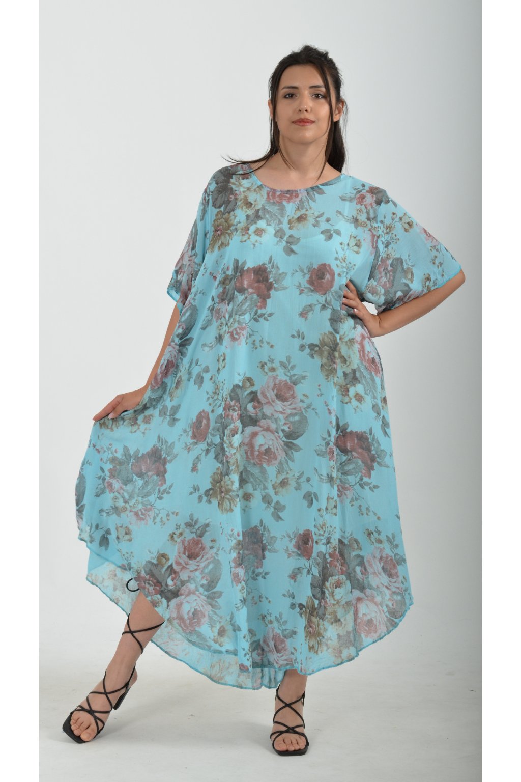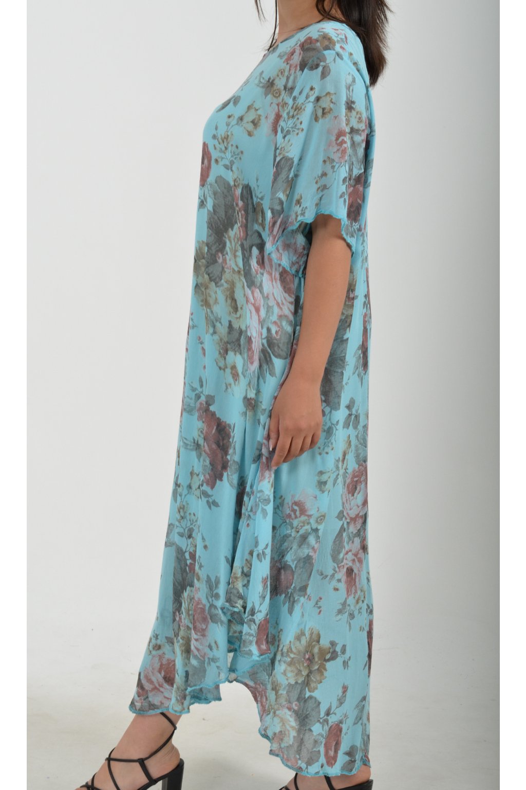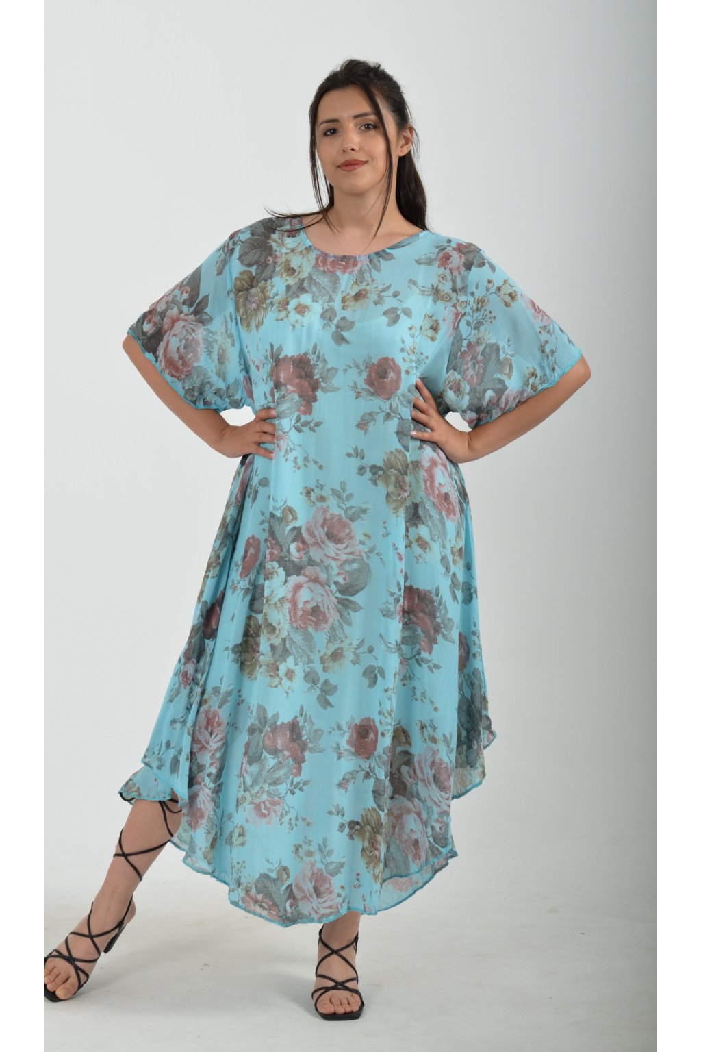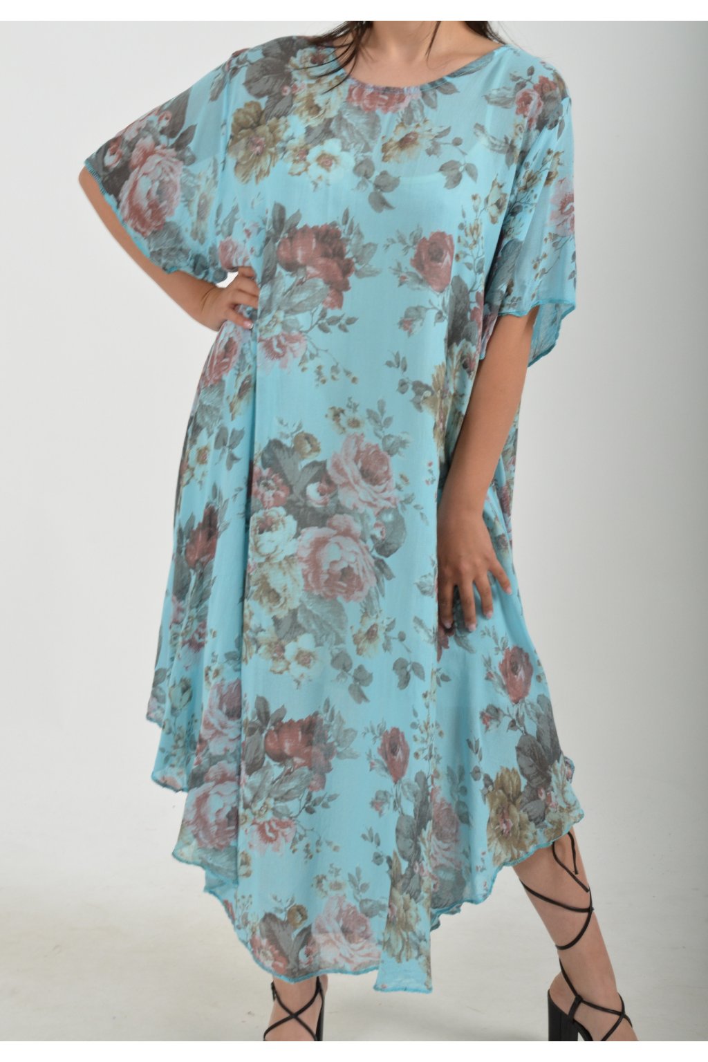 Vzorované šaty s krátkým rukávem áčkového střihu, vyrobené z velice příjemného a vzdušného materiálu. Šaty mají podšívku, díky které jsou zcela neprůhledné. Šaty jsou bez kapes.