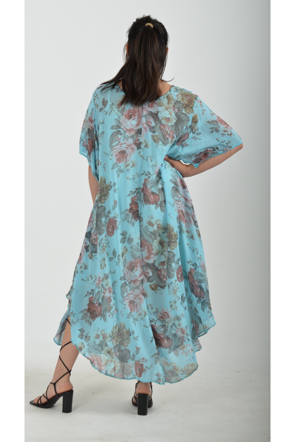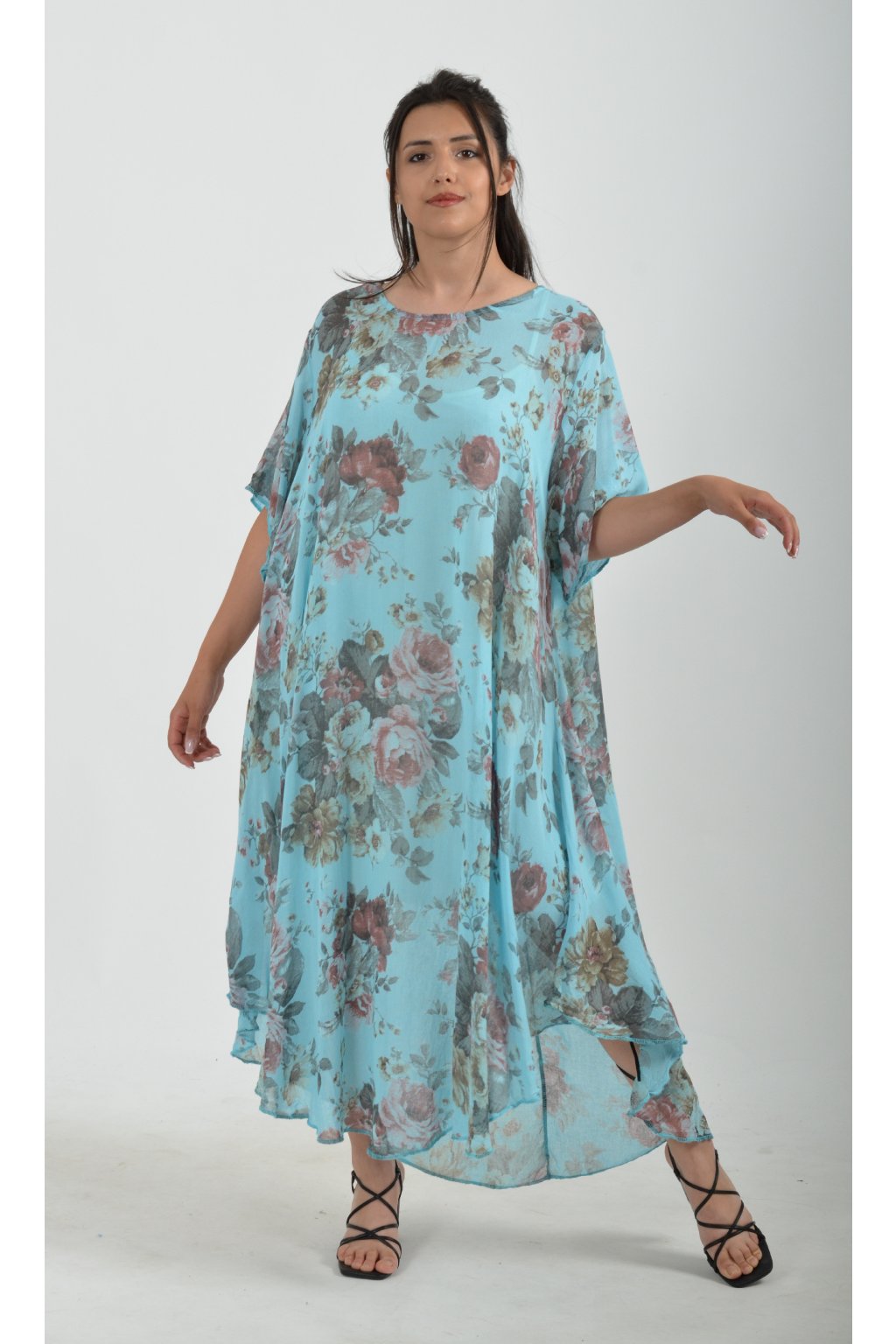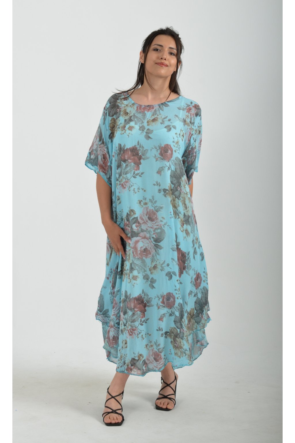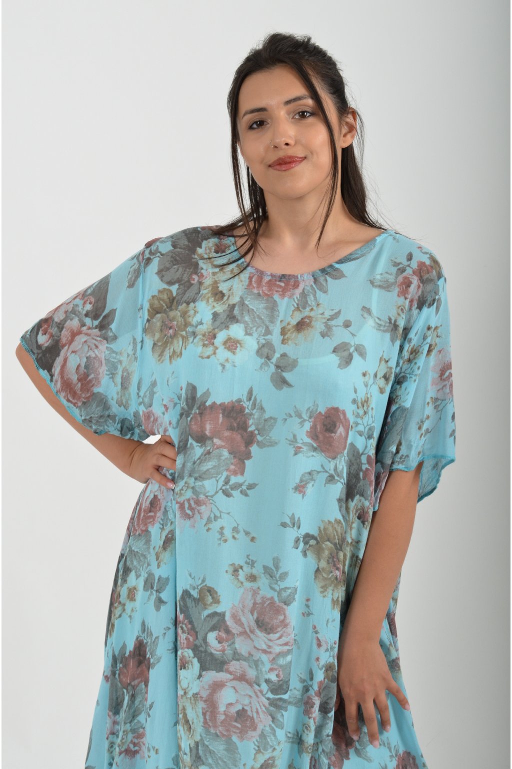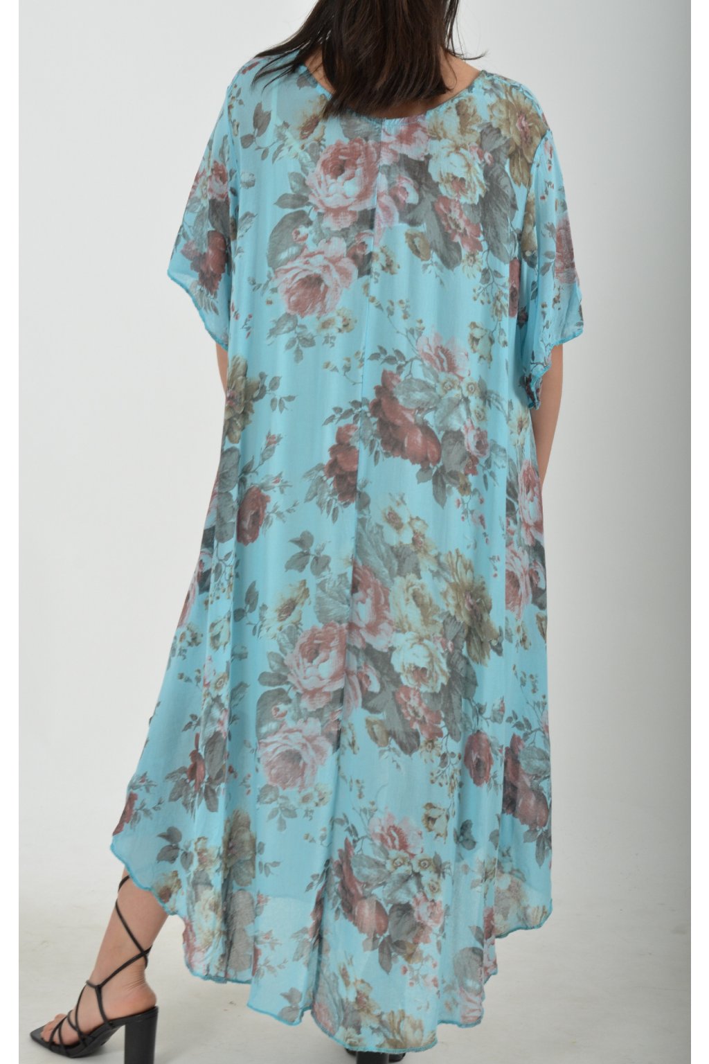 Vzorované šaty s krátkým rukávem áčkového střihu, vyrobené z velice příjemného a vzdušného materiálu. Šaty mají podšívku, díky které jsou zcela neprůhledné. Šaty jsou bez kapes.