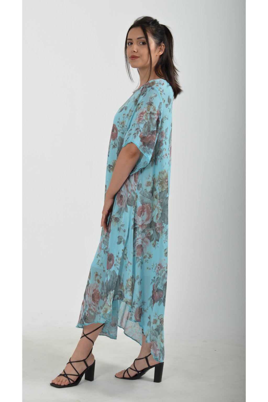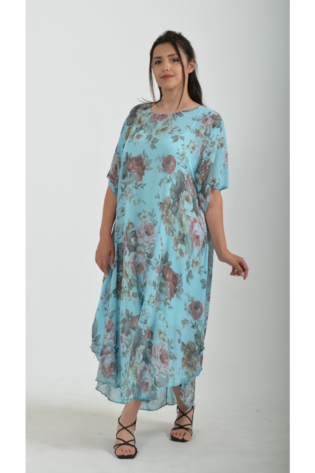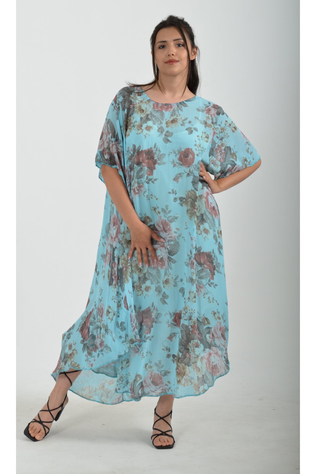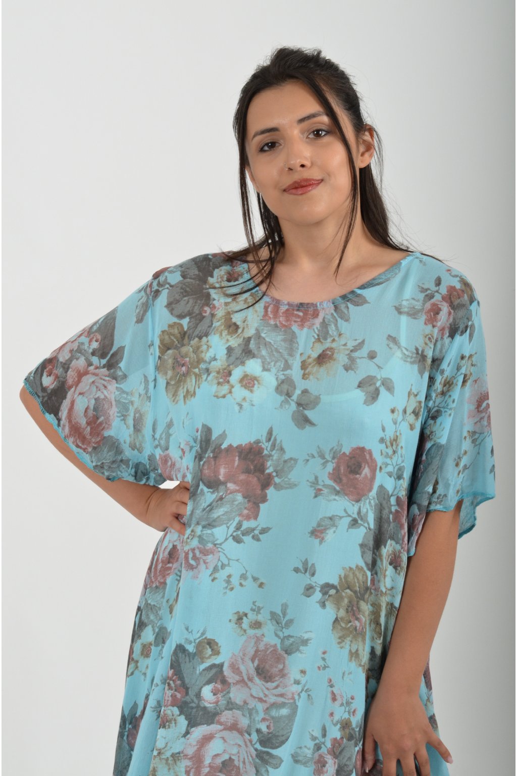 Vzorované šaty s krátkým rukávem áčkového střihu, vyrobené z velice příjemného a vzdušného materiálu. Šaty mají podšívku, díky které jsou zcela neprůhledné. Šaty jsou bez kapes.