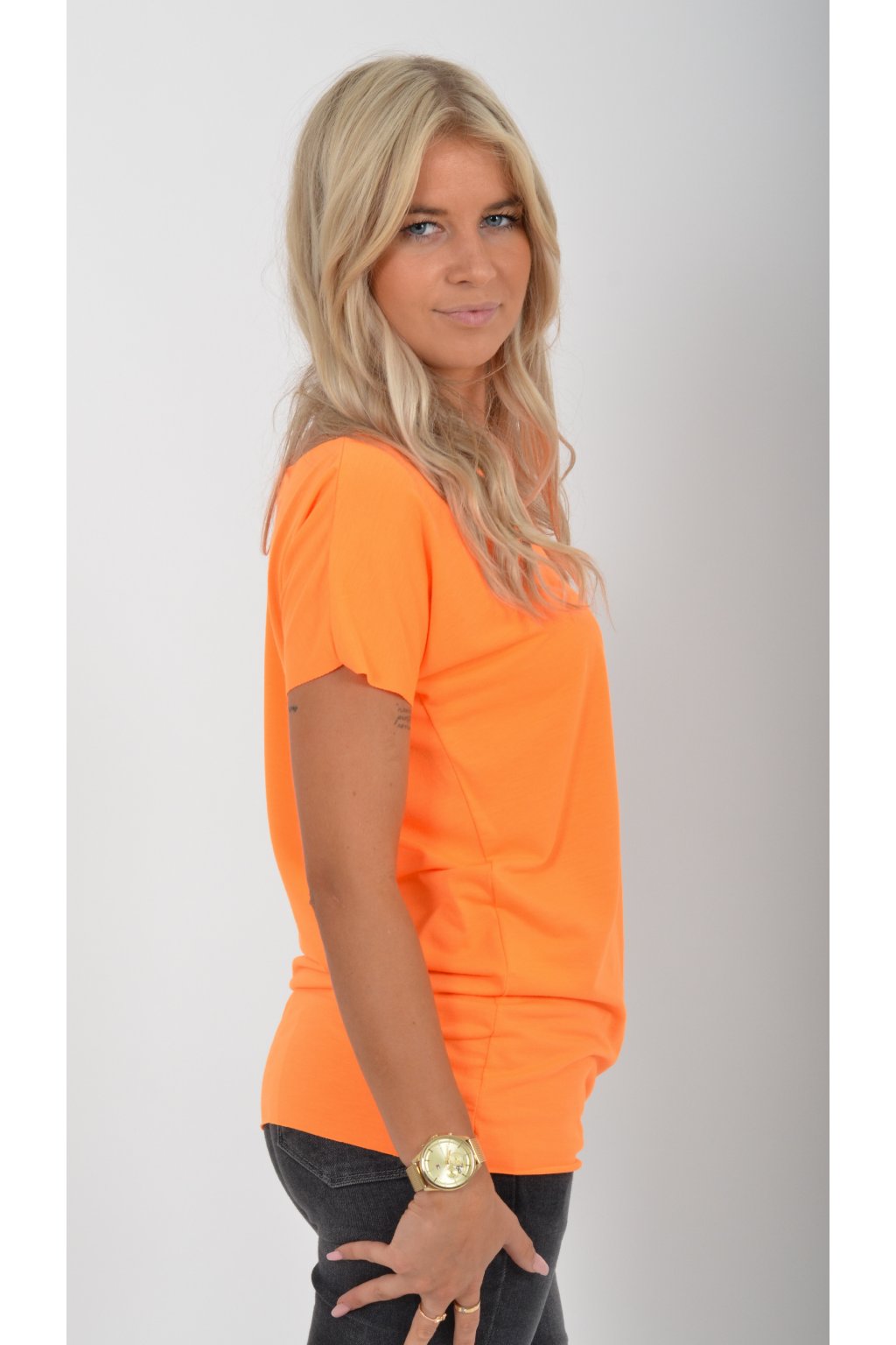 Neonově oranžové basic tričko ES5199