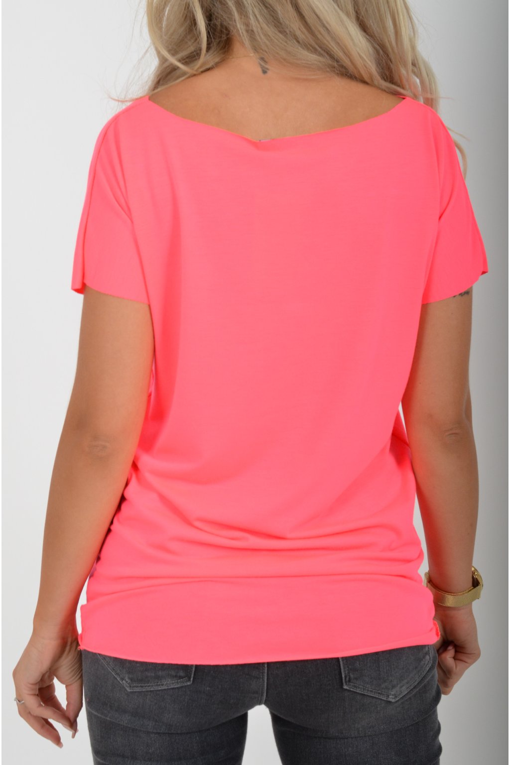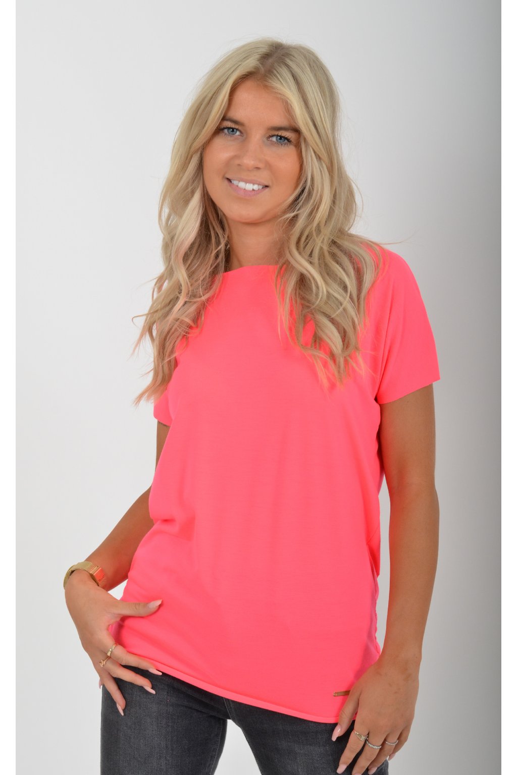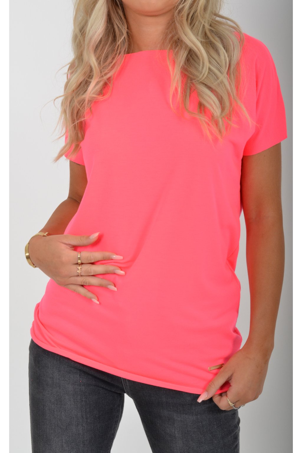 Neonově růžové basic tričko ES5196