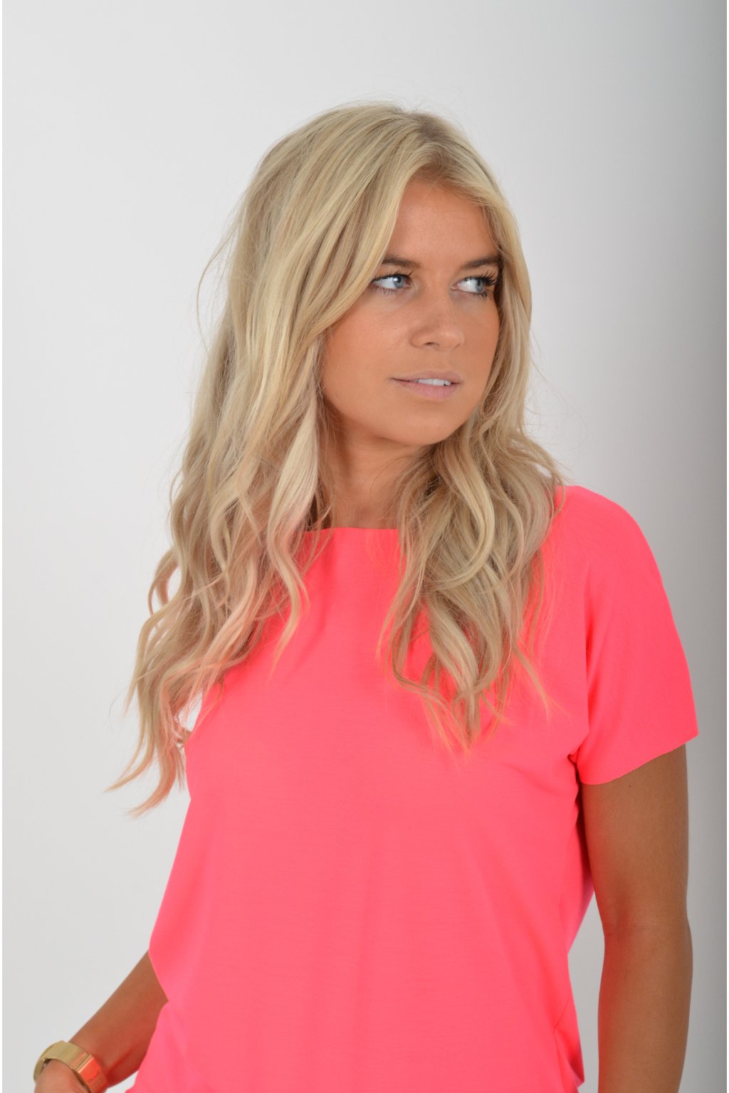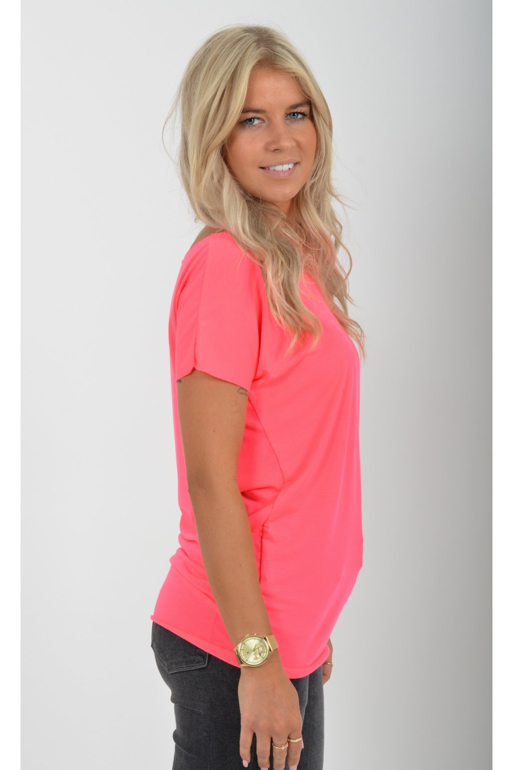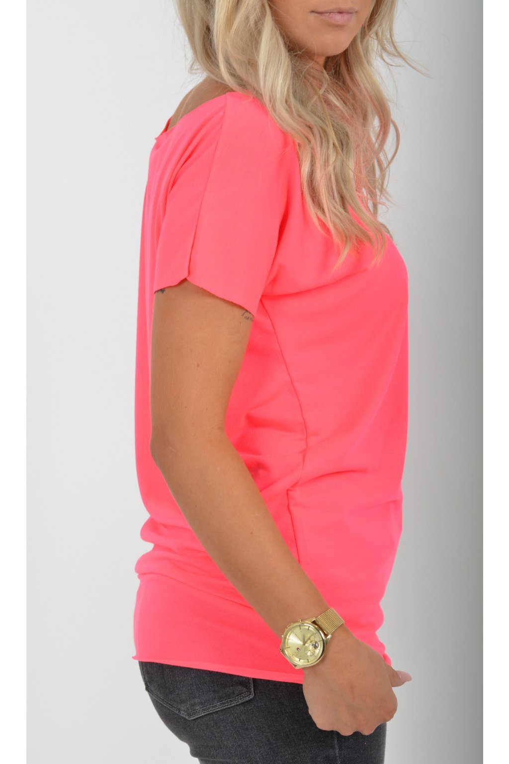 Neonově růžové basic tričko ES5196