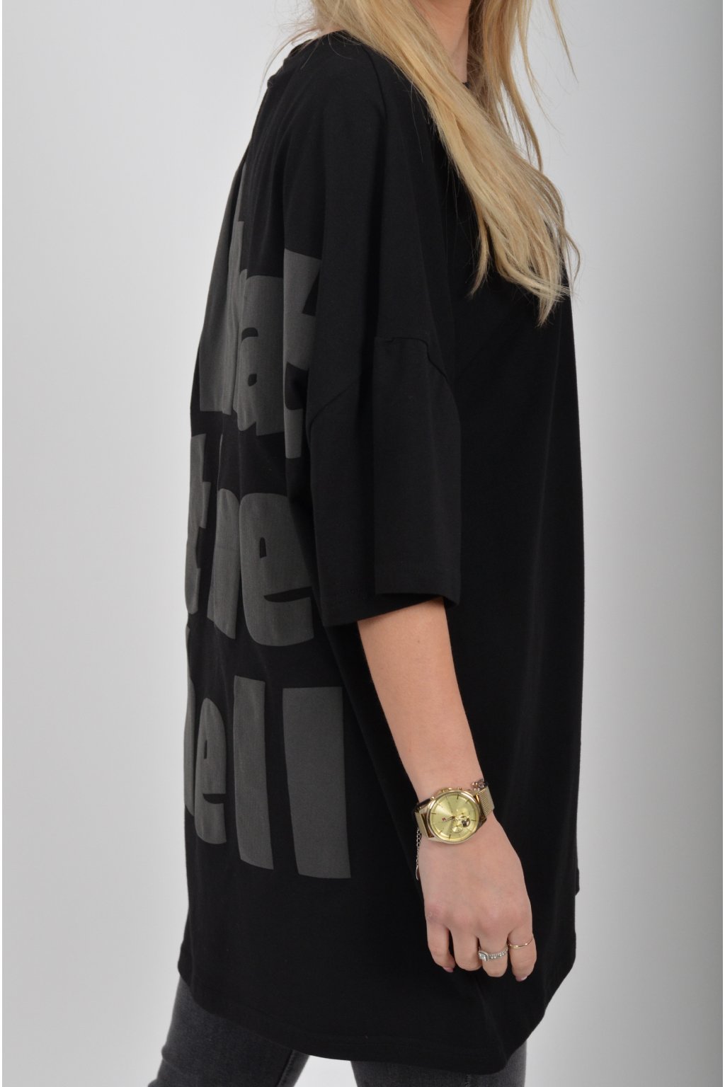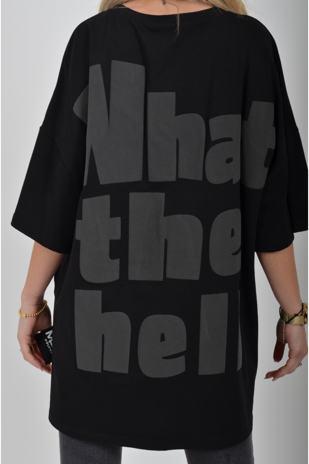 Oversize tričko značky Miss City Official s krátkým rukávem a nápisem na zadní straně "What the hell" (Co to sakra?). Je vyrobené s velice kvalitní bavlny.