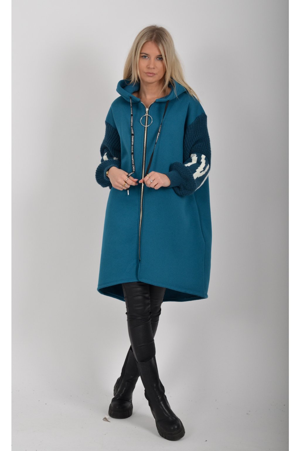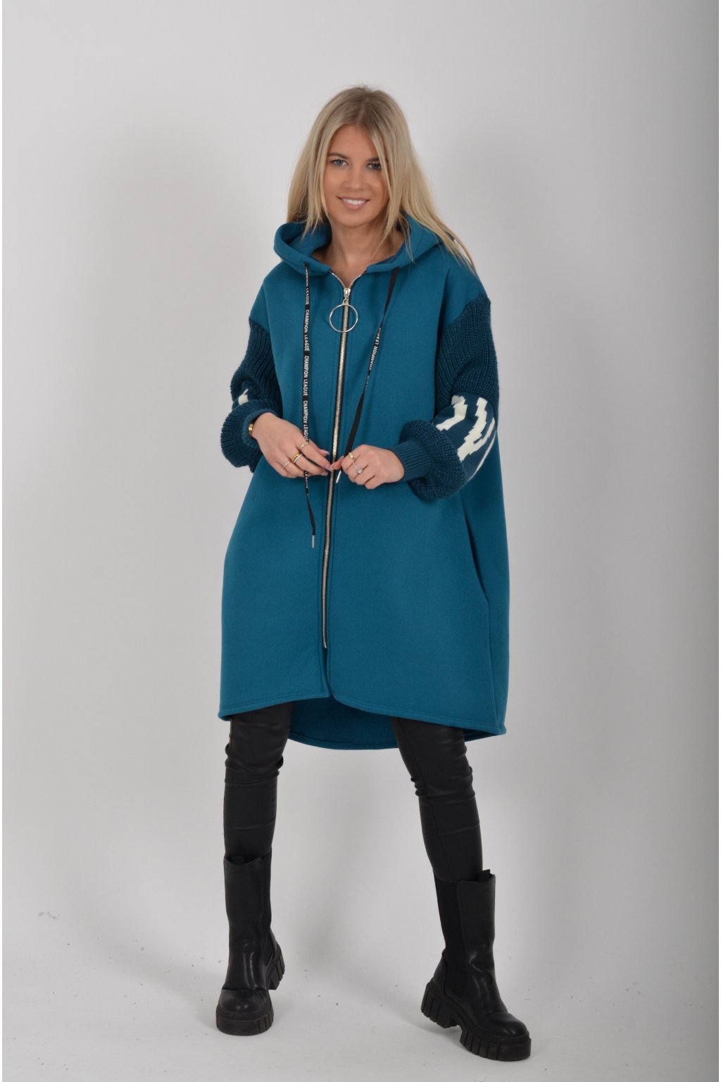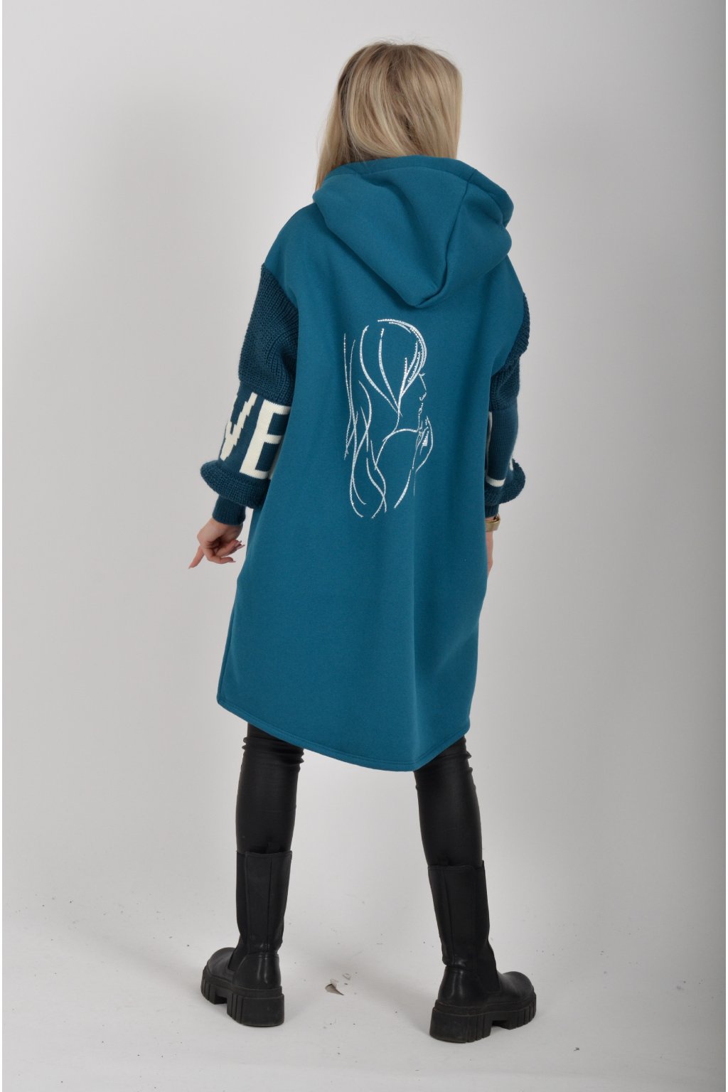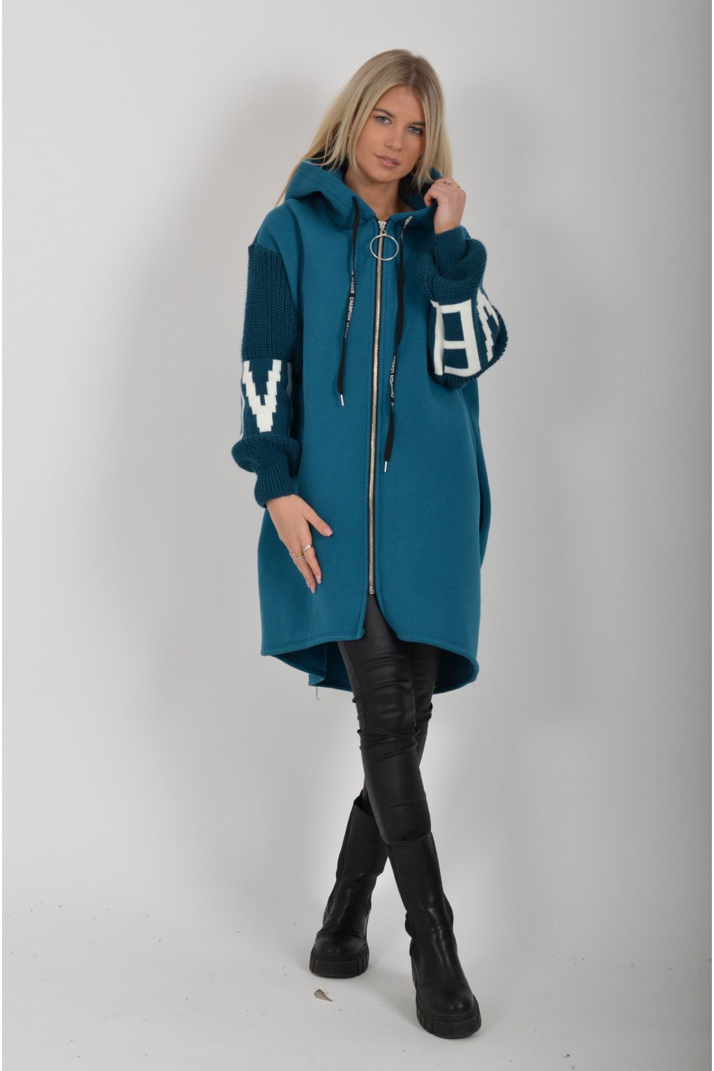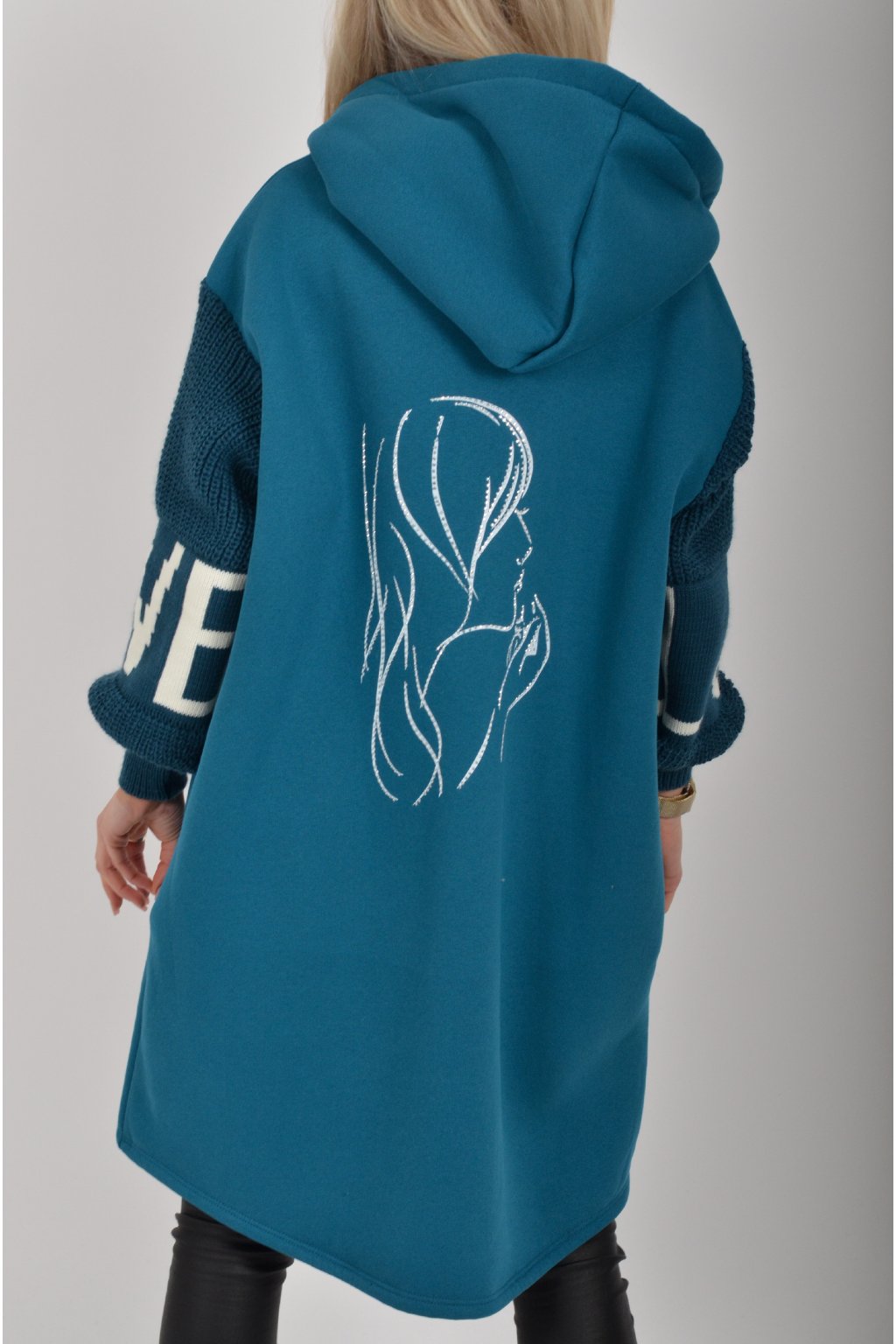 Mikina na zip s kapucí, dlouhým rukávem a kapsami na bocích. Mikina má pletené rukávy a v zadní části stříbrnou aplikaci. Je vyrobena z velice příjemného a kvalitního materiálu.