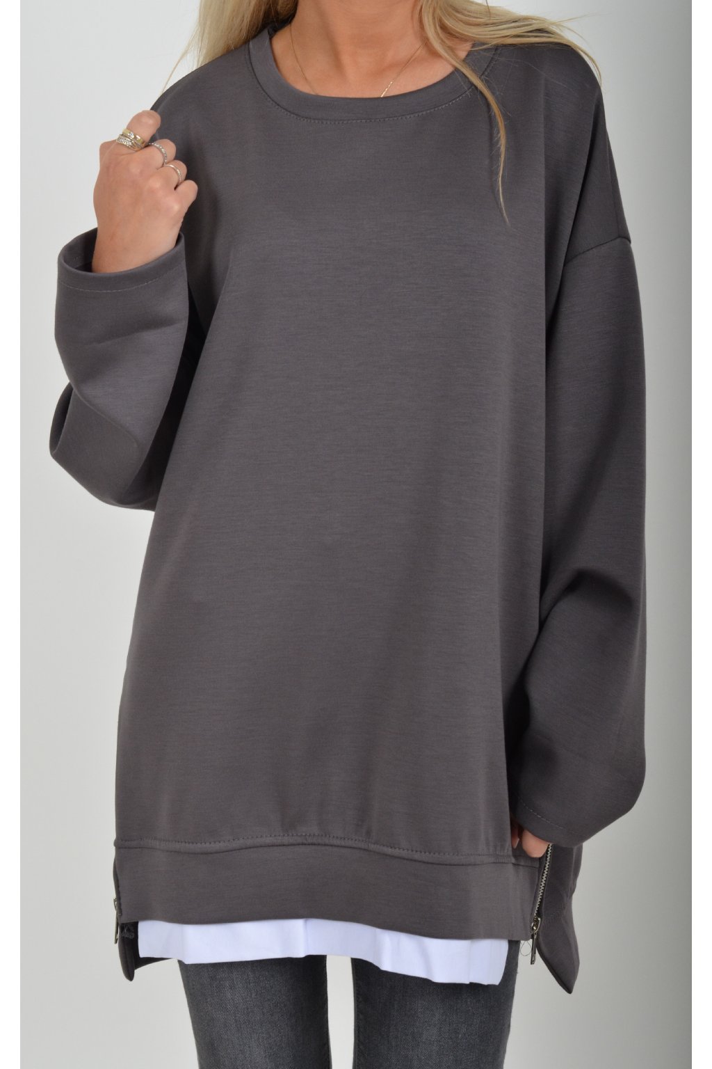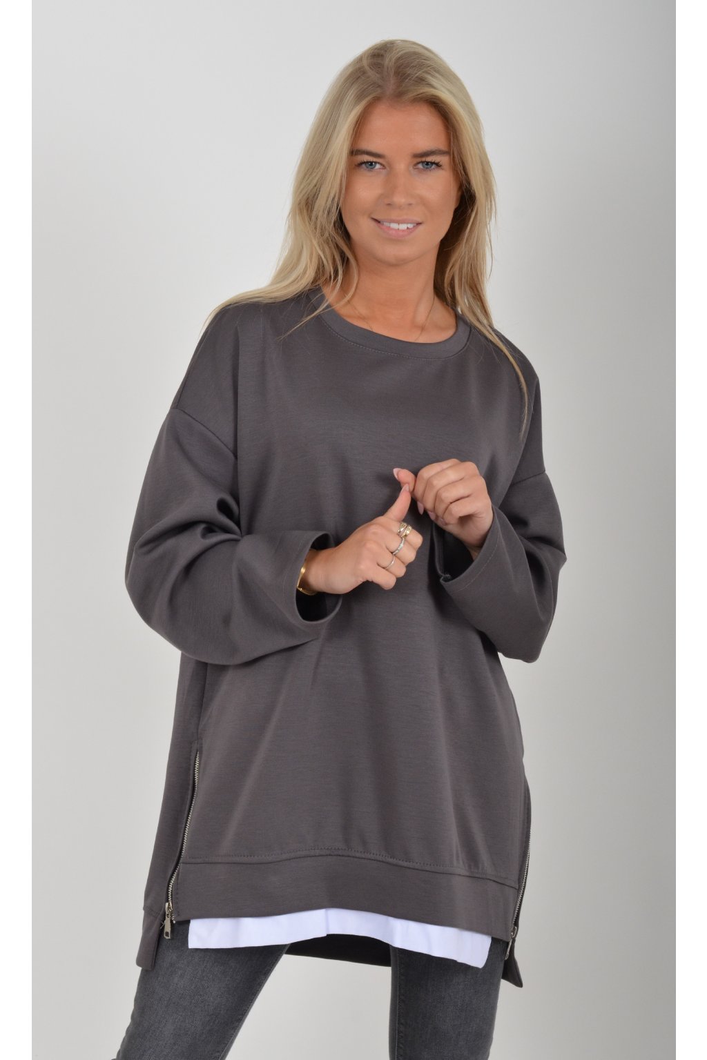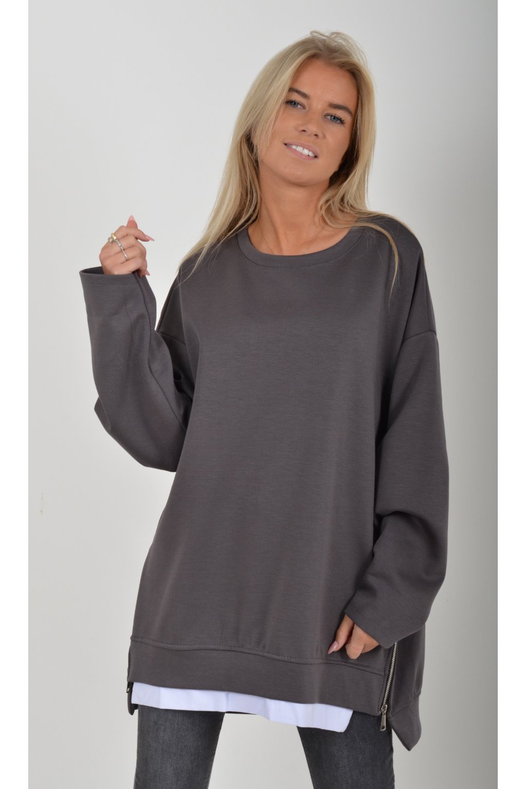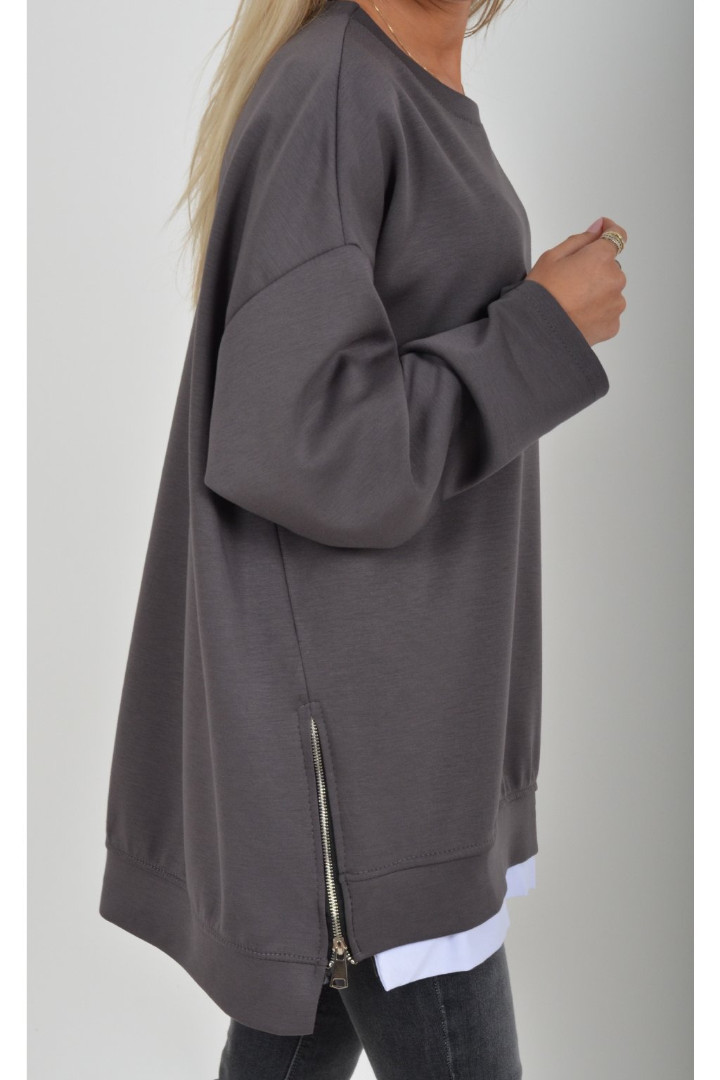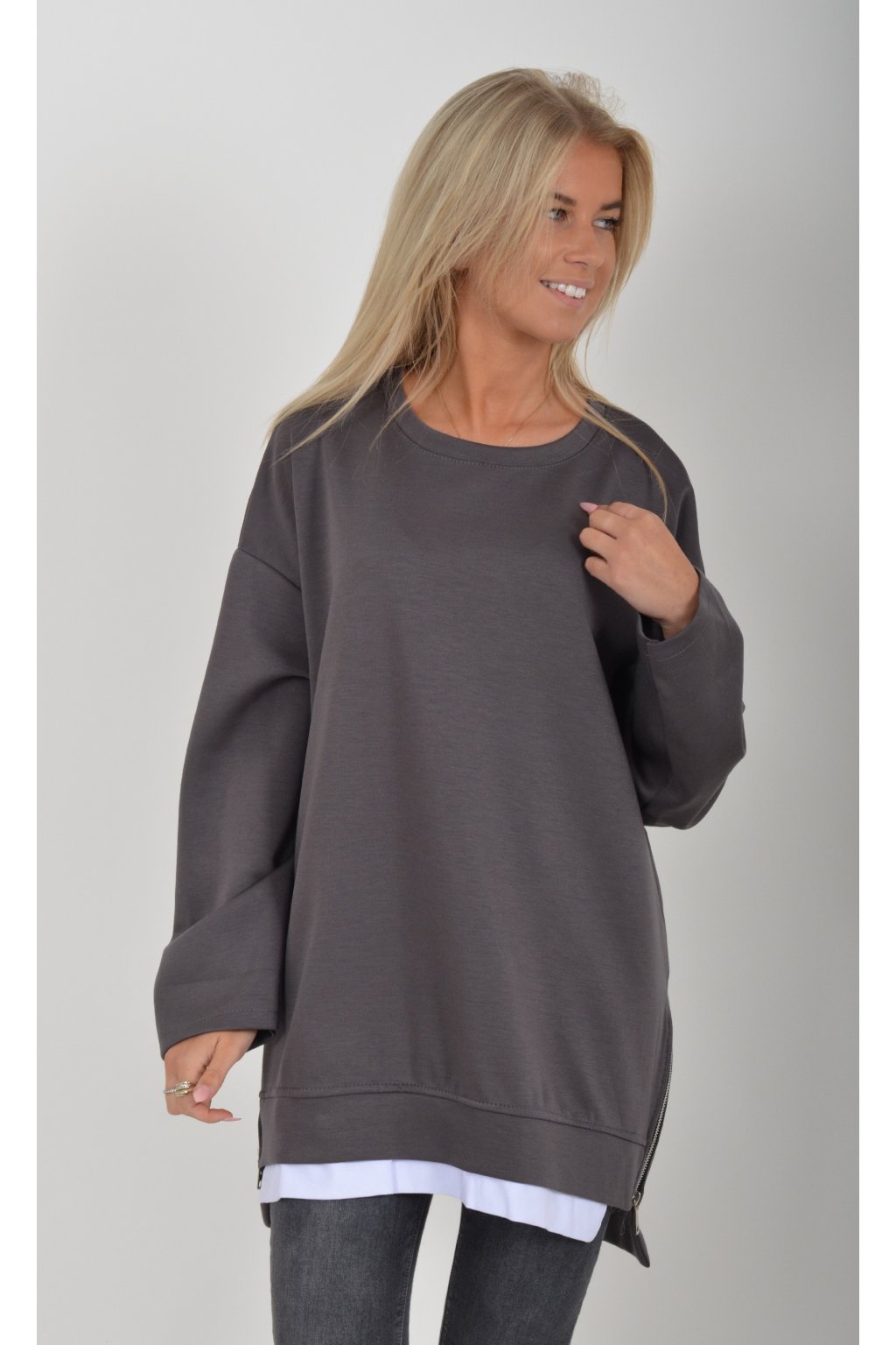 Mikina s dlouhým rukávem vyrobena z velice příjemného a lehce zatepleného materiálu. V přední části má funkční zipy, jejímž rozepnutím vzniknou rozparky, které mikině dodají stylový vzhled.