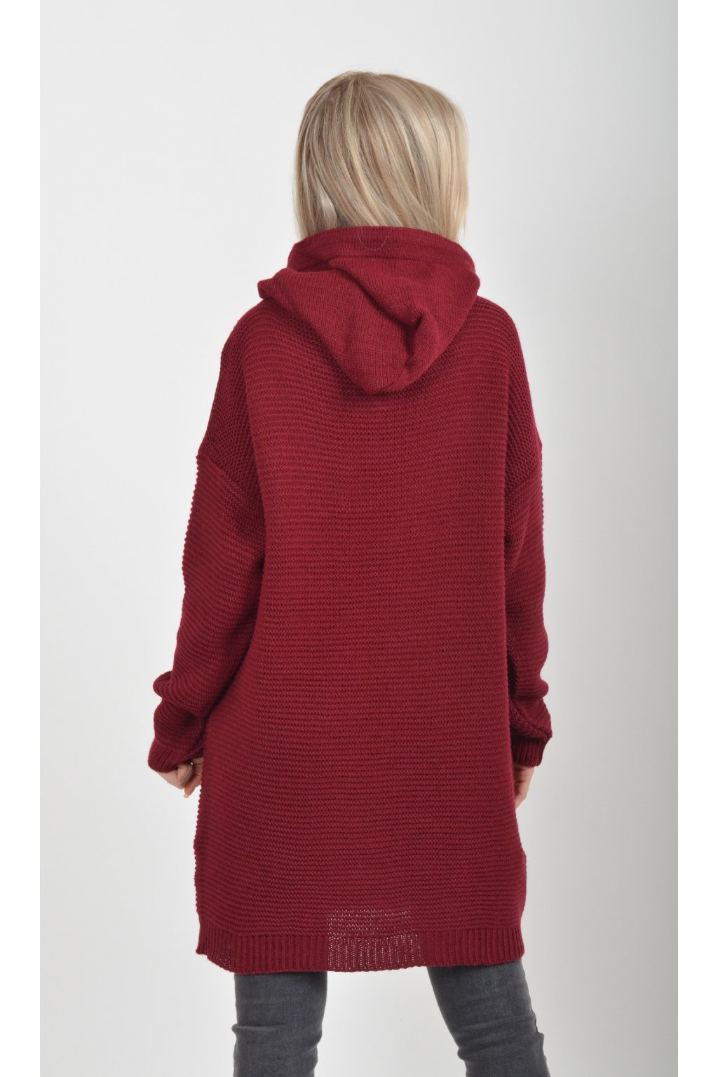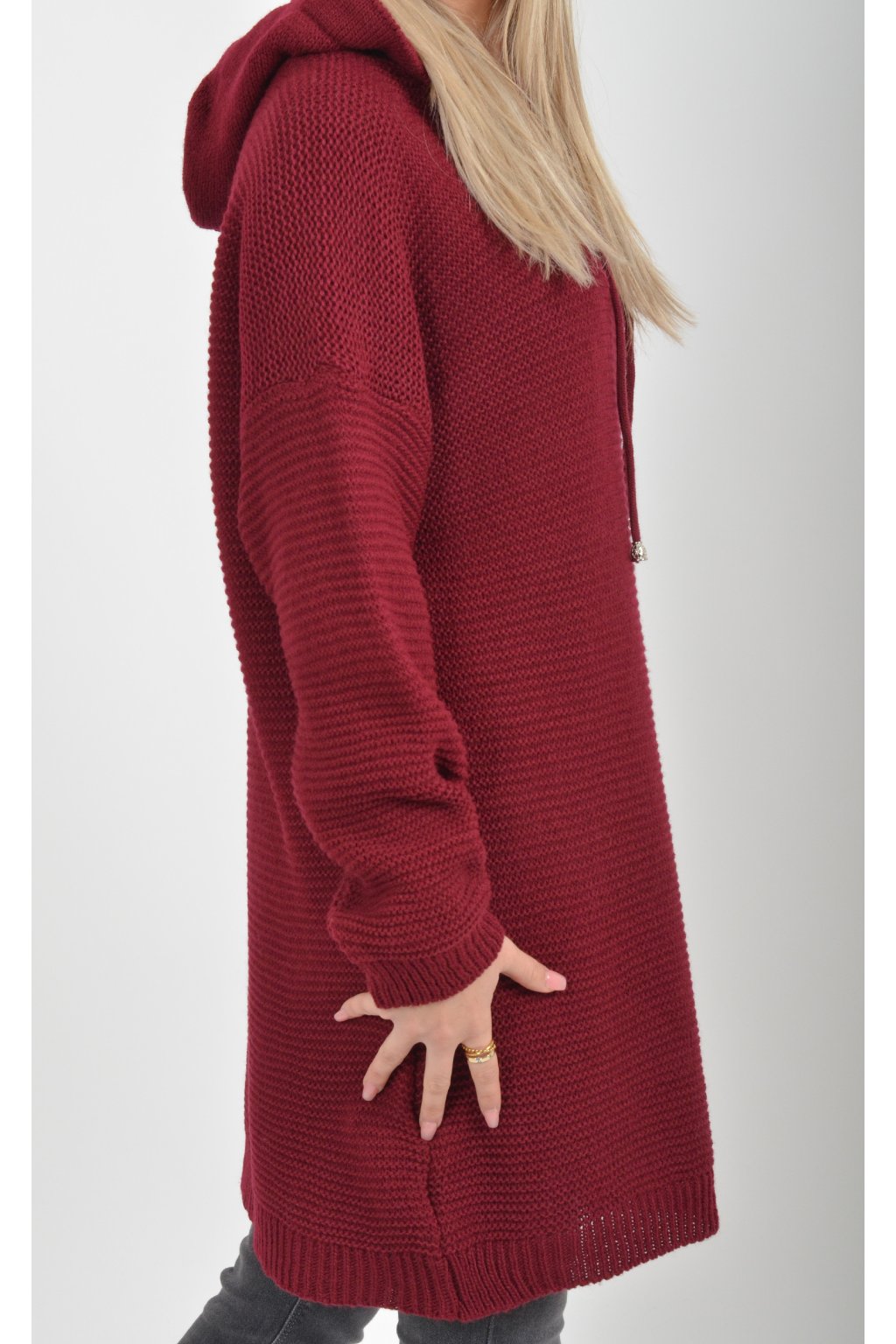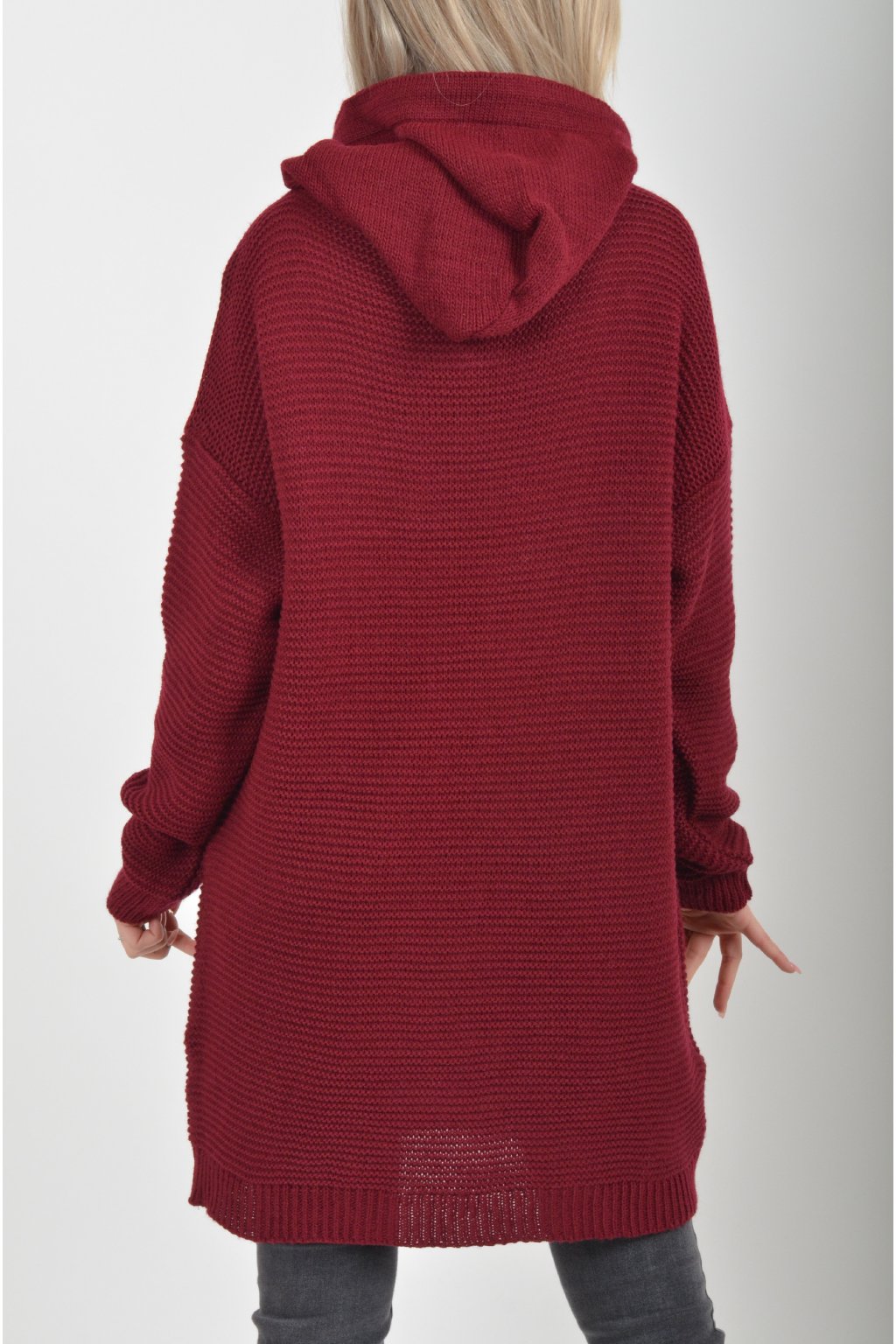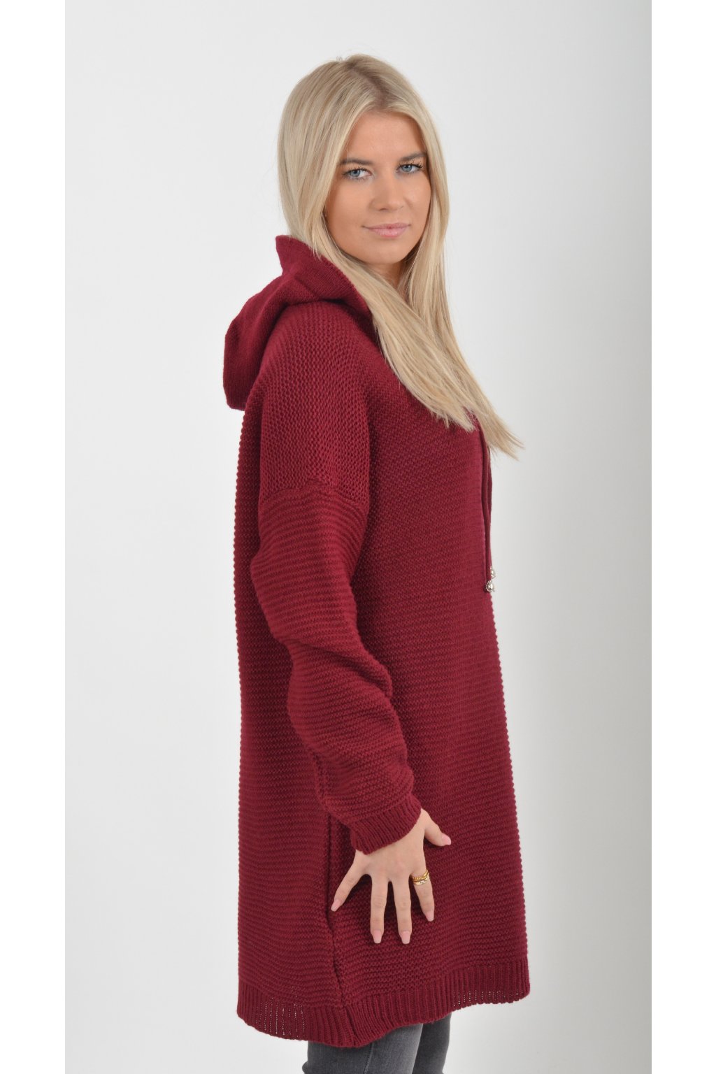 Prodloužený vínový svetr ES6015