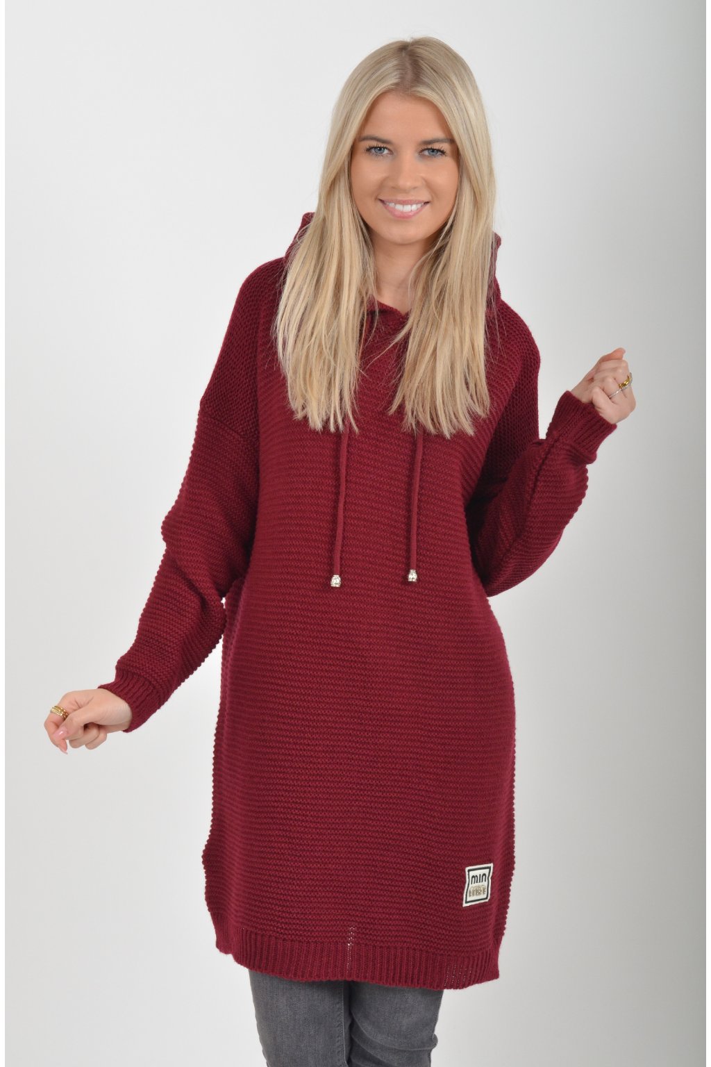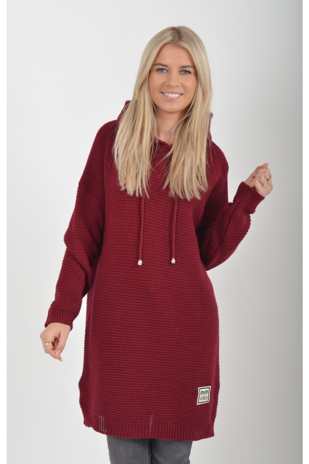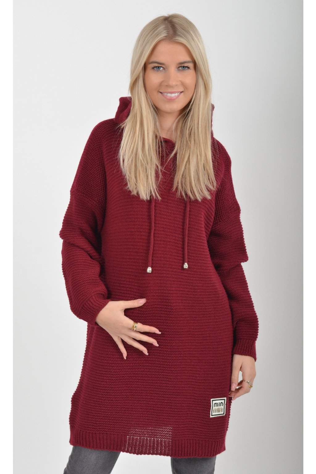 Prodloužený vínový svetr ES6015