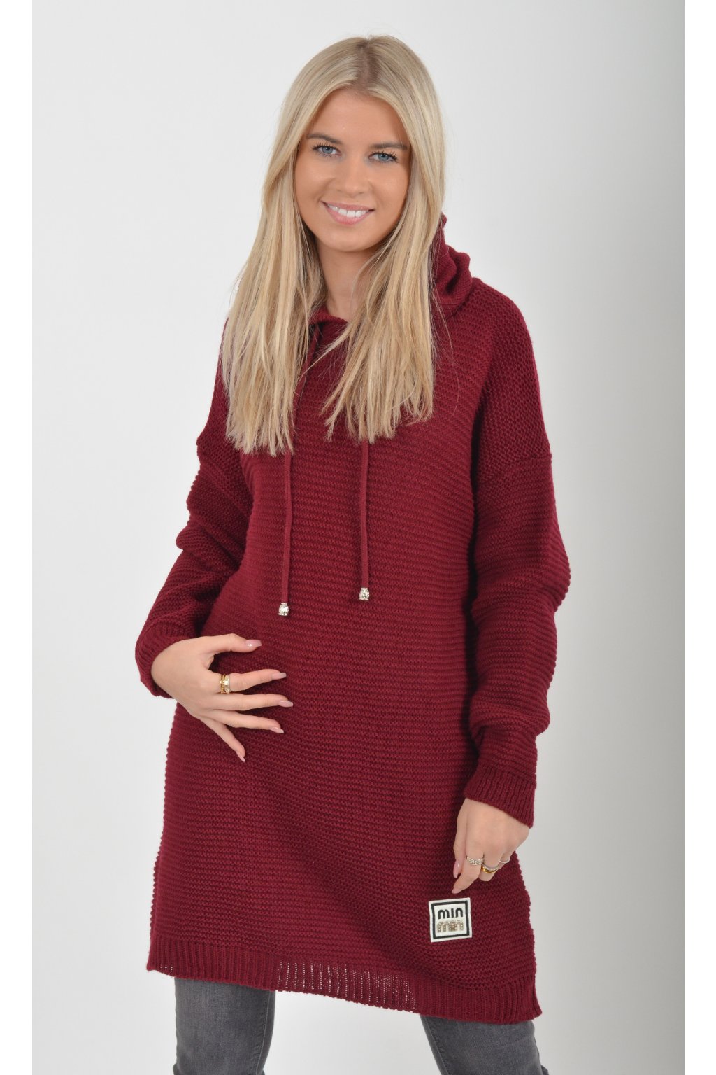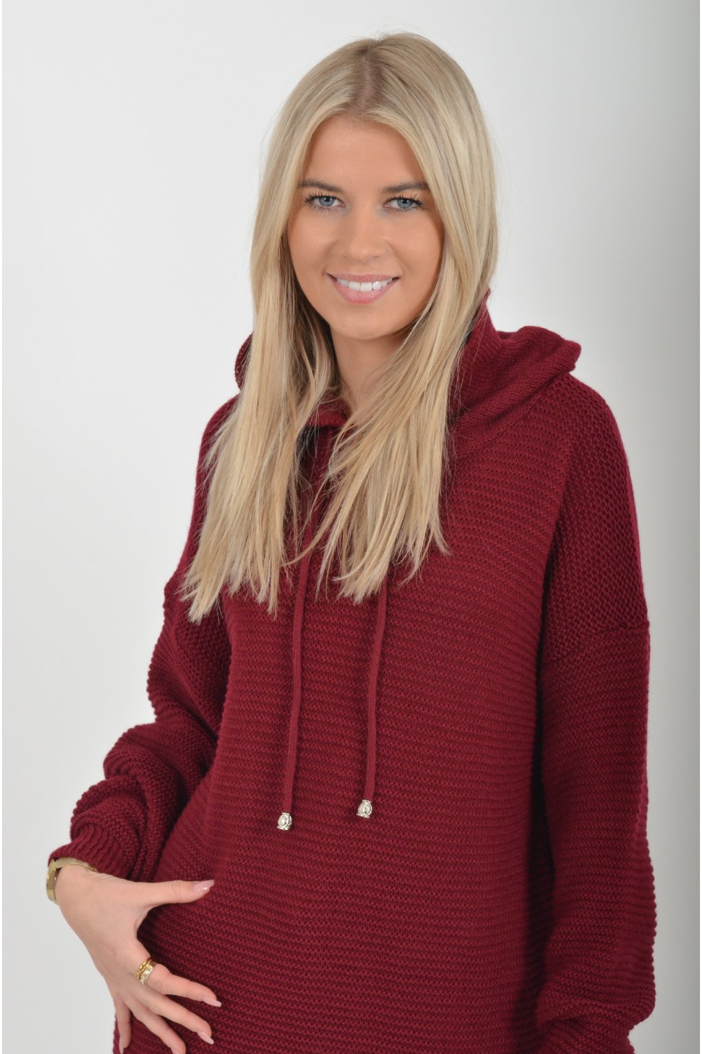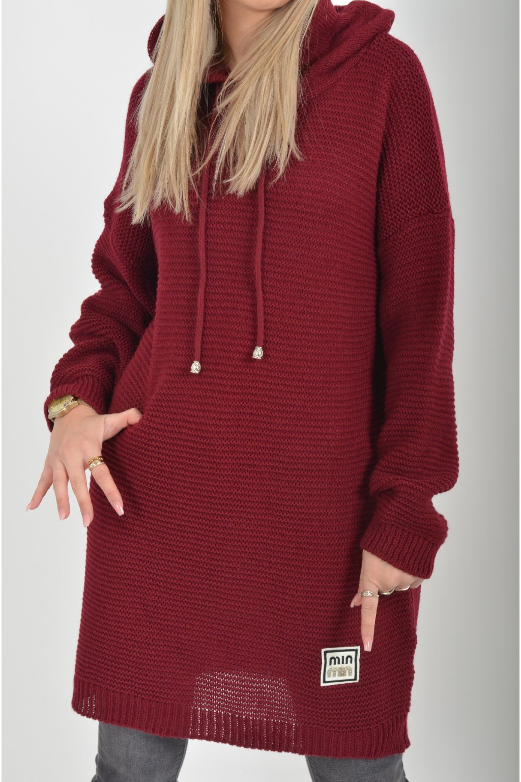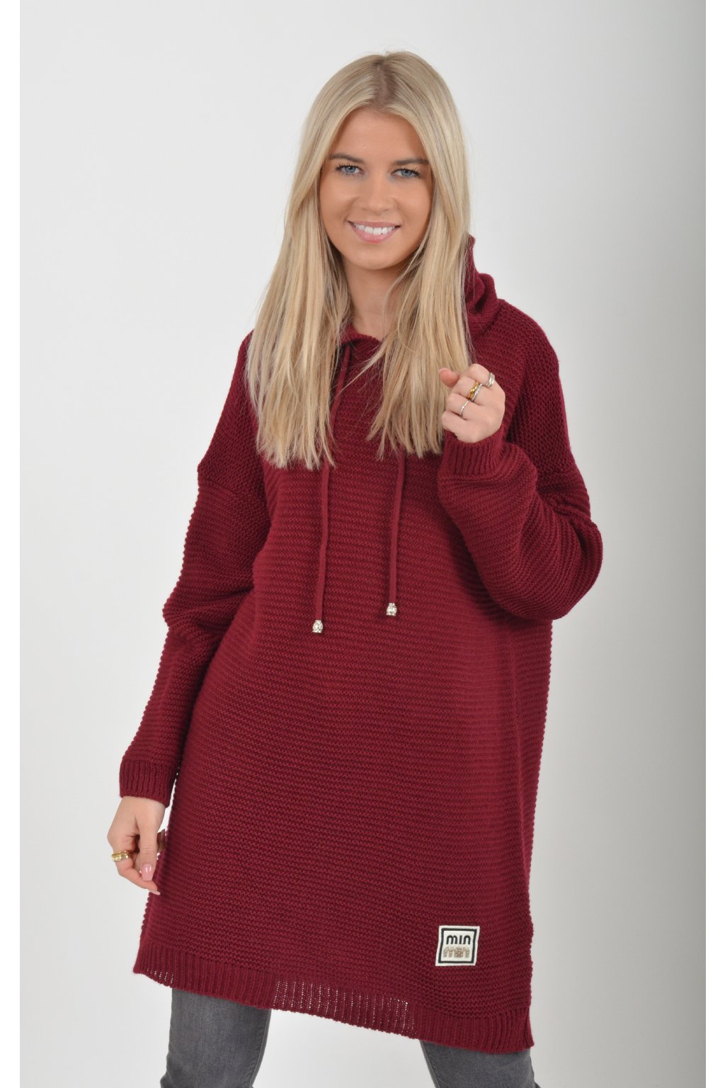 Prodloužený vínový svetr ES6015
