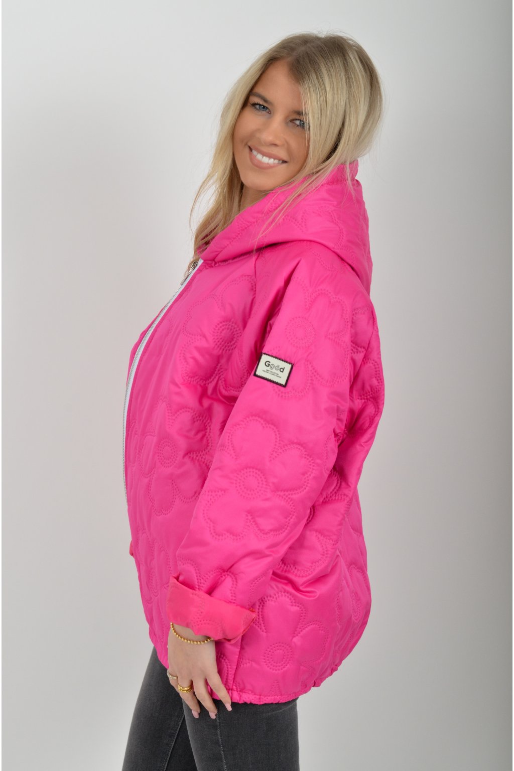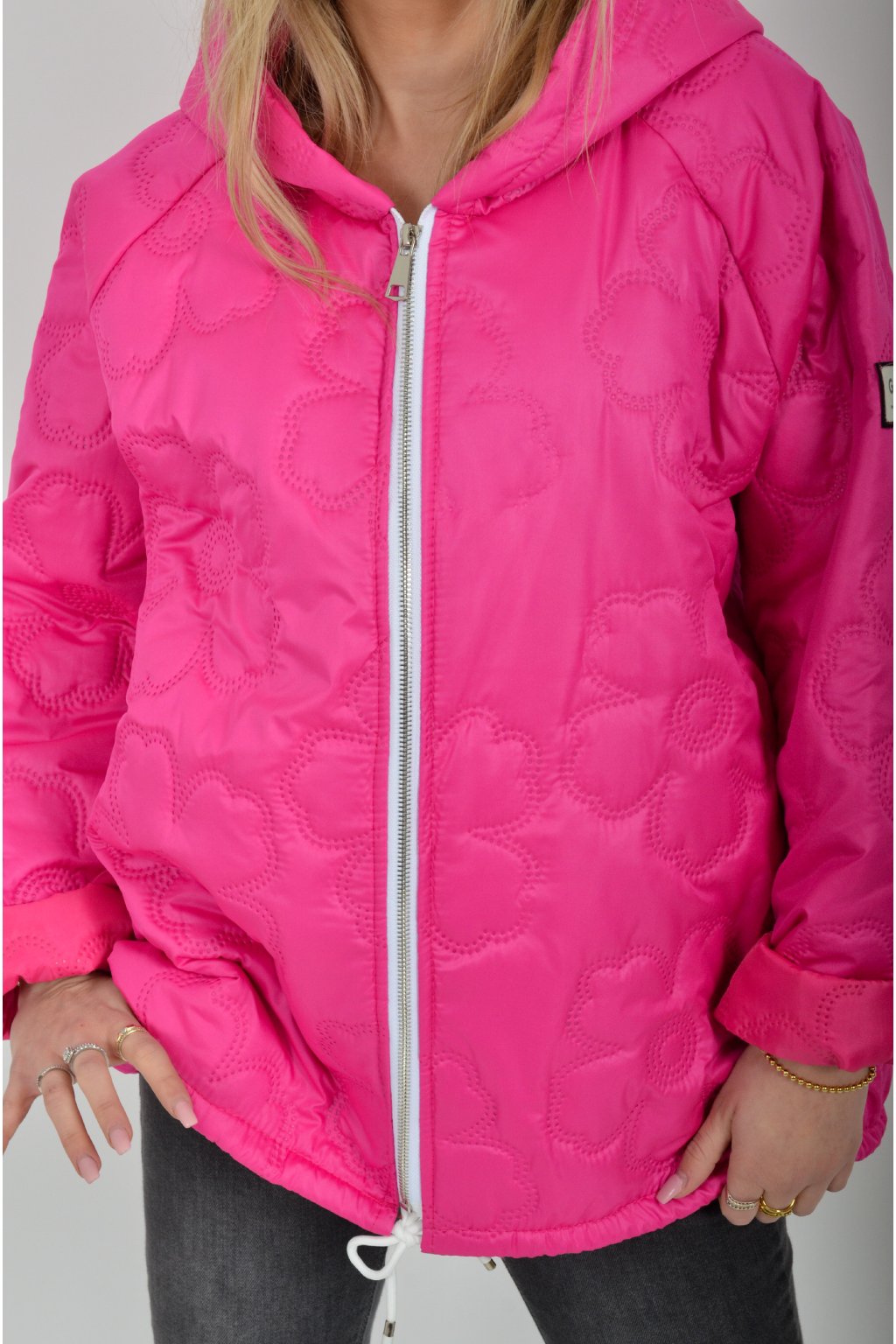 Přechodová bunda s kapuci a kapsami na bocích volnějšího střihu. Bunda je vyrobena z odlehčeného materiálu, tedy je ideální pro jarní nošení. Ve spodní části je zapracovaná tkanice pro libovolné stažení.