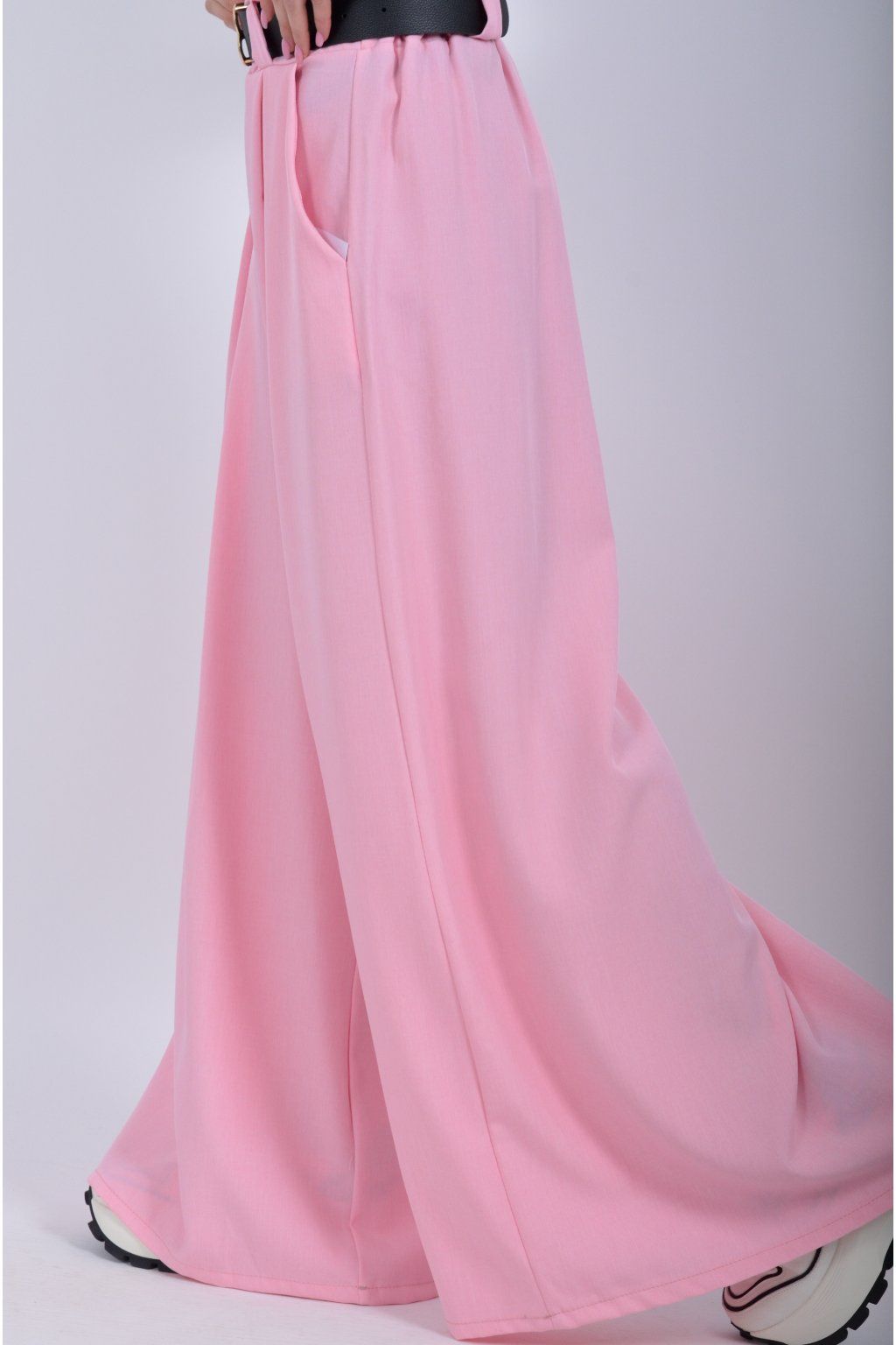 Kalhoty se širokými nohavicemi vyrobené z odlehčeného a velice příjemného materiálu. Materiál kalhot je lehce pružný. V pase mají zapracovanou gumu, na bocích jsou kapsy a jako dárek je pásek, který lze odejmout a použít pro nošení k jiným kouskům.