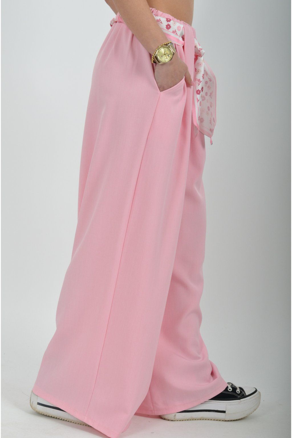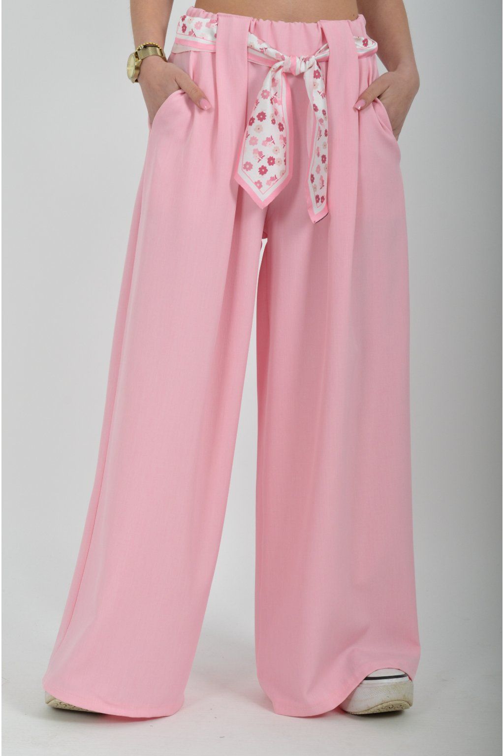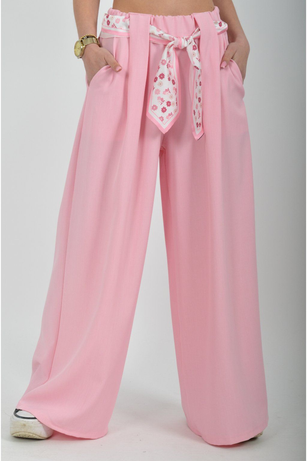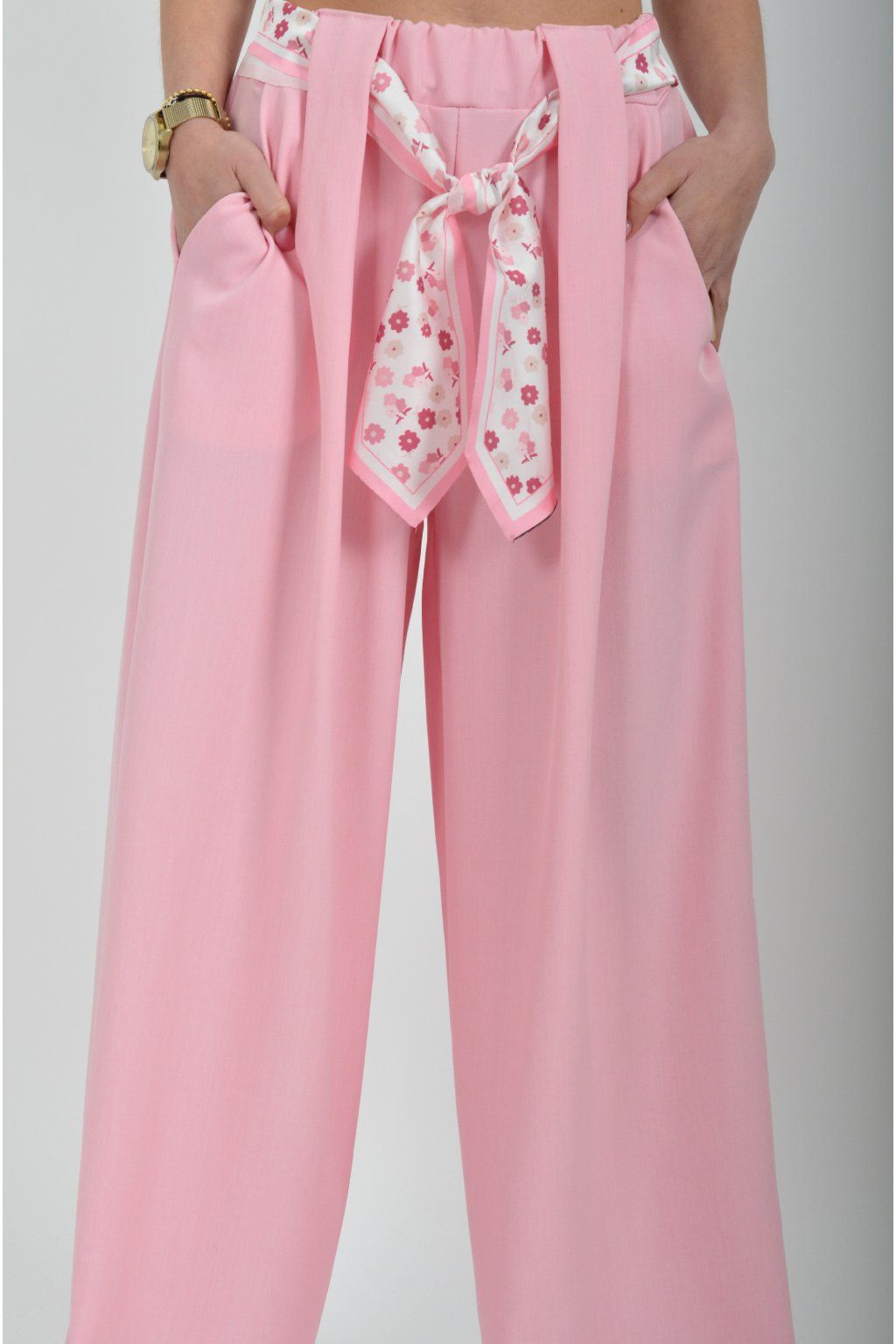 Kalhoty se širokými nohavicemi a kapsami na bocích, které se krásně přizpůsobí postavě, díky podílu elastanu. Jsou vhodné pro každodenní nošení. V pase je zapracovaná guma a pásek ve formě "šátku" pro libovolné stažení.