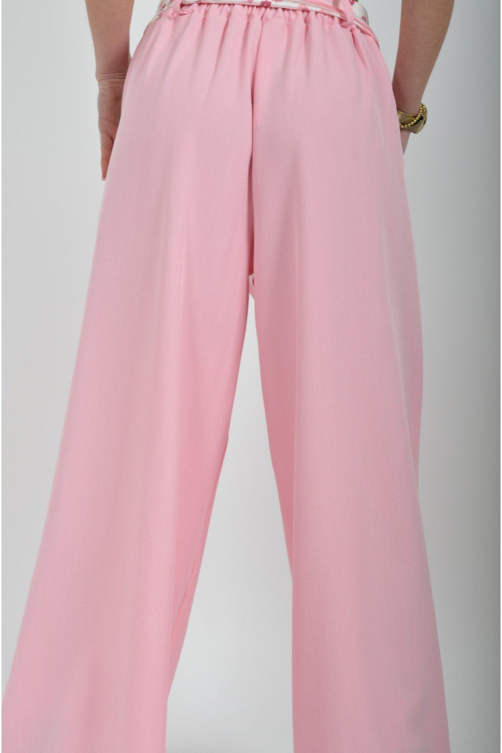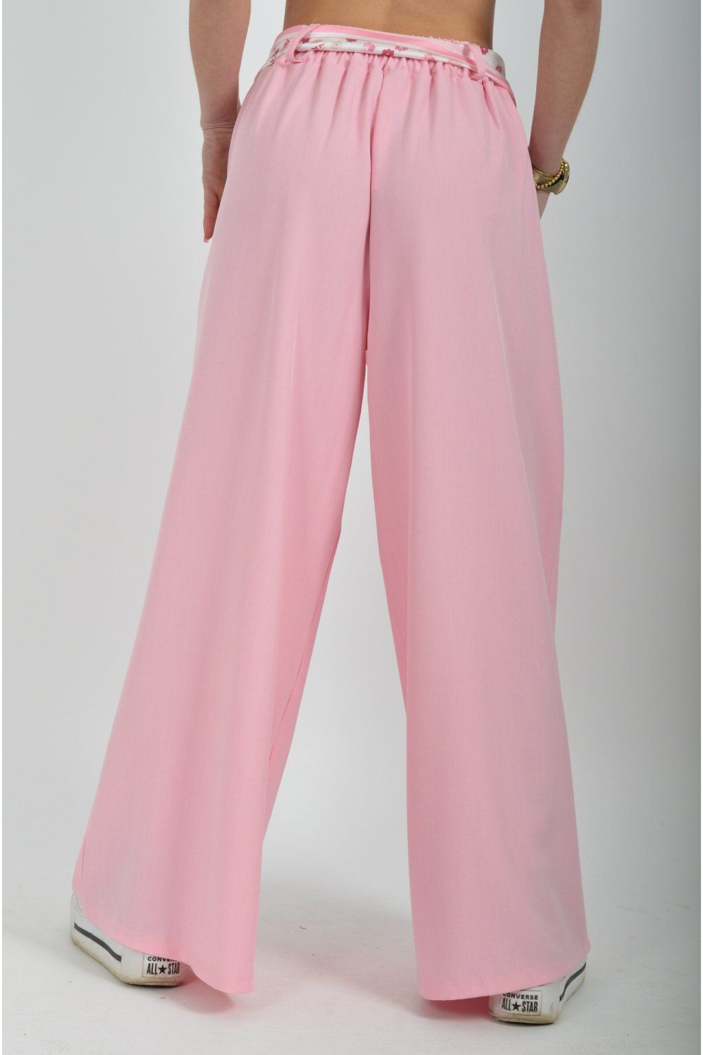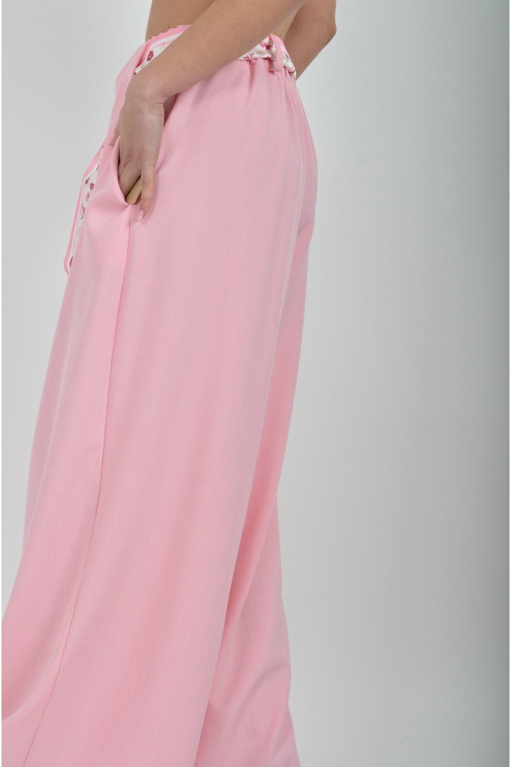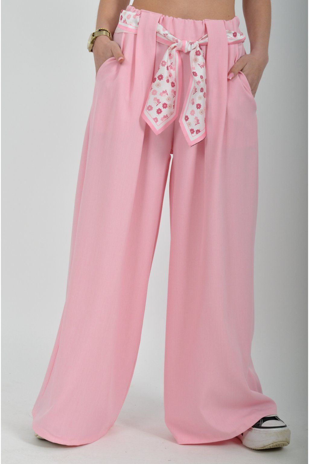 Kalhoty se širokými nohavicemi a kapsami na bocích, které se krásně přizpůsobí postavě, díky podílu elastanu. Jsou vhodné pro každodenní nošení. V pase je zapracovaná guma a pásek ve formě "šátku" pro libovolné stažení.