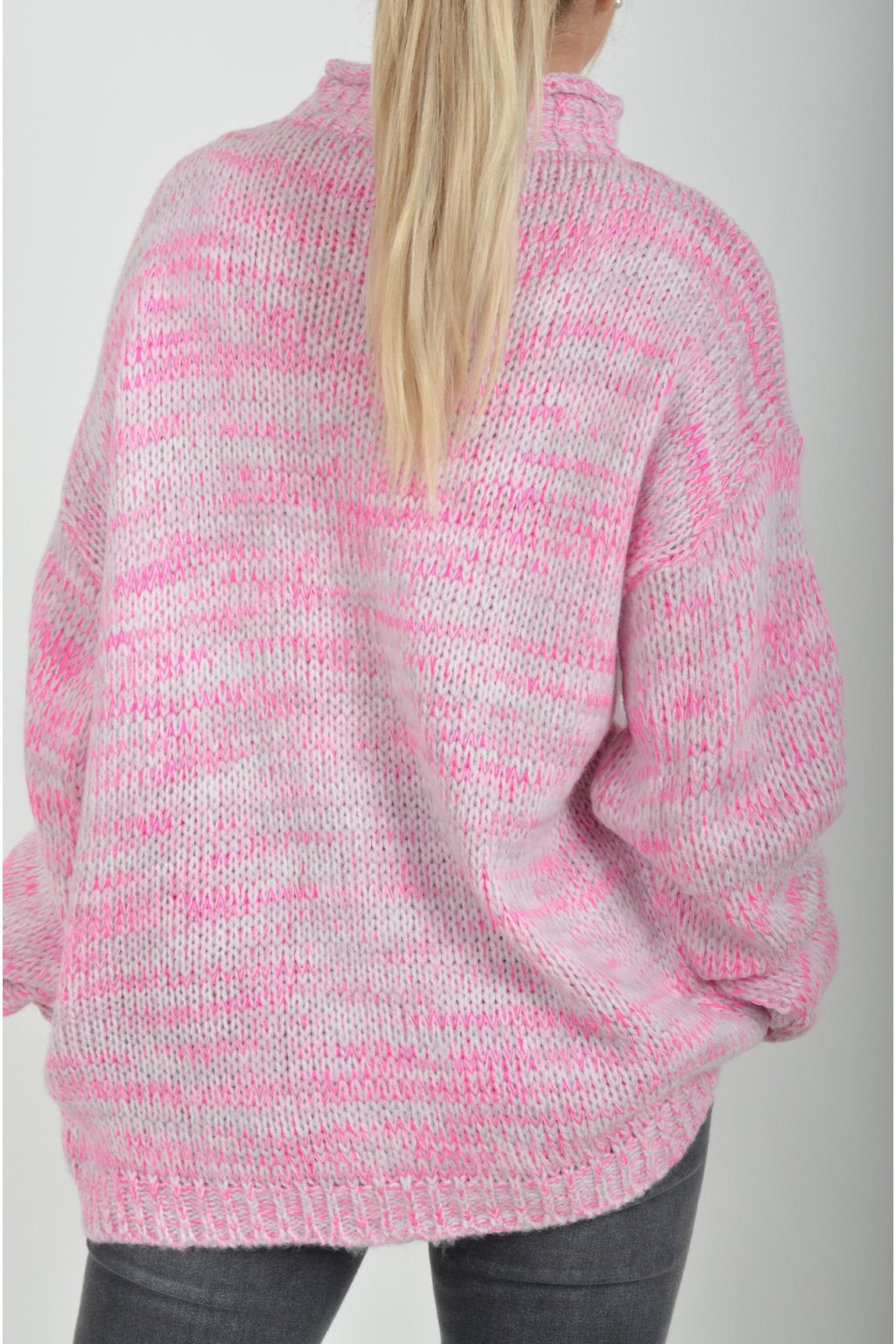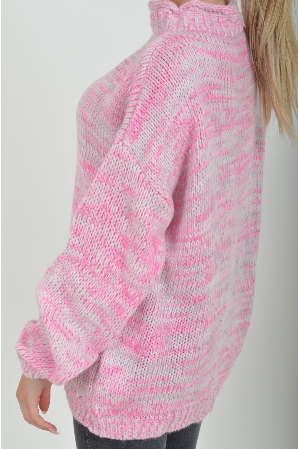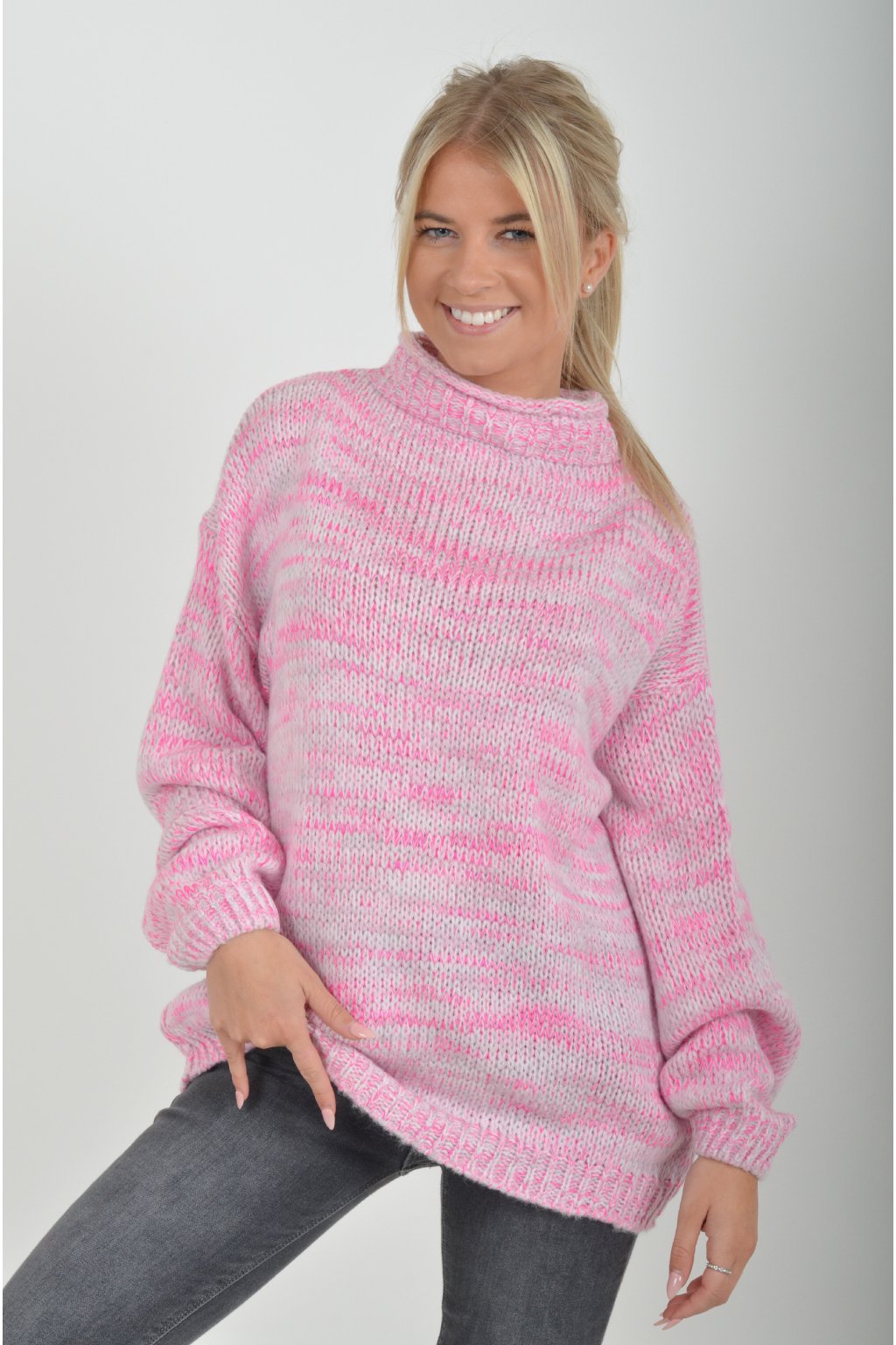 Žíhaný elastický svetr s dlouhým rukávem s barevnou kombinací, růžová a krémově bílá. Svetr je z velice příjemného a nekousavého materiálu.