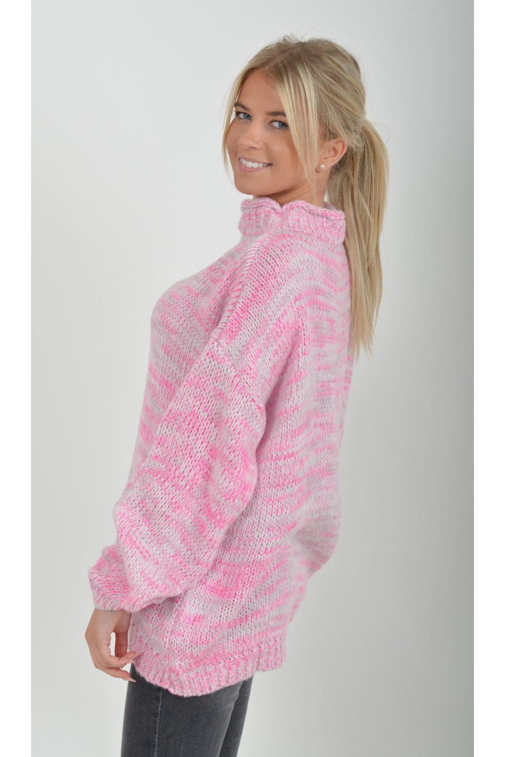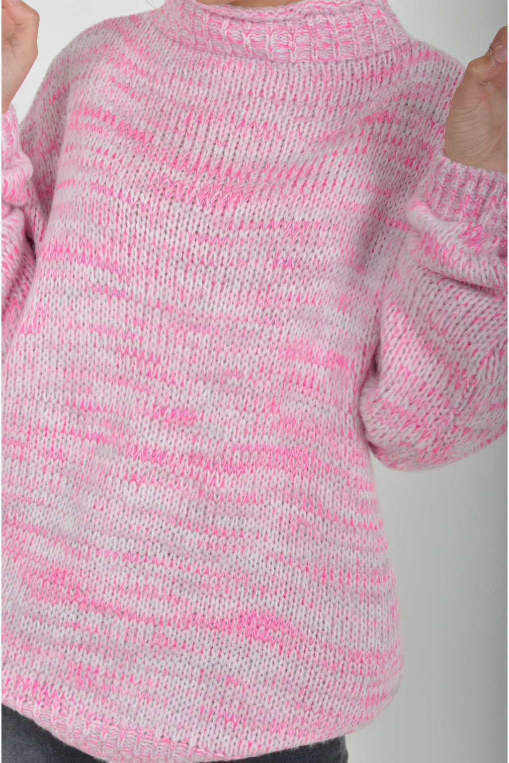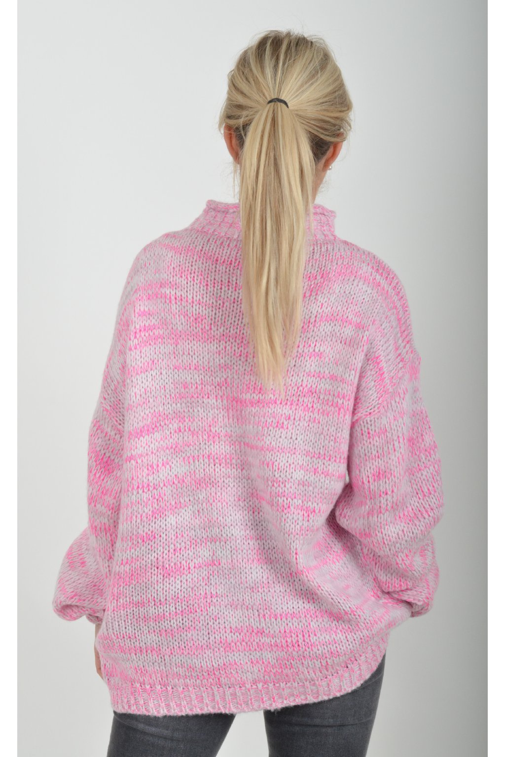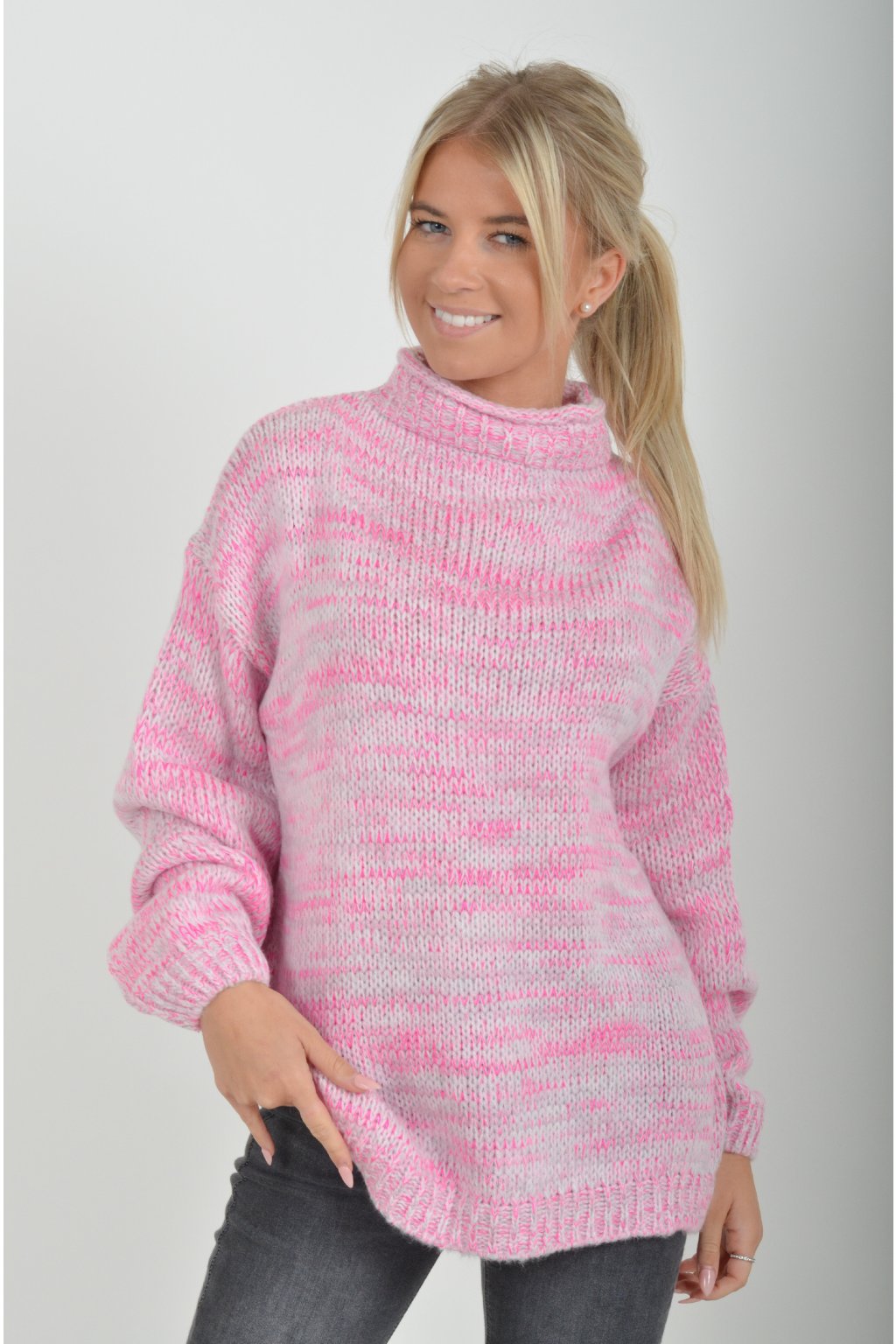 Žíhaný elastický svetr s dlouhým rukávem s barevnou kombinací, růžová a krémově bílá. Svetr je z velice příjemného a nekousavého materiálu.